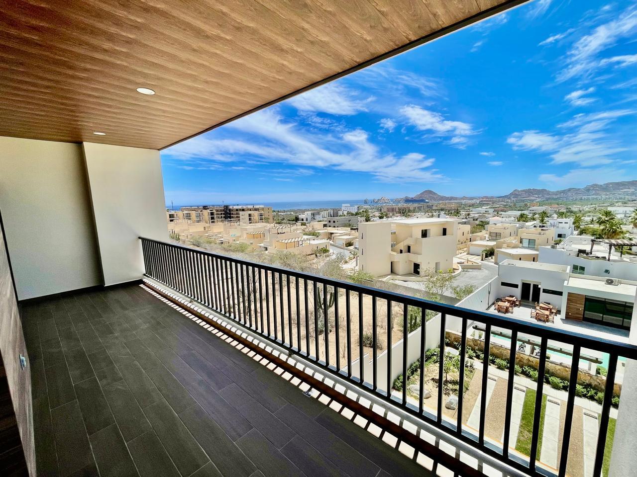 Brisas del Tezal third-floor condo featuring 2 bedrooms and 2 bathrooms in an exclusive low-density community of 36 units across two 4-story elevator buildings. Located minutes from Medano Beach and downtown Cabo. Showcases excellent construction quality and craftsmanship from the developer, including parota wood carpentry and a large, solid front door. Features 3-meter / 9.8-ft high ceilings throughout, large-format tile flooring, spacious balcony, granite countertops and backsplash in the kitchen, bathrooms with marble showers to the ceiling, wall-to-wall closets, and a laundry room with space for side-by-side washer and dryer, plus manual washing area and storage. Equipped with 1-ton A/C mini-splits in each bedroom and two in the living area.