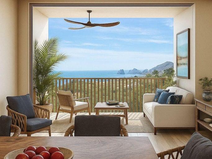Experience coastal elegance in this 3-bedroom, 3-bath condo at Cabo Costa - Vela Tower, located on the third level with stunning views of the Sea of Cortez, Land's End and the luxury community of Cabo del Sol just ~15 miles away by car. The residence blends modern design with natural harmony, featuring refined neutral finishes, spacious interiors and open living spaces that flow seamlessly to the terrace. Amenities include an infinity pool, clubhouse, gym, wet bar, snack bar and massage zone. Includes 2 parking spaces and 1 storage.
