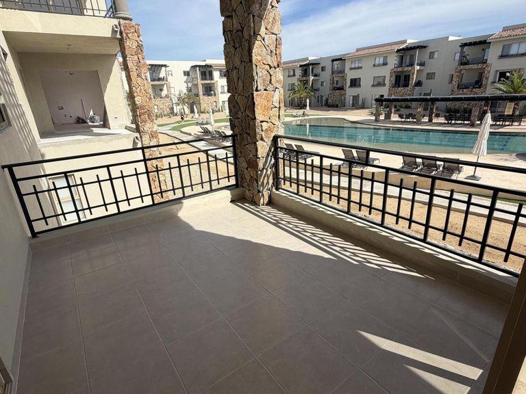 Condo for sale in Camino del Mar, La Joya, Cabo San Lucas. This 2-bedroom, 2-bathroom condo is located on the second level, offering easy access and comfortable living. The unit features a private terrace with a pleasant view of the pool, perfect for relaxing or enjoying outdoor meals.