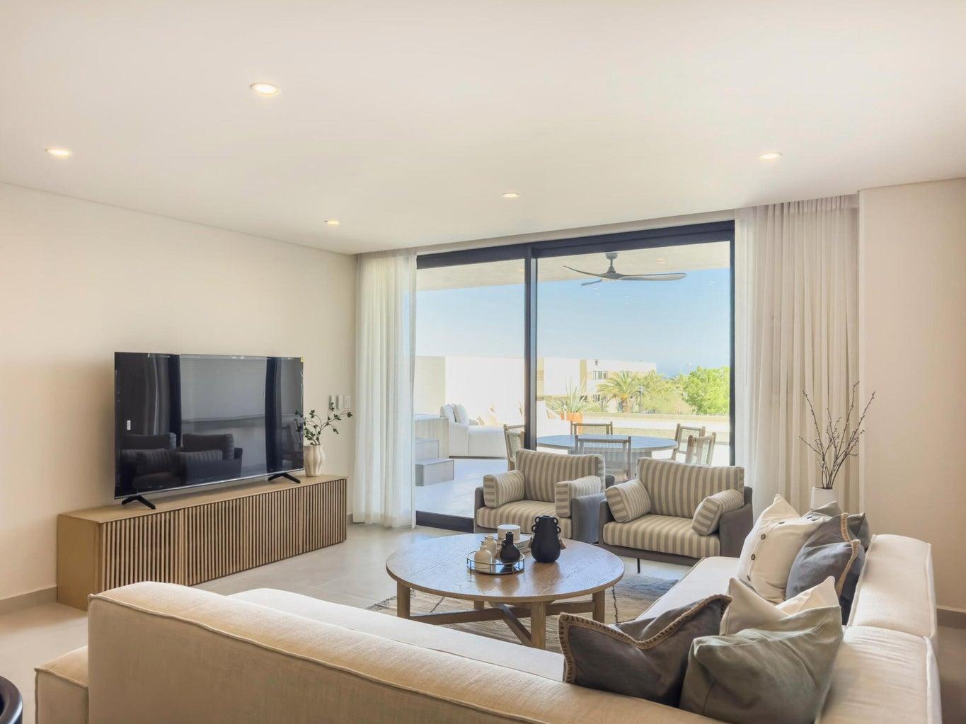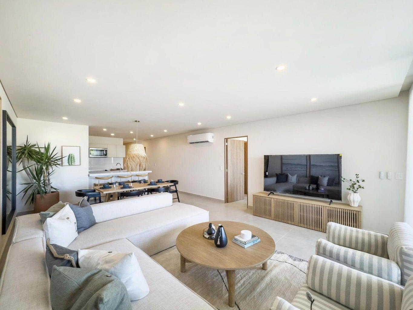 Welcome to luxury living at its finest in this stunning Cabo San Lucas condo by Grupo Quadro. With panoramic views of the city, this 3-bedroom, 2-bath condo offers elegance and sophistication. Enjoy an open-concept layout with high-end finishes, quartz countertops, and top appliances. Amenities include 2 infinity pools, 2 gyms, 2 paddle & pickleball courts, fire pits, a kids' playground, and a multipurpose palapa. Two underground parking spaces and storage are included. Located near hospitals, schools, and shopping, with 24/7 controlled access, this condo combines luxury and convenience. Schedule a tour today to experience Cabo's ultimate lifestyle at CIAN!