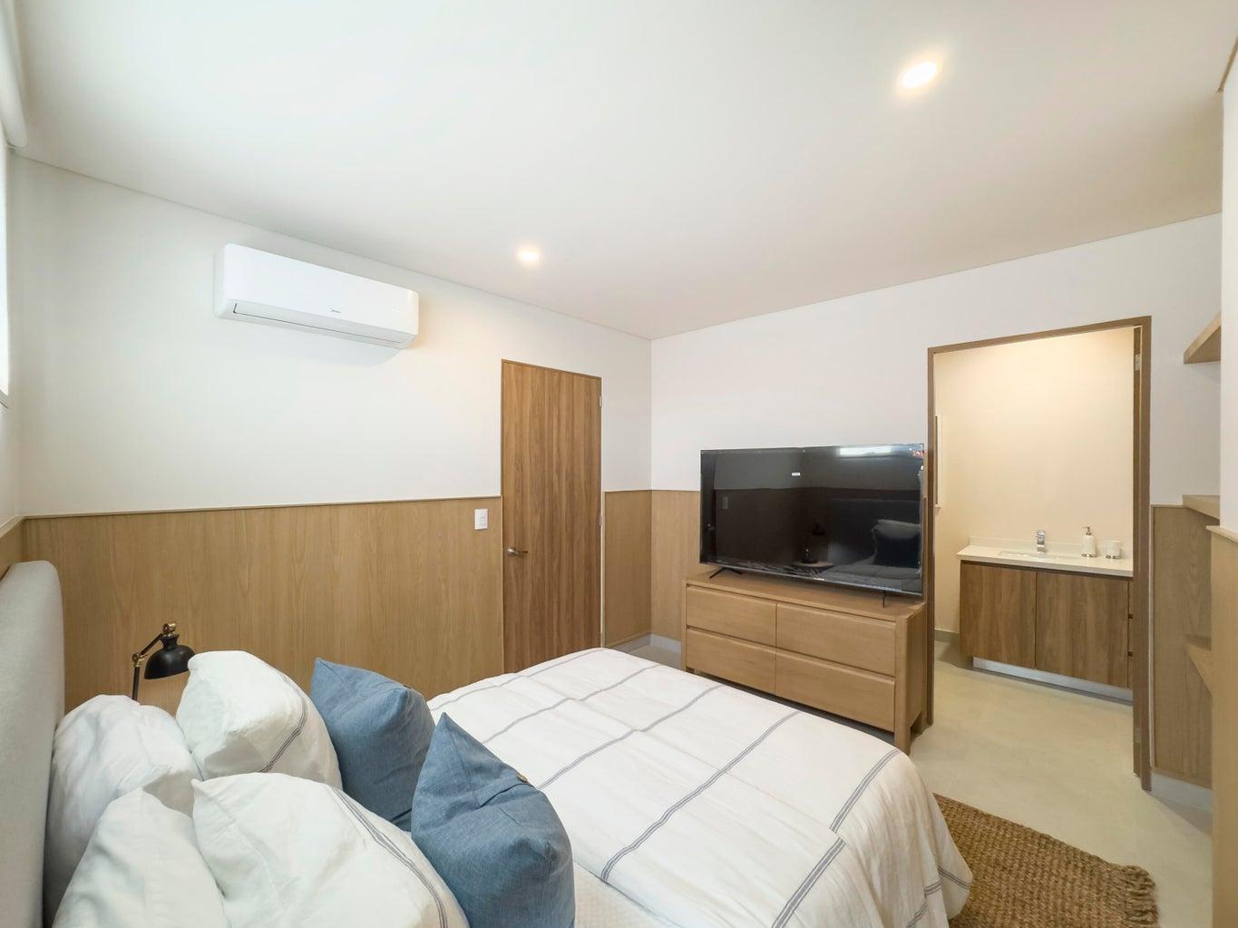 All units feature an outdoor barbecue area, which can accommodate a dining and living space. It includes a polished concrete countertop where a sink and grill can be installed.