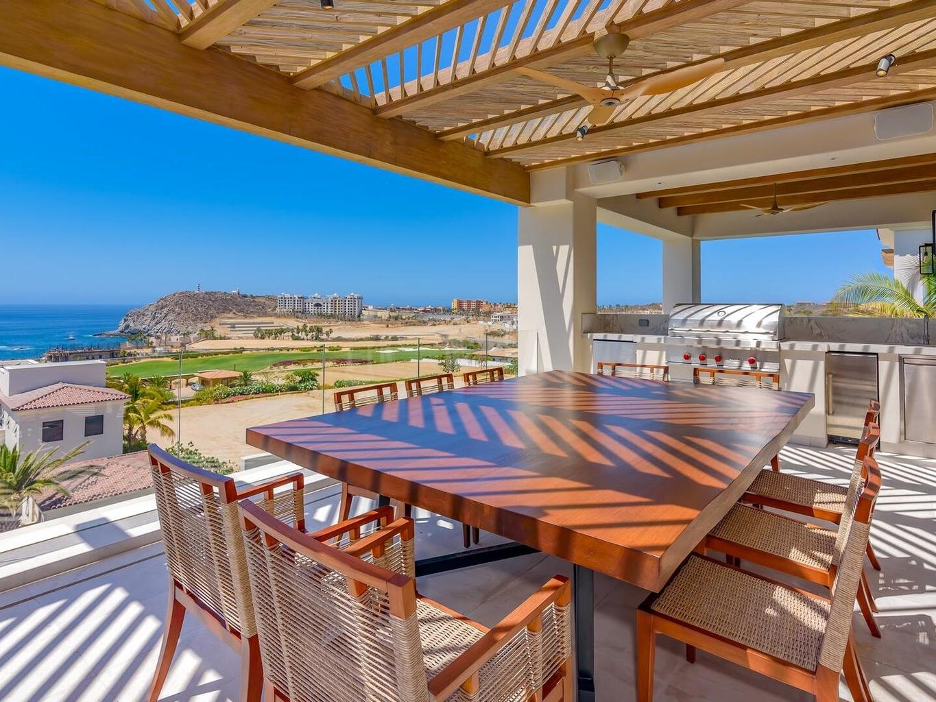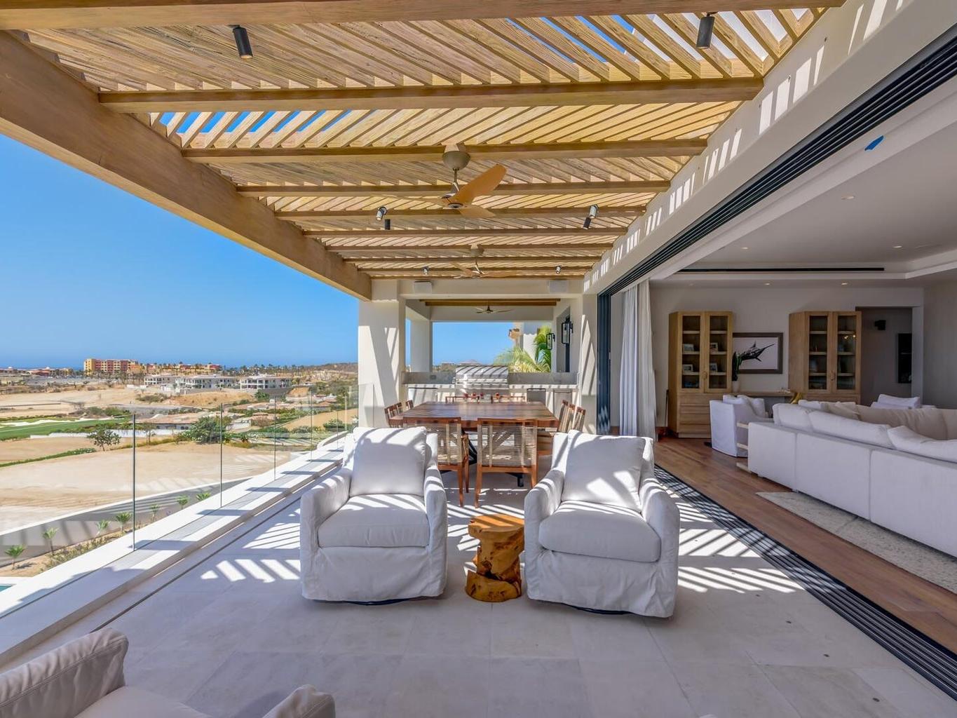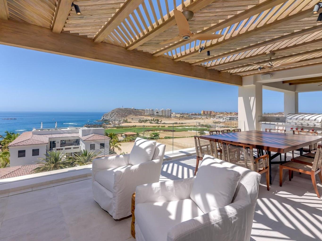 Club Villa 12 is a stunning 4-bedroom residence within the private Cove Club at Cabo Del Sol, one of Los Cabos' most prestigious communities. Each bedroom is a full master suite, complemented by two half baths, one in the living area and one on the rooftop terrace. With over 3,600 sq. ft. under A/C and 1,100+ sq. ft. of terraces, the villa offers seamless indoor-outdoor living. The private rooftop features a pool and hot tub overlooking breathtaking ocean views. Fully furnished and turn-key, Club Villa 12 combines luxury, comfort, and value, one of the most desirable offerings in Cove Club.