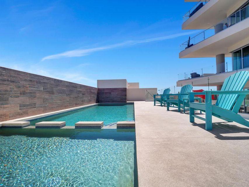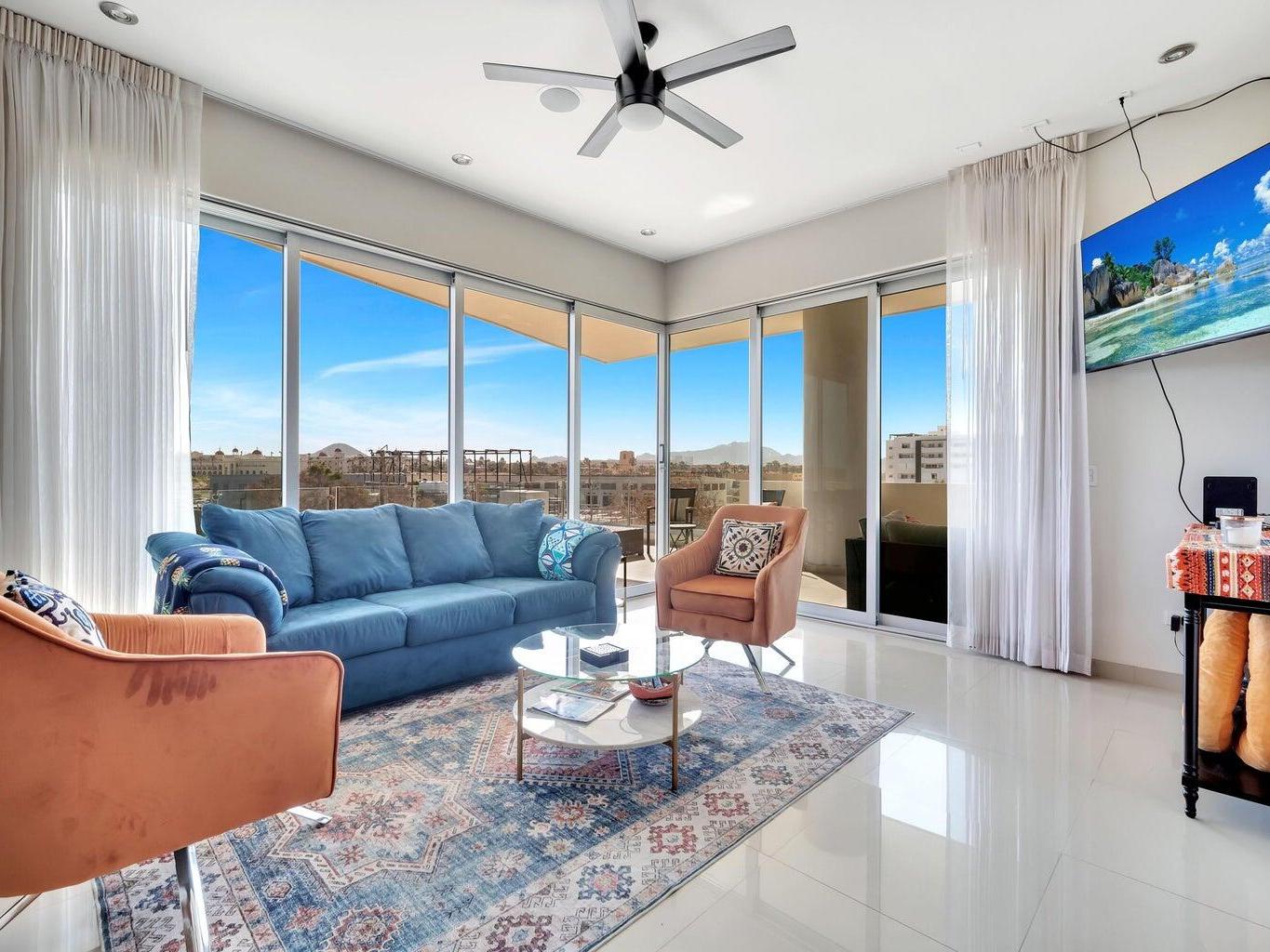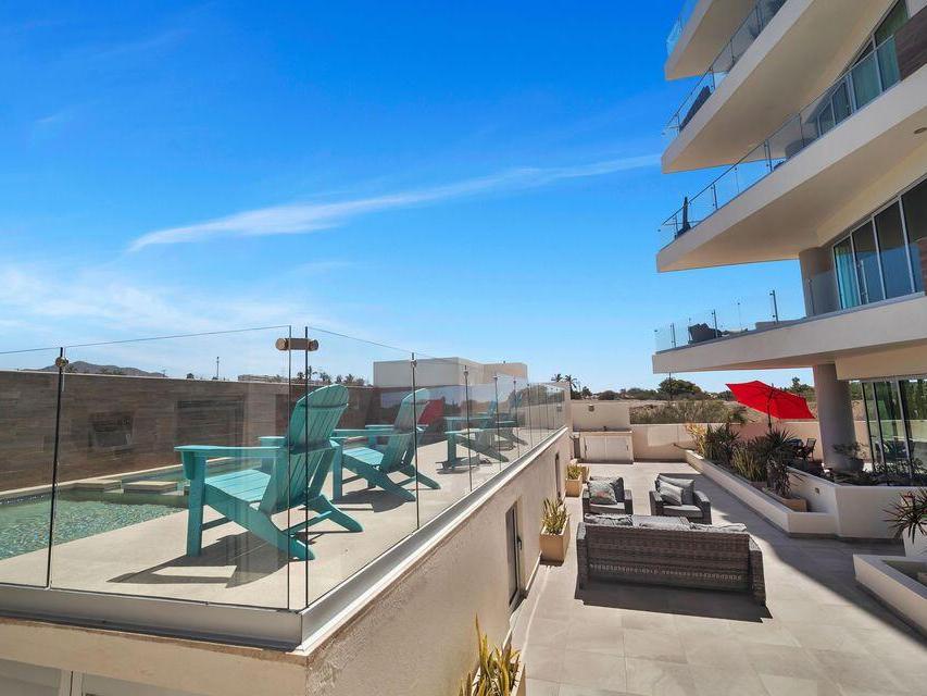 10 MINUTE WALK TO MEDANO BEACH! This beautiful 2 Bed/2 Bath condo is located on the oceanside and within close proximity to Cabo Country Club, Walmart, Costco and the brand new Soriana grocery store (open 24 hrs). Over 1,500 sq. ft. of modern living space with a large wrap-around balcony, high ceilings, tons of natural light and quality finishes. Also included is a storage unit, underground parking garage with elevator and security guard. You will love the rooftop amenities with an ocean view pool, BBQ area, 2 firepits, tons of lounge areas and bathrooms. There is even a 2nd pool located on the lower level with BBQ and lounge chairs. This a perfect low density development made for entertaining, vacation rental or quiet relaxation.