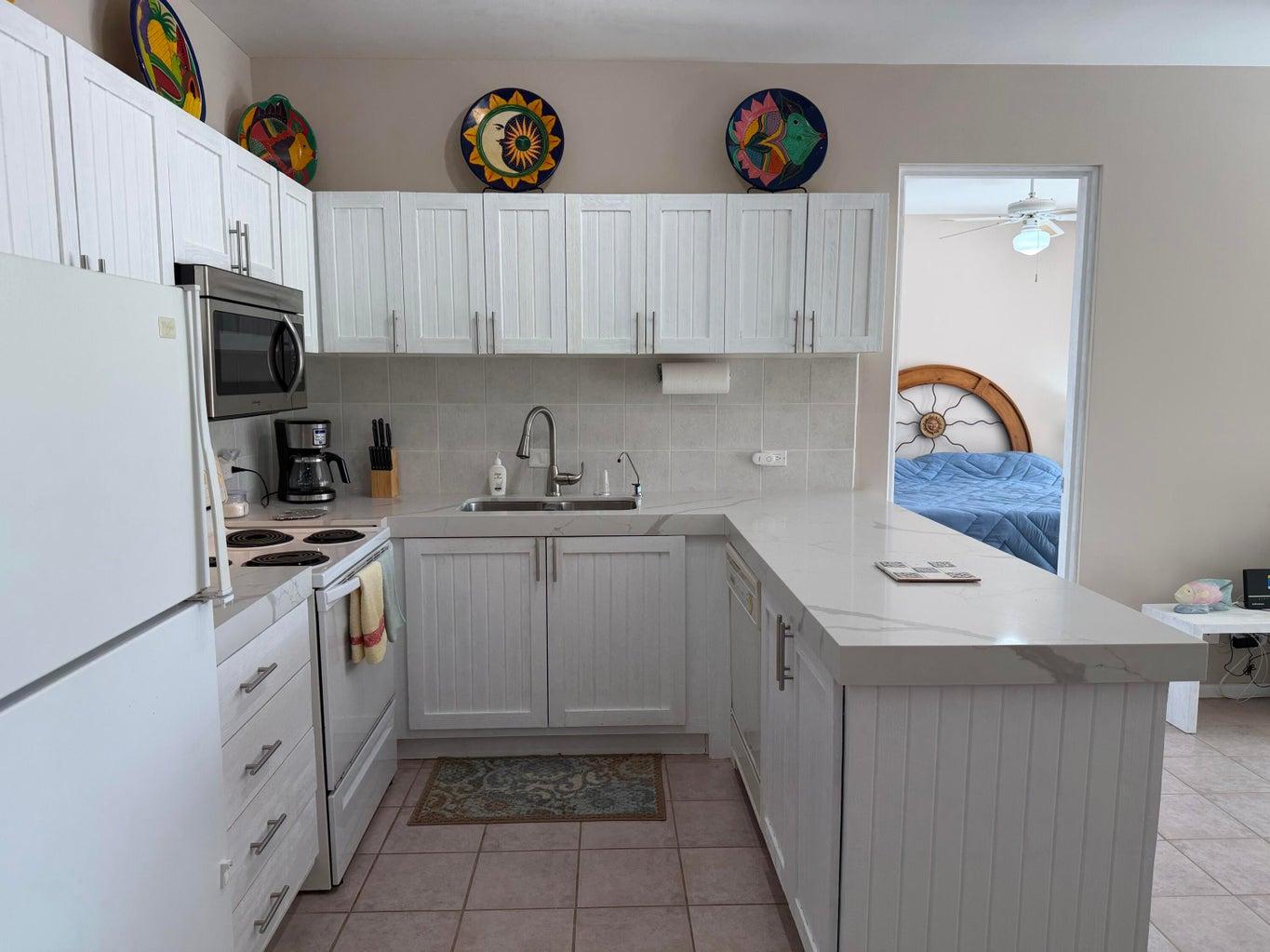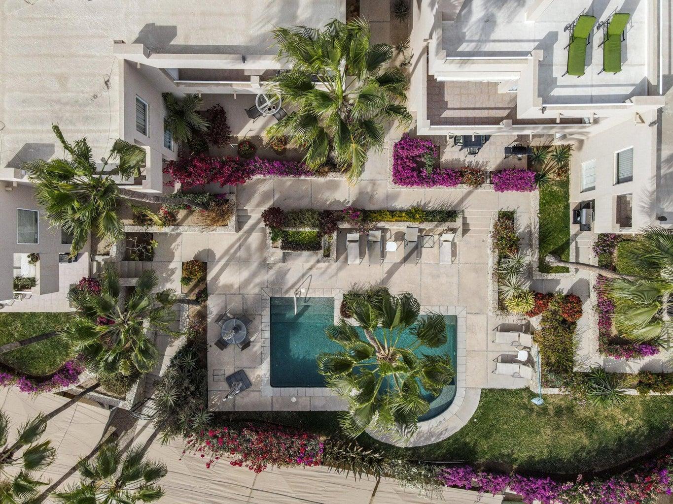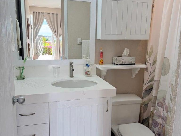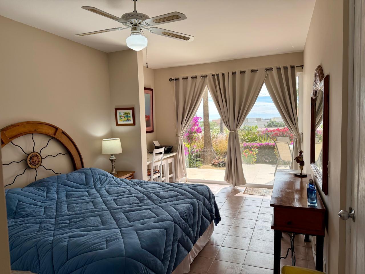 Bright, spacious 2-bed, 2-bath condo, freshly updated with paint, updated cabinets, and quartz countertops. This stylish, move-in-ready home features a private patio just steps from a beautifully landscaped pool, plus access to the shared rooftop terrace with sweeping ocean views. Located in a gated, secure, low-density complex just a six-minute ride to downtown Cabo, it blends comfort, convenience, and a touch of North American style. Ideal as a personal retreat or Airbnb-ready, offering the ultimate Cabo lifestyle