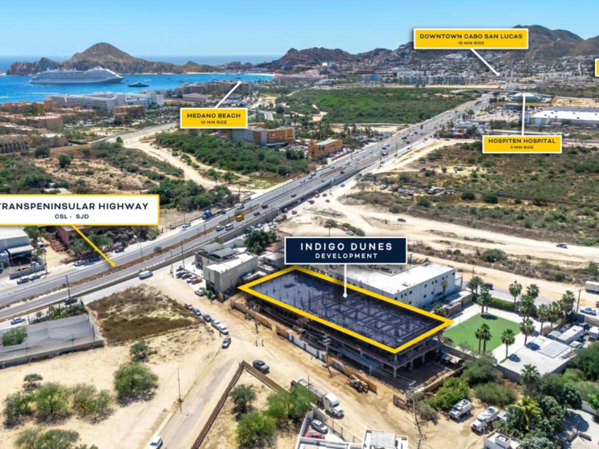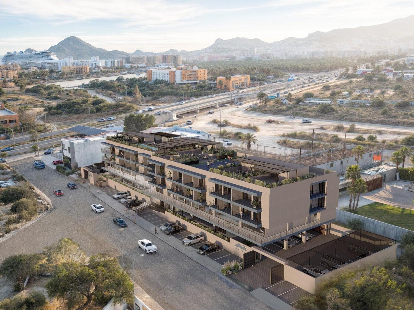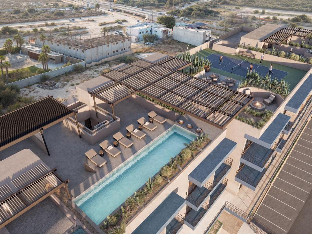 Corner unit located on the 4th floor at Índigo Dunes in El Tezal, offering 132 A/C m² of thoughtfully designed living space. This 3-bedroom, 2-bathroom pre-construction condo features a spacious private terrace with partial ocean views, ideal for enjoying Cabo's sunsets and natural light.