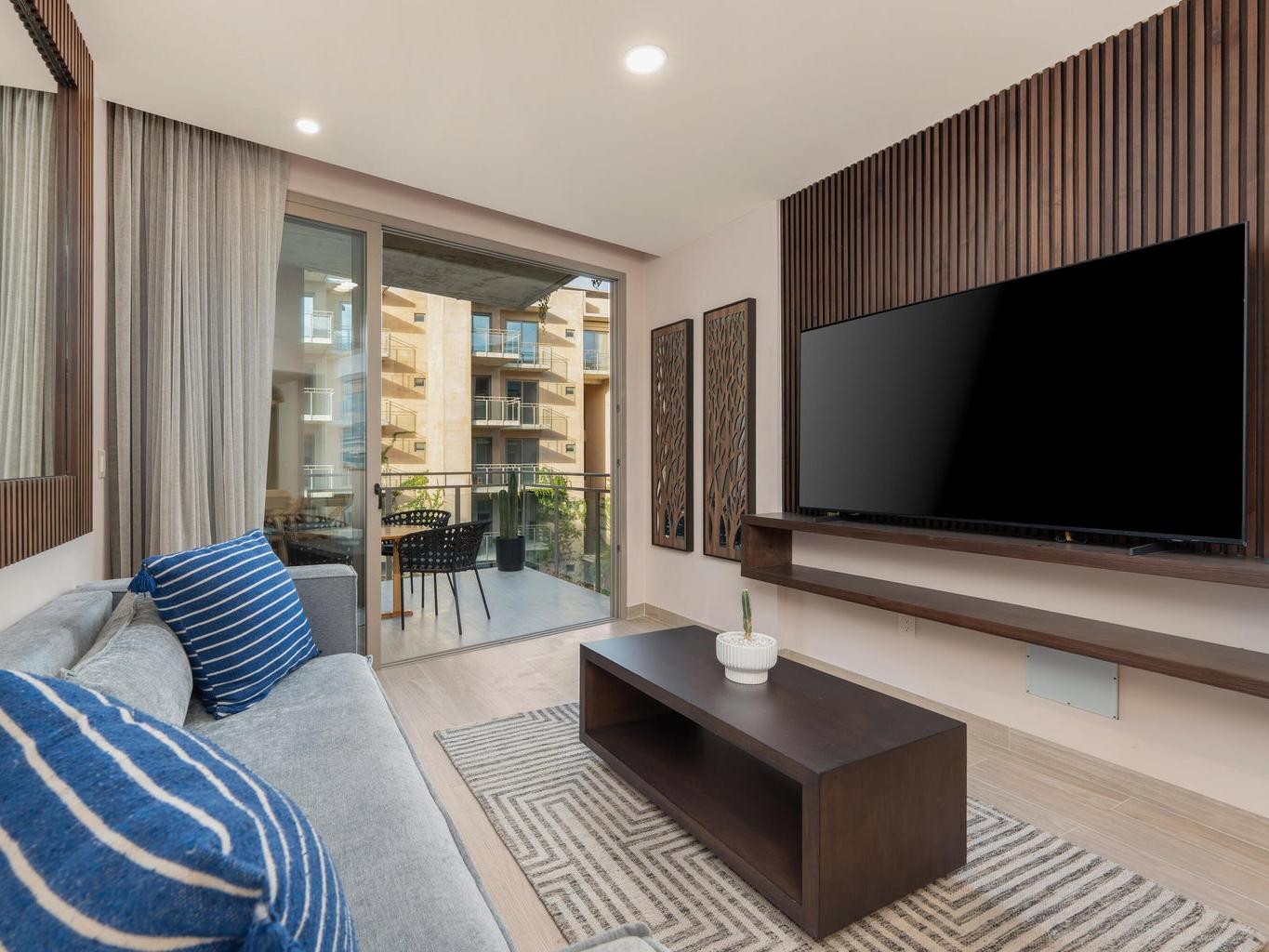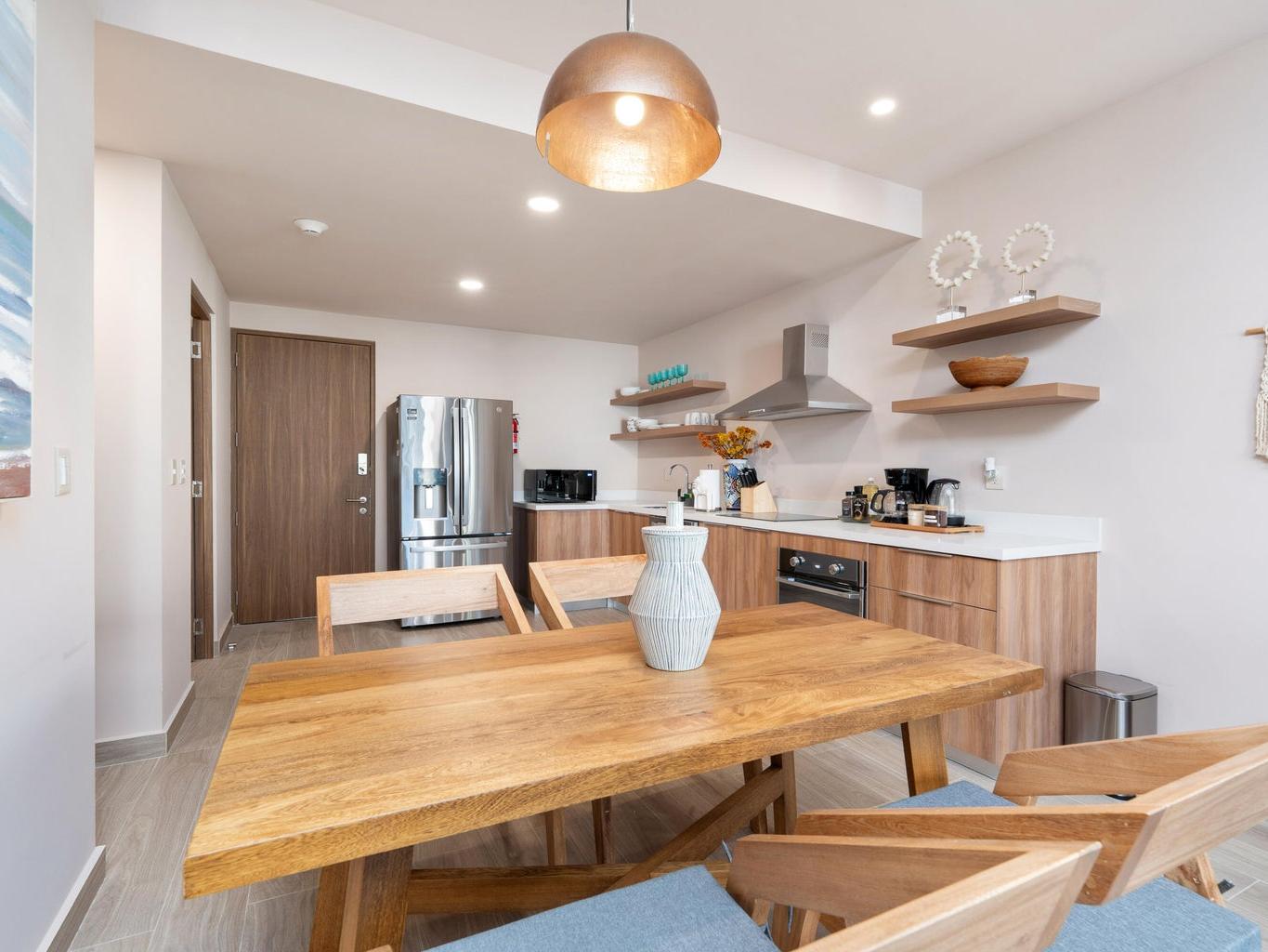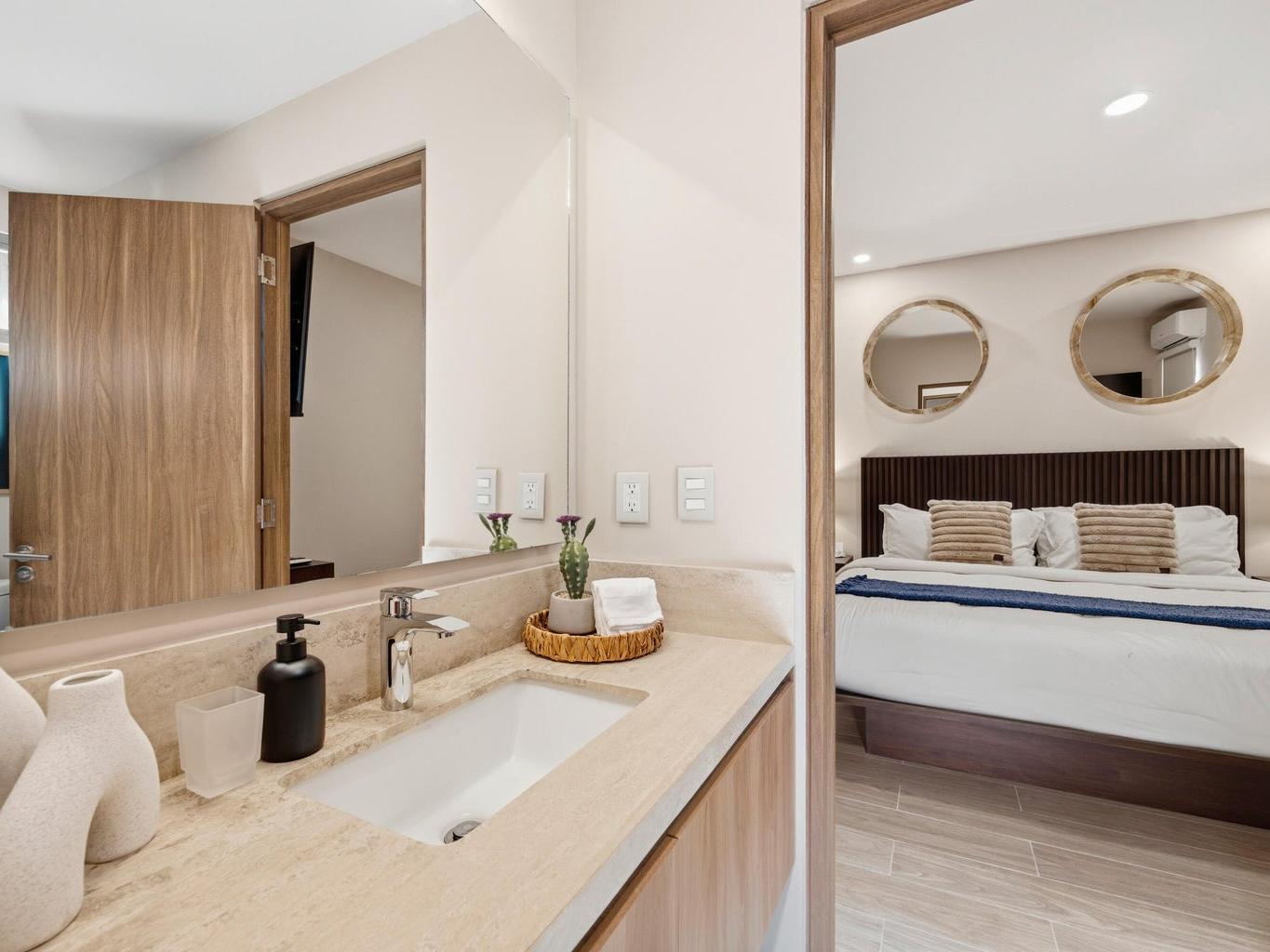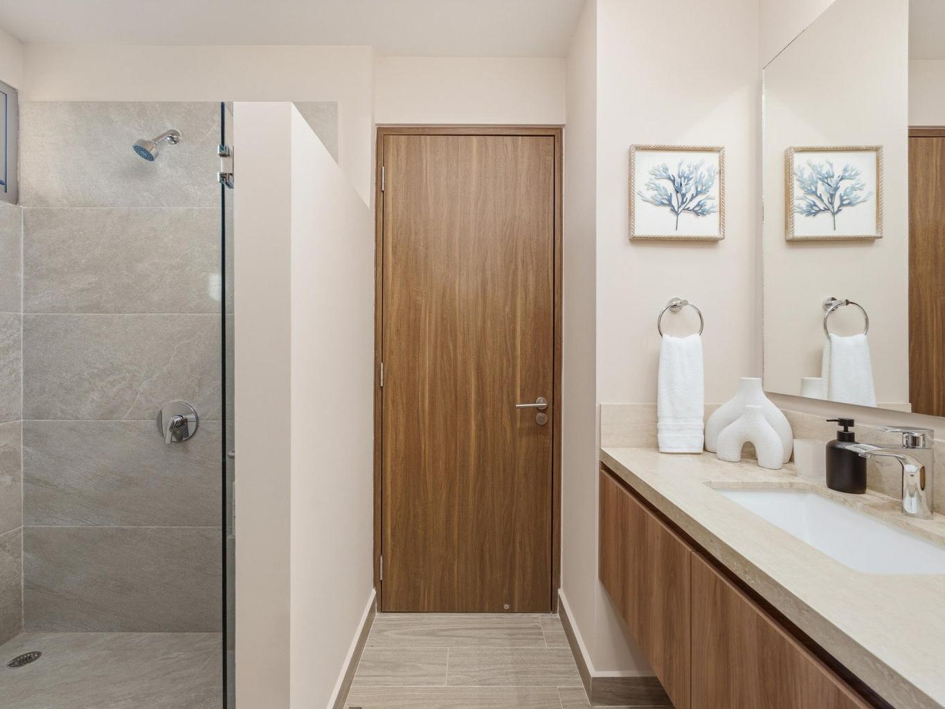This contemporary 99 m² condo in Cabo San Lucas features an efficient layout with 2 bedrooms and 2 bathrooms. The open-concept living area combines the kitchen, dining, and living spaces, creating a seamless flow. The kitchen boasts wood cabinetry, stainless steel appliances, and sleek countertops. Both bedrooms offer ample space, with the primary bedroom measuring 11.1 m². The bathrooms are modern and well-appointed. A balcony provides outdoor living space with scenic views. The interior design showcases a neutral color, creating a serene coastal ambiance. High-quality finishes and thoughtful details throughout enhance the overall aesthetic and functionality of this compact yet stylish residence.