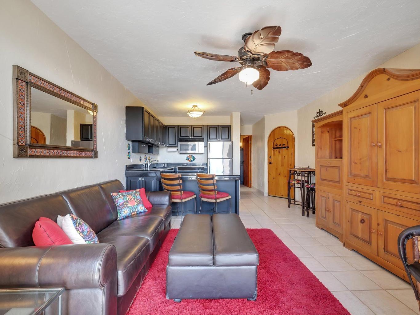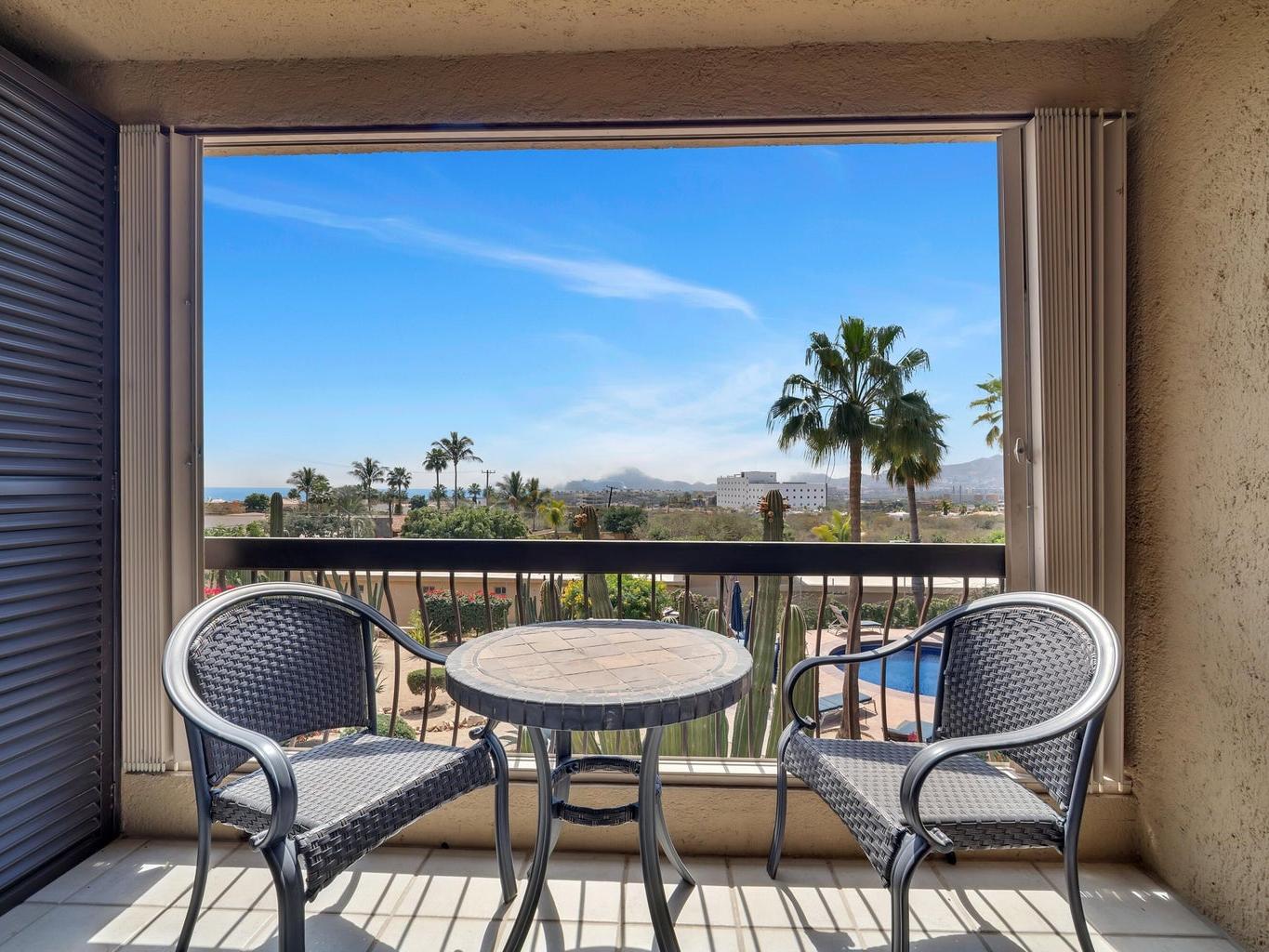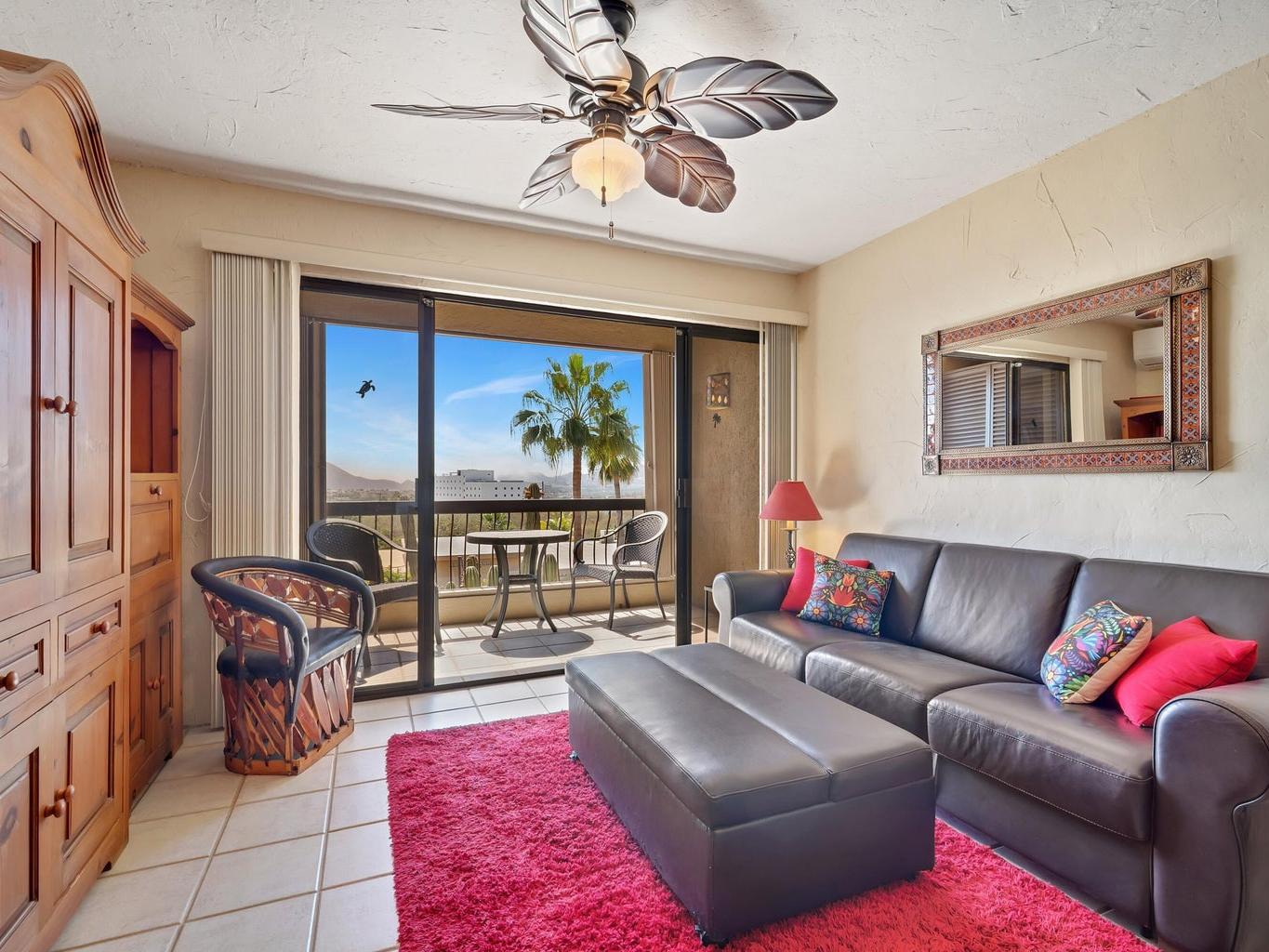 Enjoy tranquil living in this ocean-view, turnkey 1-bedroom, 1-bath condo located just on the outskirts of Cabo San Lucas. Mañana Condos development, this property offers privacy and comfort within an intimate community of only 40 units.