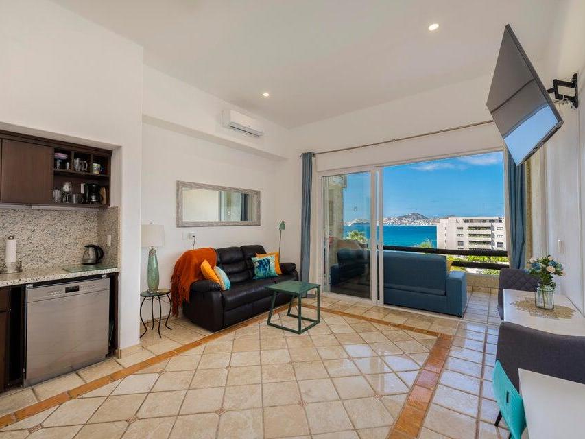 Watch cruise ships glide past Land's End from your private terrace! This fully furnished 1BR/1BA condo offers a modern kitchen, resort pool, and 24/7 security—just minutes from beaches, dining, and downtown Cabo.