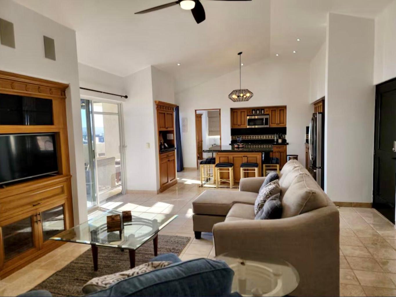 Experience the breahtaking non stops ocean views and the iconic Arch, sunsets and vibrant Cabo San Lucas Bay from every space of this stunning 7th floor penthouse. 2 Master bedroom suites with private en-suite bathrooms. Large open plan living room and kitchen feature sliding glass doors to the huge west facing terrace. The perfect spot for entertaining guests! Wonderful kitchen fit for the gourmet cook with granite counter, large granite island, abundant cabinets, wine fridge &stainless steel appliances.