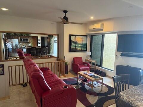 > These are two separate condos at Misiones' that were joined together by an inside stairwell. The top floor Penthouse has 14 foot vaulted ceilings and the lower level features direct access to the common area grass and has direct access to the beach.