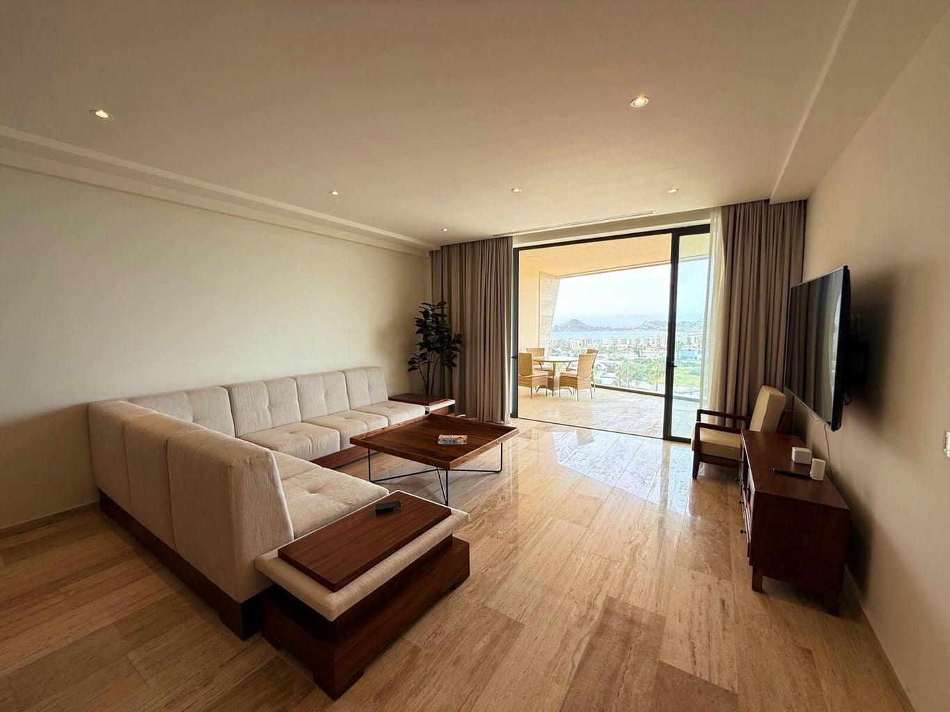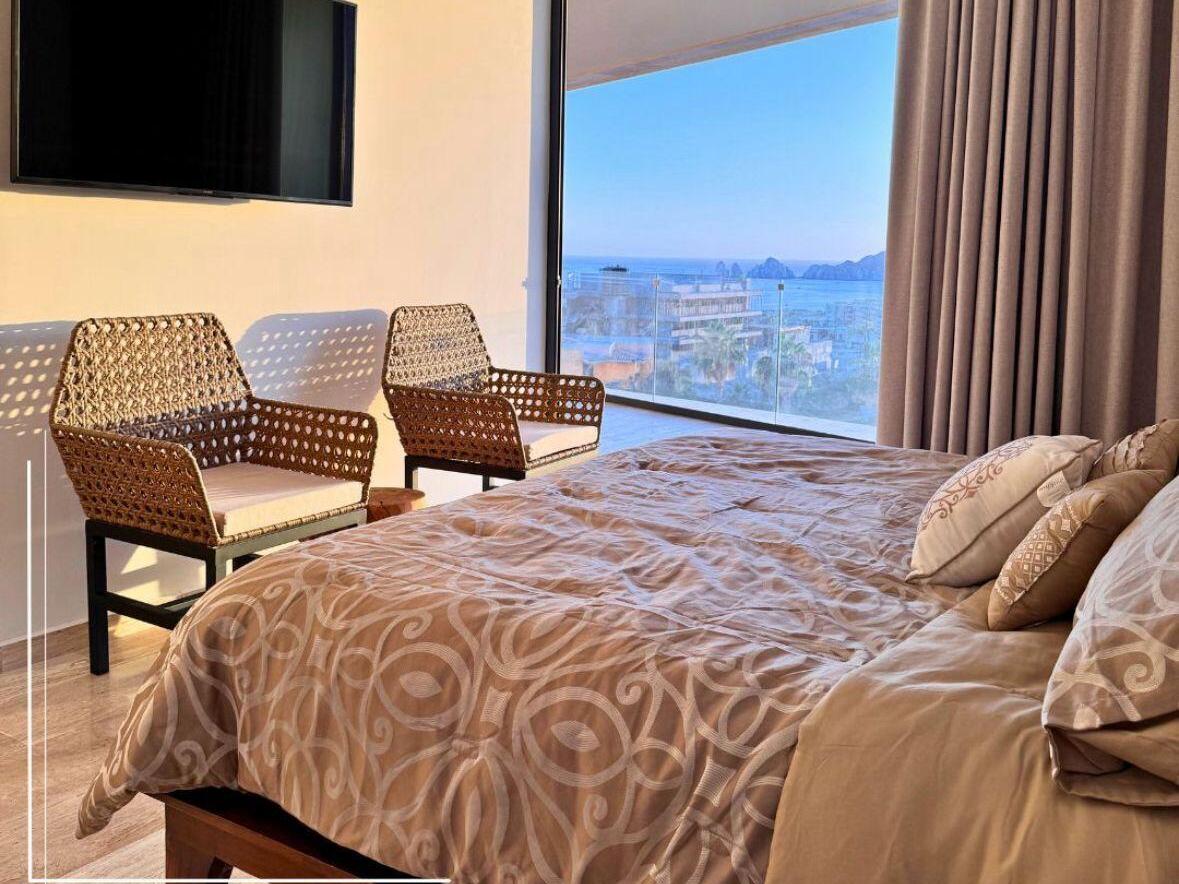 This spacious unit welcomes you with a bright open-concept layout, featuring marble-style travertine floors, a sleek modern kitchen with high-end stainless steel appliances, and a large living area that flows seamlessly to an expansive ocean-view terrace — ideal for relaxing or entertaining while enjoying the spectacular views of Land's End and the Cabo Bay.