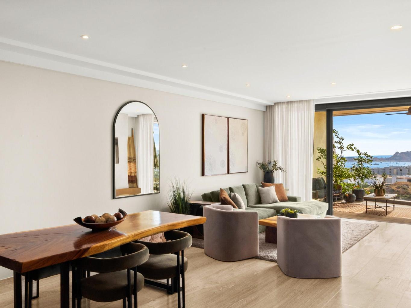 Imagine a morning where the first light of the sunrise greets you at your front door, and your day concludes with the Pacific sunset painting the horizon from your private terrace. Situated at a prime elevation within the Los Cabos corridor, Mistiq Unit 309 offers privacy and panoramic views across Land's End and the Sea of Cortez.