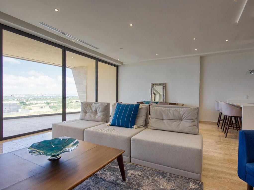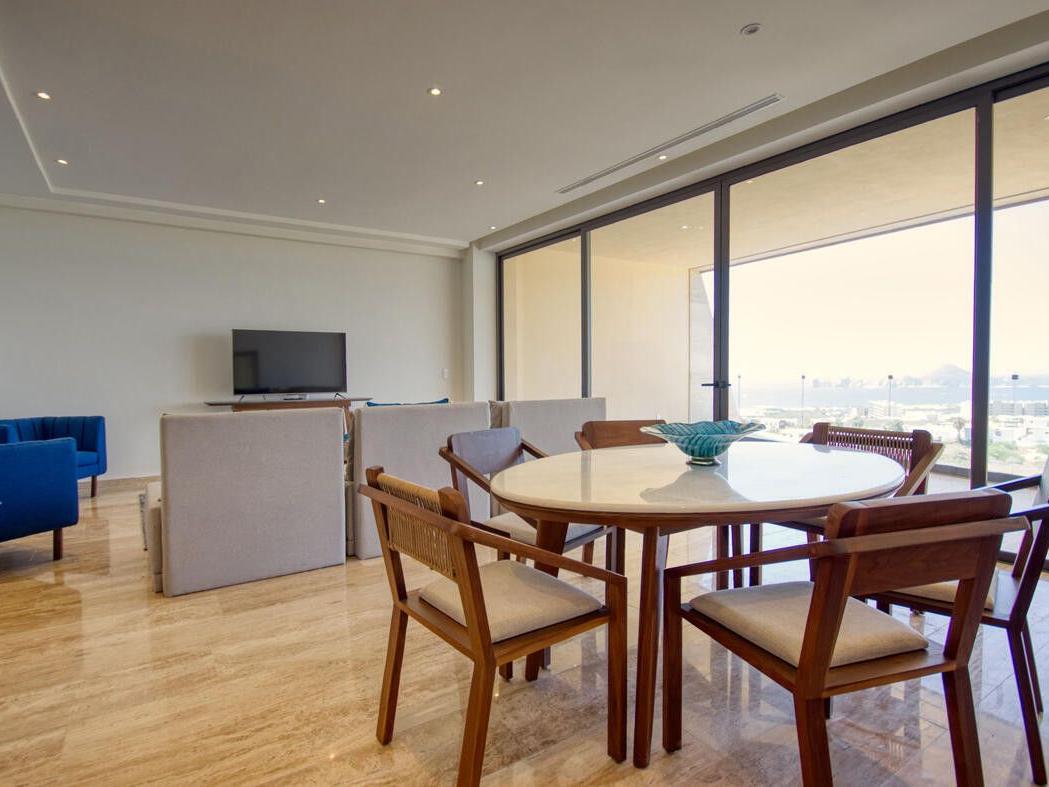 MOTIVATED SELLER This exquisite 2-bedroom penthouse condo offers a lifestyle of sophistication and comfort. Situated in one of Cabo's most sought-after locations, this residence boasts breathtaking views of the iconic Cabo San Lucas Arch, resort like amenities and quick access to shopping. The open-concept living space is bathed in natural light, with floor-to-ceiling sliding doors. The central kitchen is perfect for culinary enthusiasts and social gatherings. The two spacious bedrooms offer serene retreats, each with its own en-suite bathroom and generous closet space. But the true jewel of this penthouse is the rooftop terrace, a private sanctuary where you can soak in the sun, relax in the hot tub (needs heater), or simply savor a glass of wine while gazing at the view.