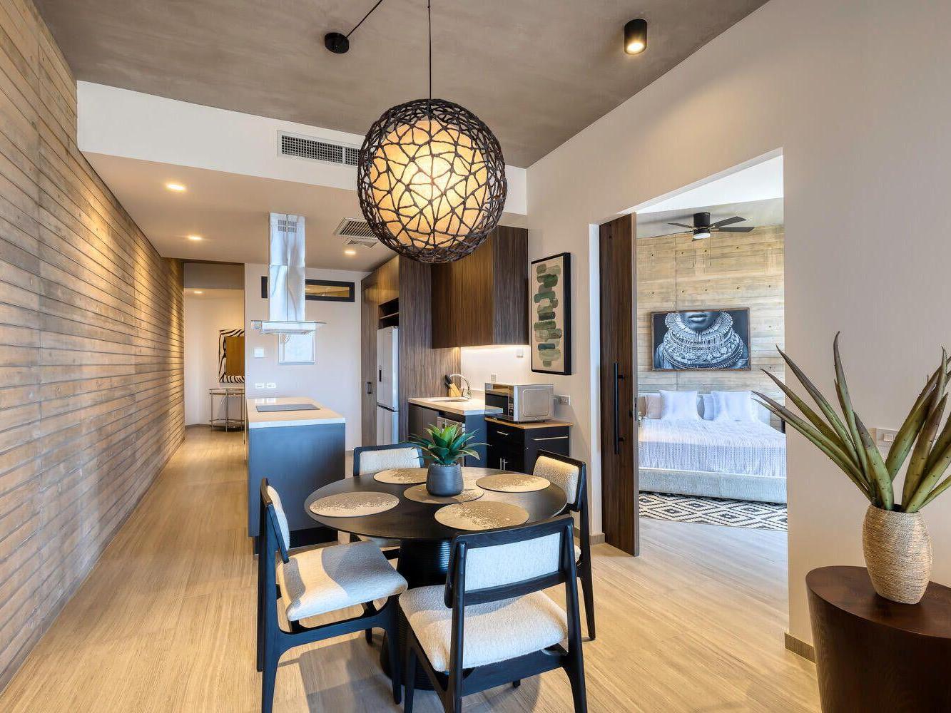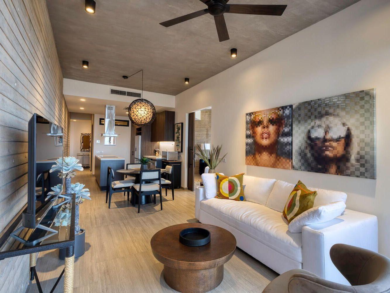 OR Cabo - Fully furnished (negoitable under seperate invoice) and turnkey. A unique one-bedroom, two-full bath condo offers great sea and Punta Ballena views and high style furnishings. With 861 square foot of air-conditioned interior space and a generous 205 square foot covered terrace. Residents of OR Cabo - Boutique Residences enjoy an Olympic length lap pool, fully equipped gym, huge common rooftop terrace with sweeping views of Land's End, social room, and 24 hour security, assigned one-car parking space and elevator. Offered fully furnished turnkey. Move in to live or short term rental ready