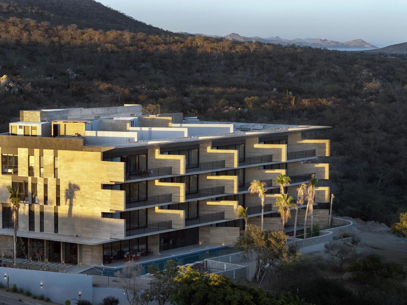 2 bedroom unit with private rooftop. OR is an award-winning, architect-designed residential project in the Cabo Corridor by Jacobo Micha (Archetonic), recipient of the BLT Built Design Award (2025). With only 25 residences, it offers a rare boutique living experience defined by privacy, quiet luxury, and architectural distinction. The fan-inspired design maximizes orientation, natural light, and views of the desert and sea, using pigmented concrete and natural materials that echo the Baja landscape. Interiors feature generous ceiling heights, elongated living areas, seamless indoor-outdoor flow, and fully equipped modern kitchens. Amenities include a semi-Olympic pool, gym and yoga area with views, games room, fire pits, storages, gated security, and a common rooftop with iconic Arch view