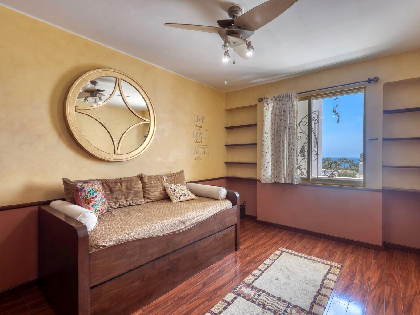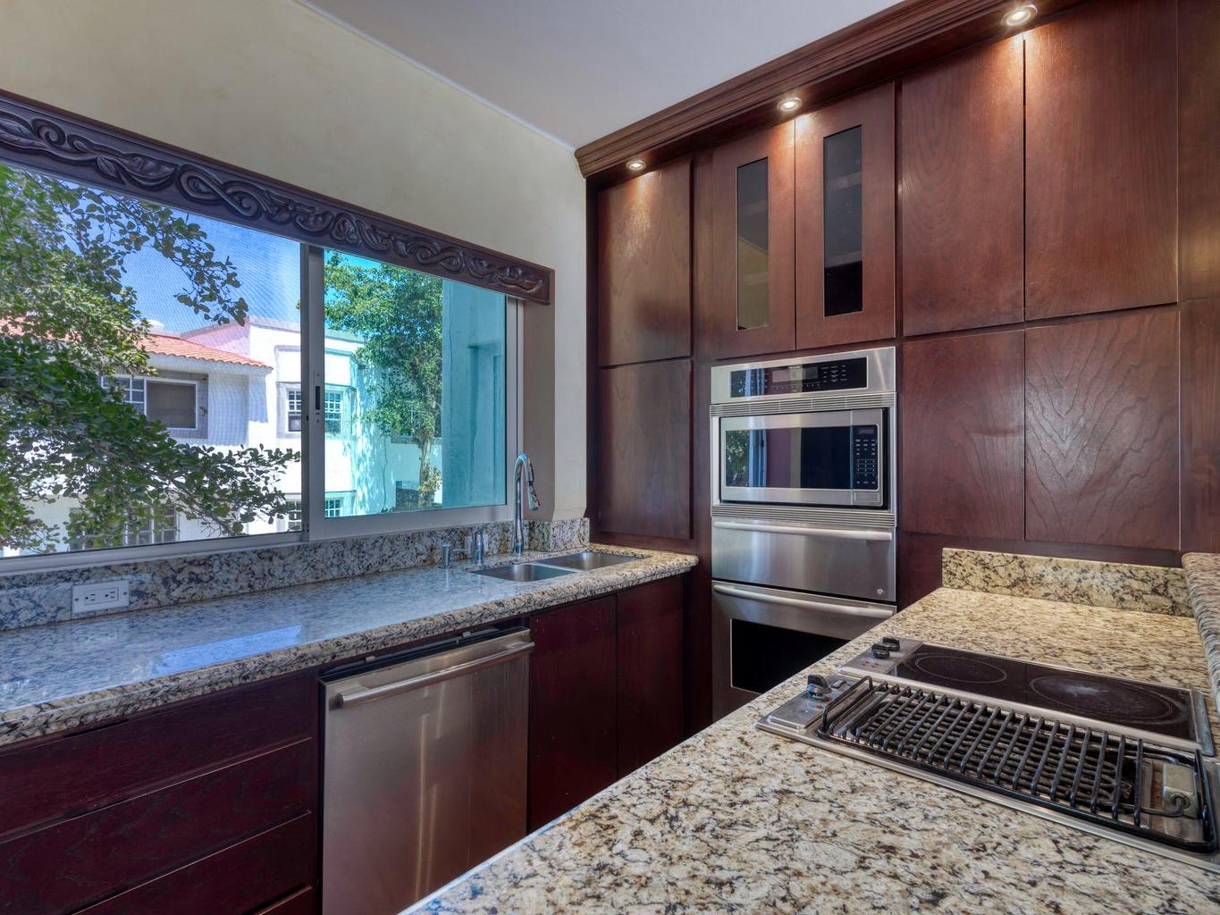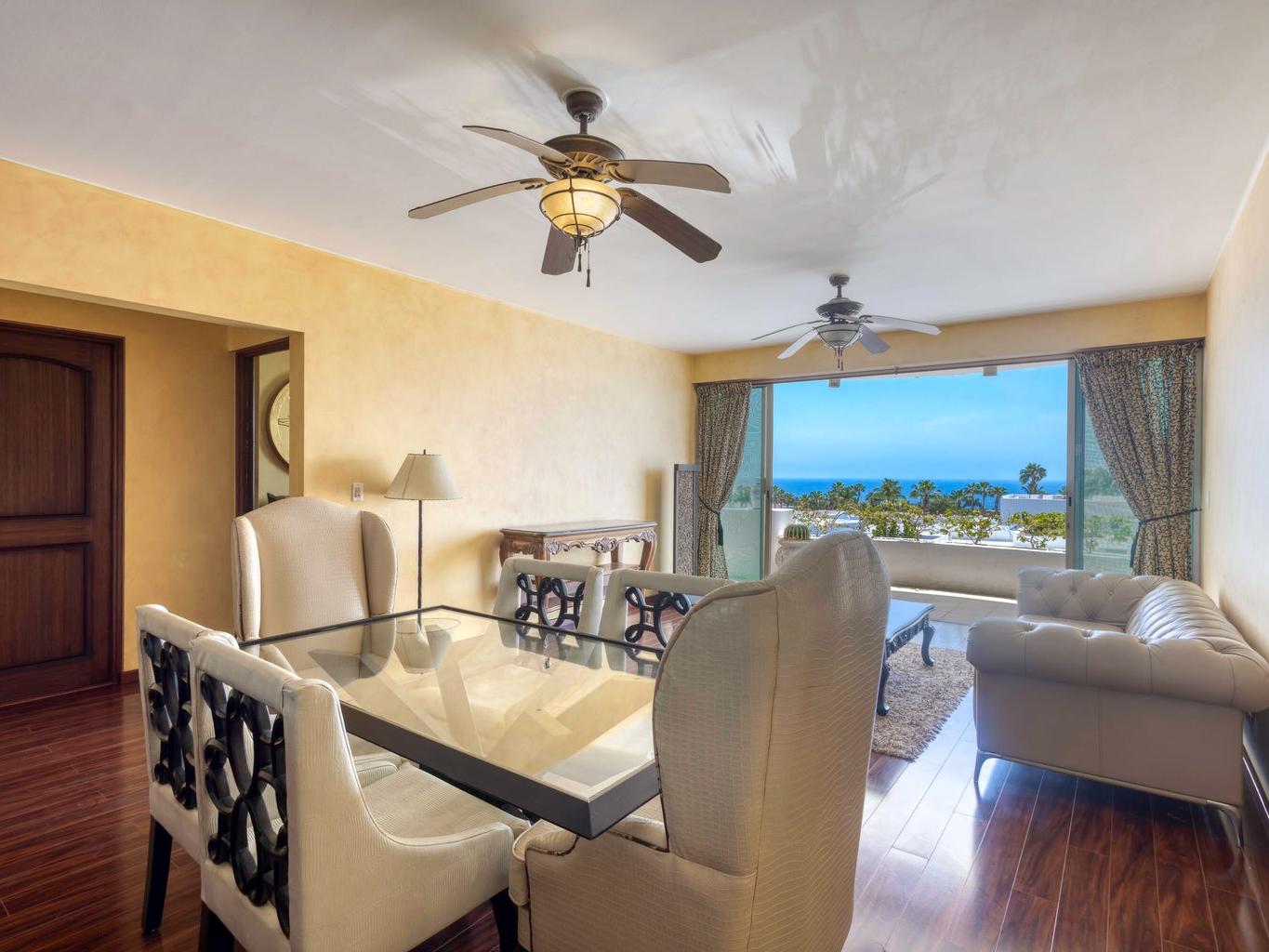 A true hidden gem. Every day you cast your eyes over these remarkable views with the blue ocean of Esperanza Resort. Located in Puerta de Hierro in the back of the neighborhood where it's really quiet Truly panoramic view from lands end to the lighthouse. The condo is decorated remarkably nice from the 90's. Hard wood floors. Designer small kitchen. Many many details around an efficient kitchen