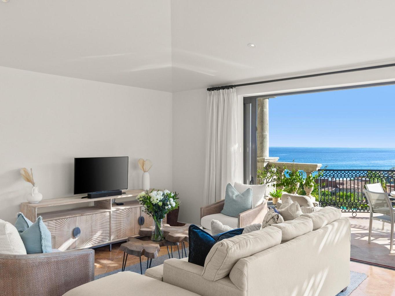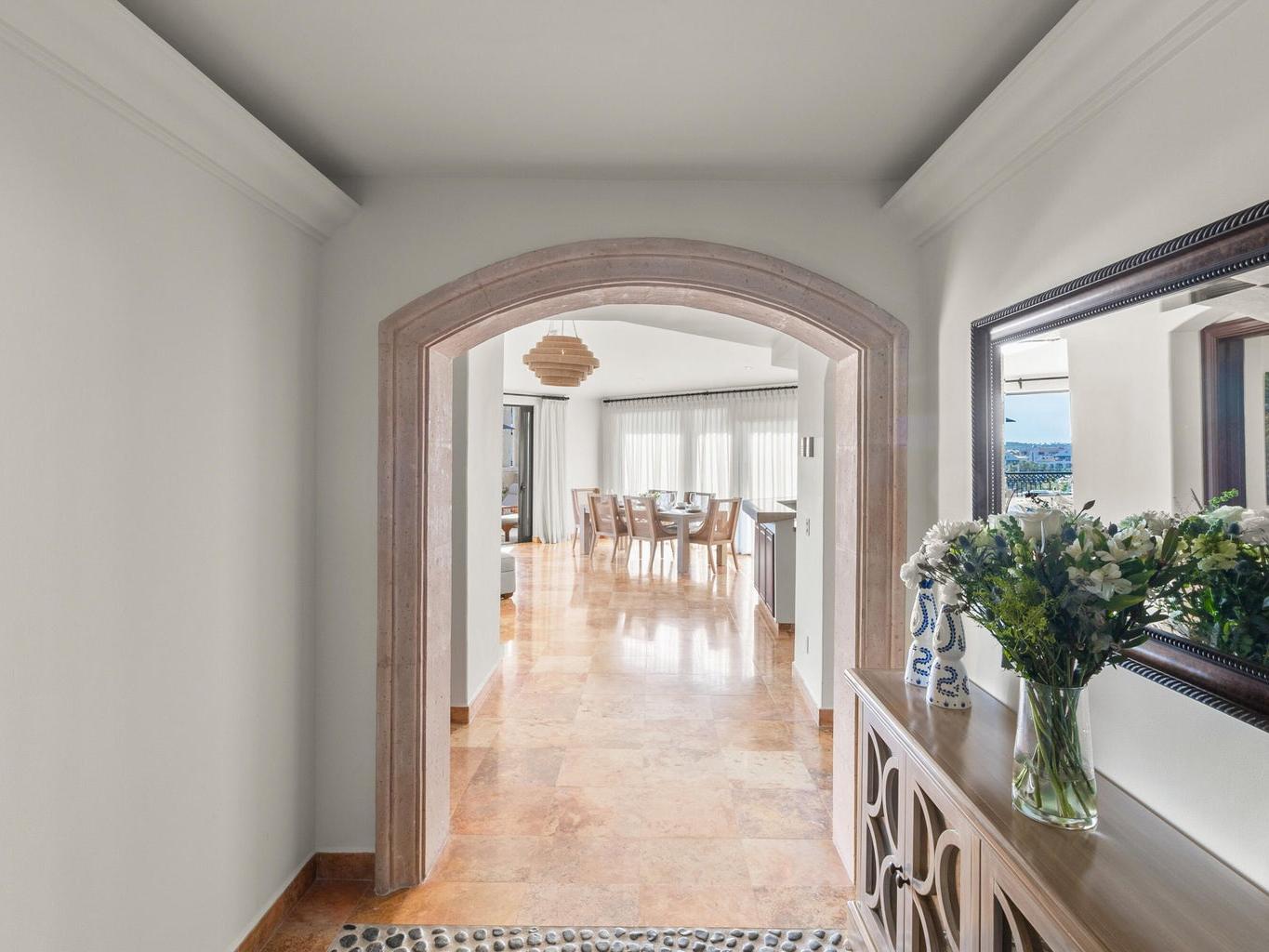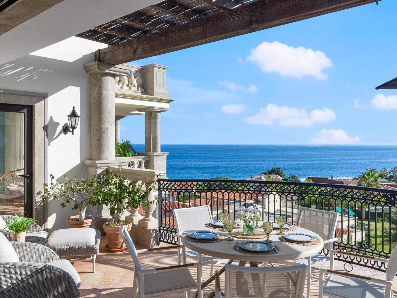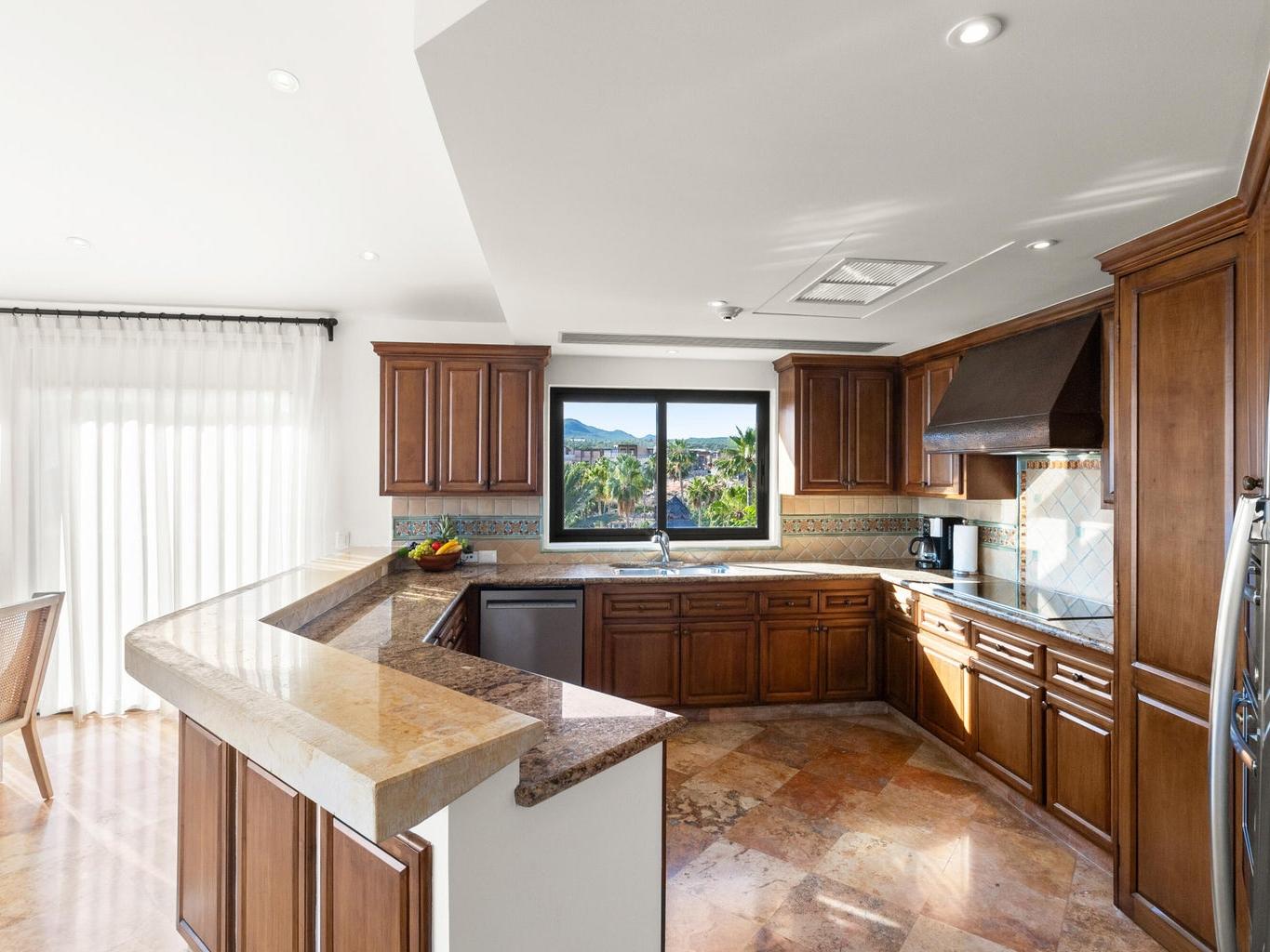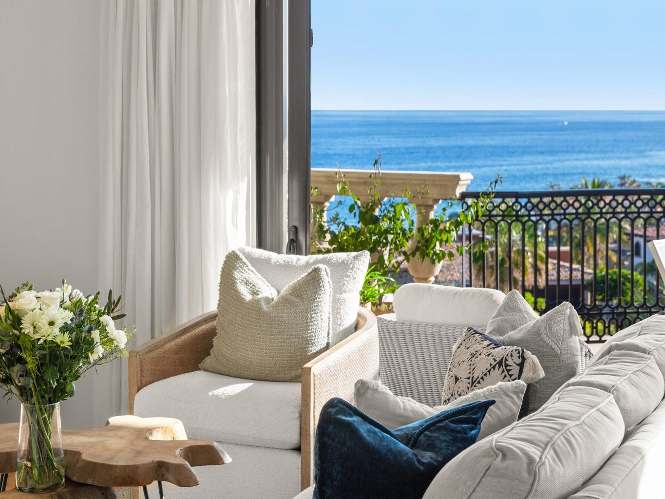 Elegant two-bedroom penthouse with breathtaking views of the ocean, golf course, and pools, located on the top floor of the left wing of the building in the prestigious Cabo del Sol community. Its unique, non-traditional layout provides the feeling of a private home rather than a typical condo, with high ceilings, smart distribution, and generous spaces. Upon entry, a wide foyer leads to the primary suite on the left, and to the right, you'll find the guest bedroom, guest bathroom and laundry area