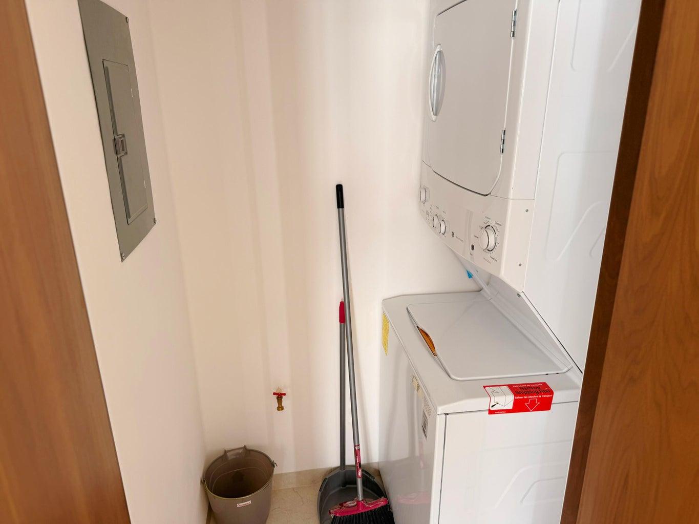 This home comes fully equipped with blinds and an upgraded appliance and carpentry package, including custom closets, vanities, kitchen cabinetry, range, microwave, oven, dishwasher, refrigerator, washer, and dryer, as well as mini-split air conditioning units throughout.