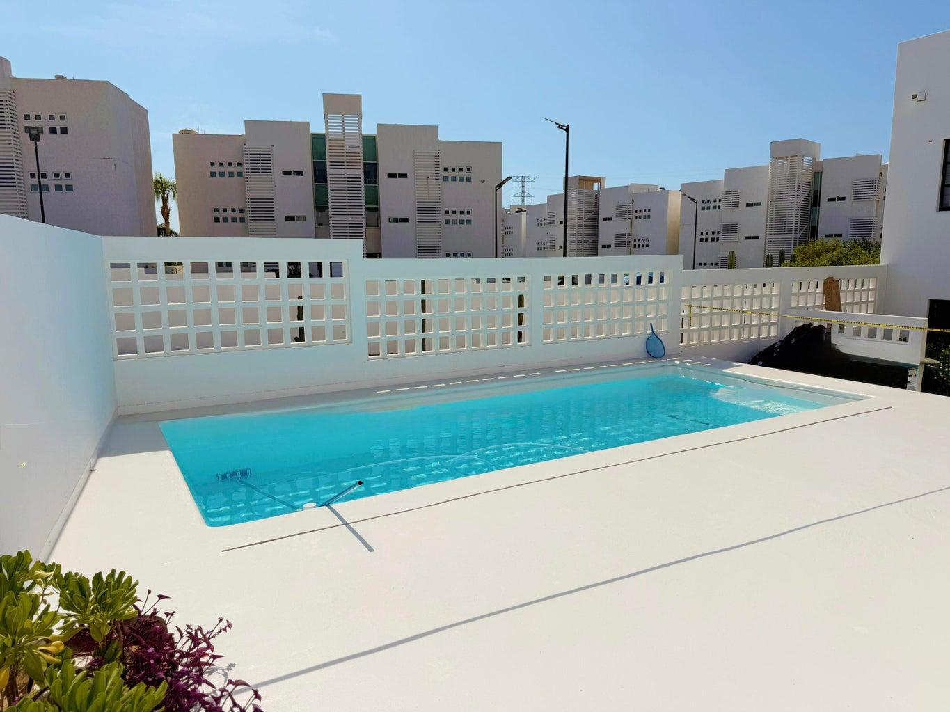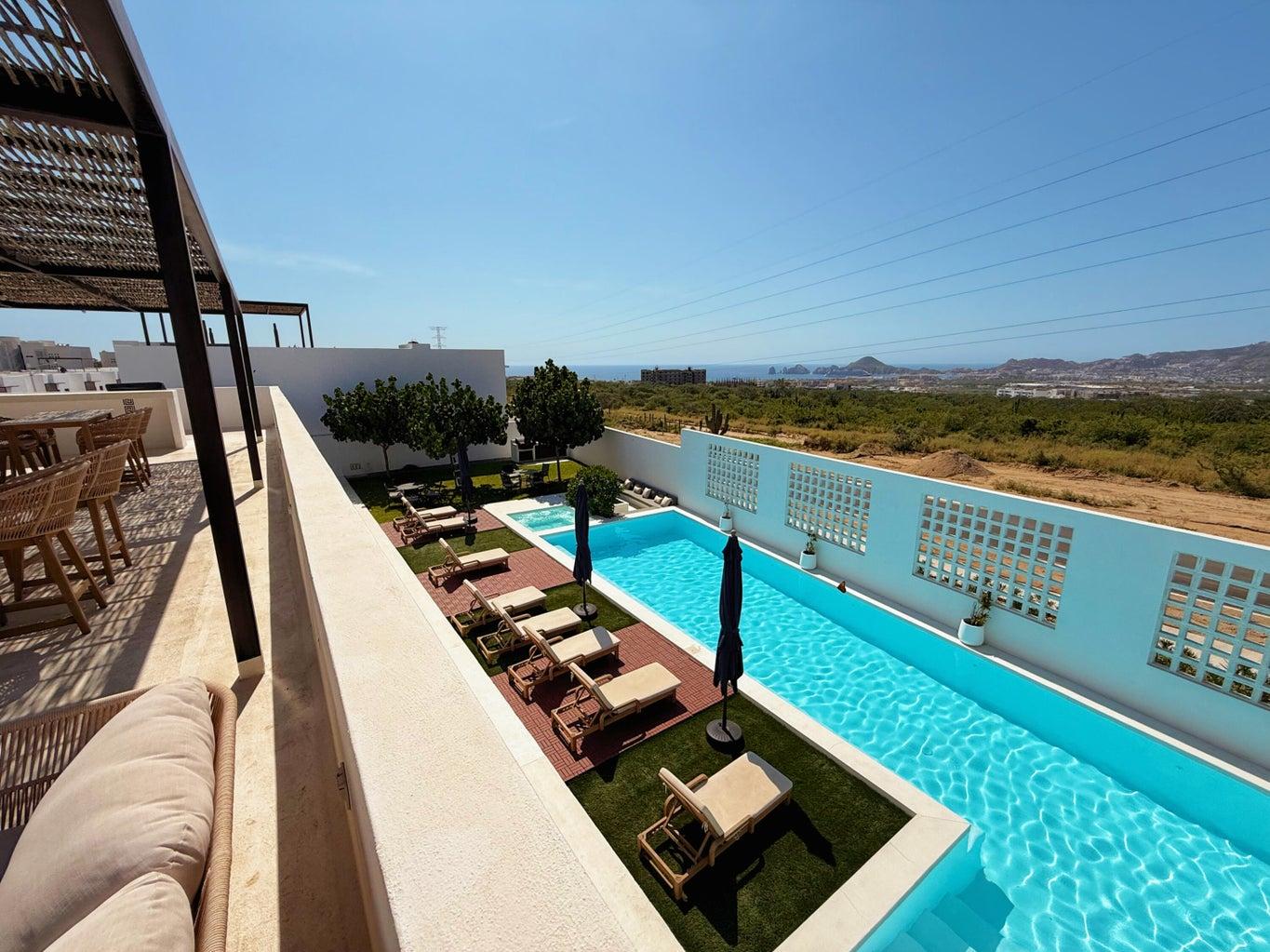 Discover the charm of Rivieri Pueblo Mediterráneo, an exclusive new community in El Tezal, Cabo San Lucas. This stunning brand-new Positano Penthouse model home features 2 bedrooms and 2 bathrooms, blending contemporary Mediterranean style with modern comfort. With 86 m² of construction, it offers direct interior access to a 60 m² rooftop terrace boasting beautiful ocean, sunset, and city views — perfect for relaxing or entertaining.
