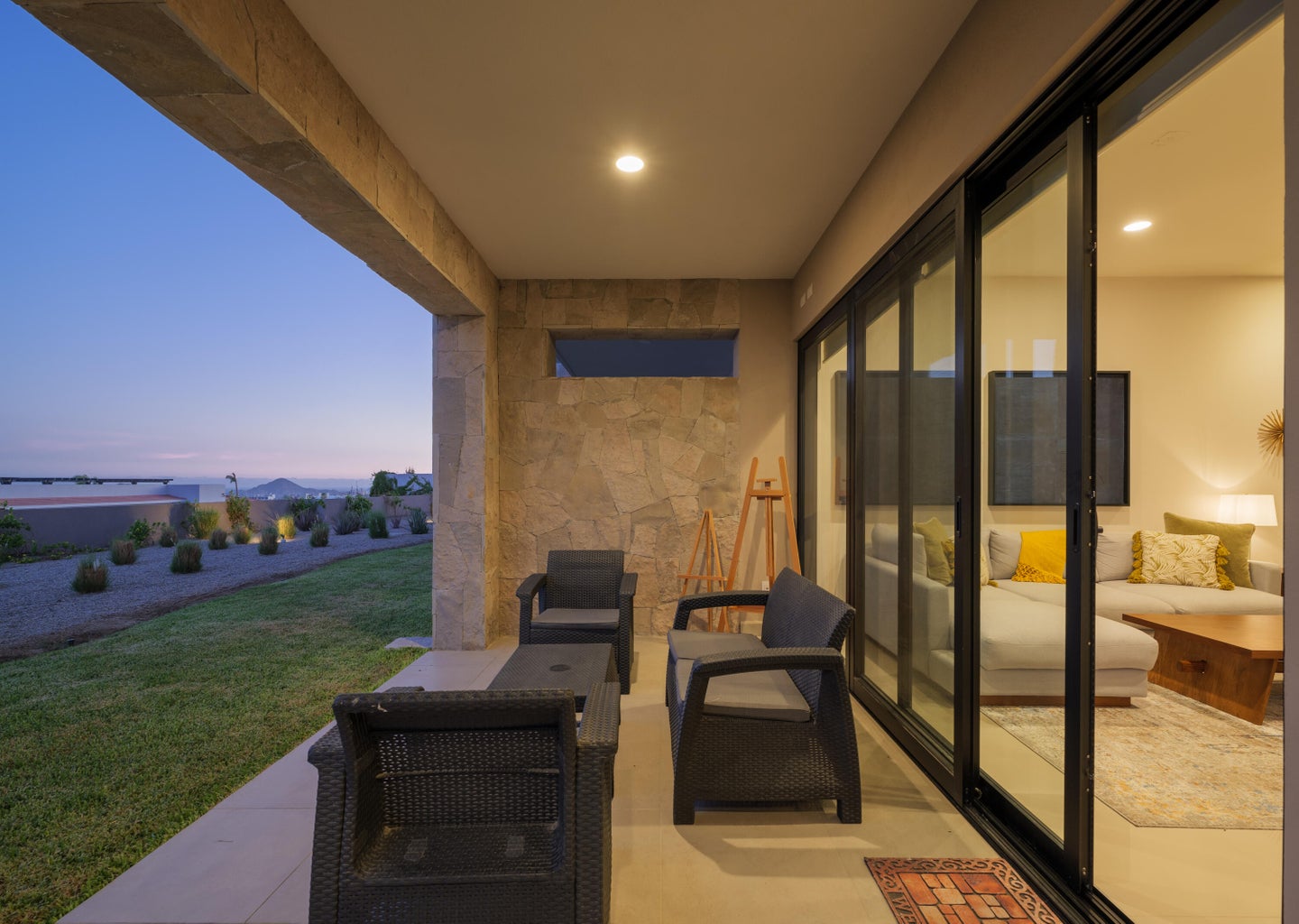 This fully furnished, turnkey condo built in 2022 offers contemporary decor and is situated on the garden level. With 2 bedrooms and 2.5 baths, this unit features an extended patio with privacy walls on both sides, opening up to lush green grass and a beautiful garden. Enjoy breathtaking ocean views of the Sea of Cortez from the living area and primary bedroom.