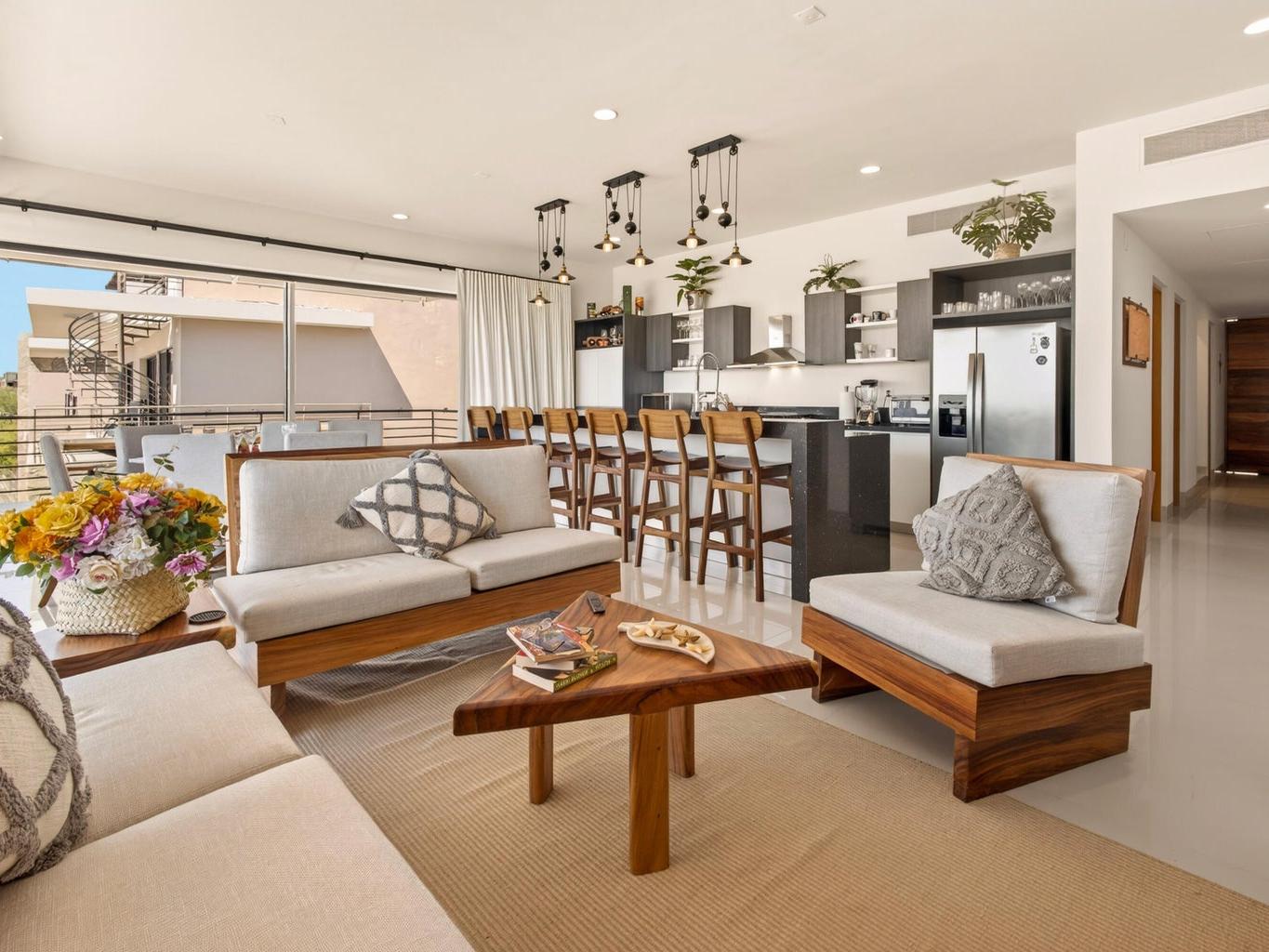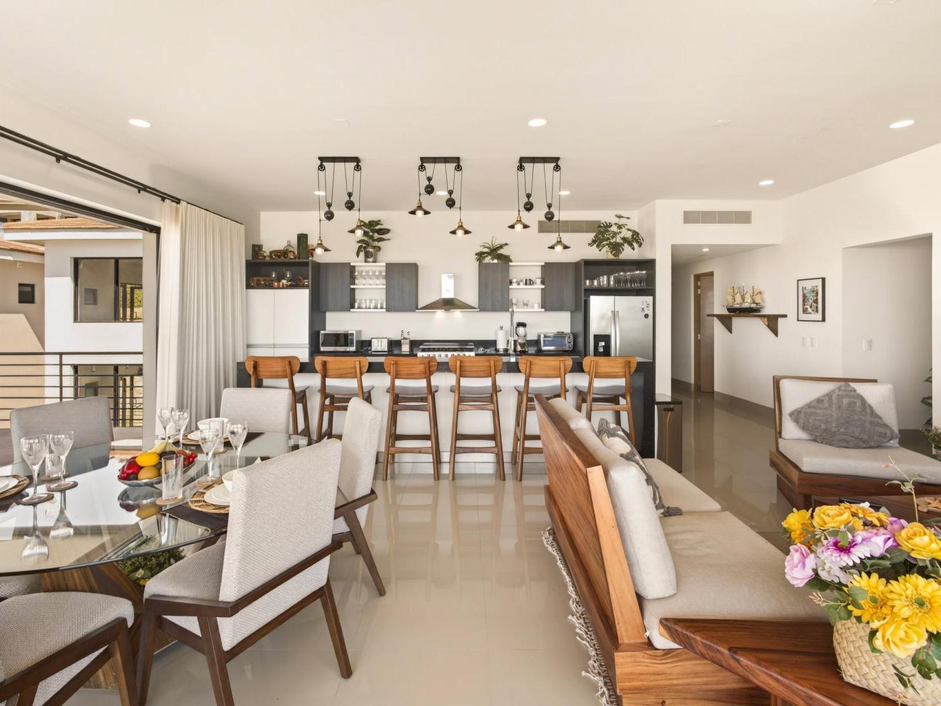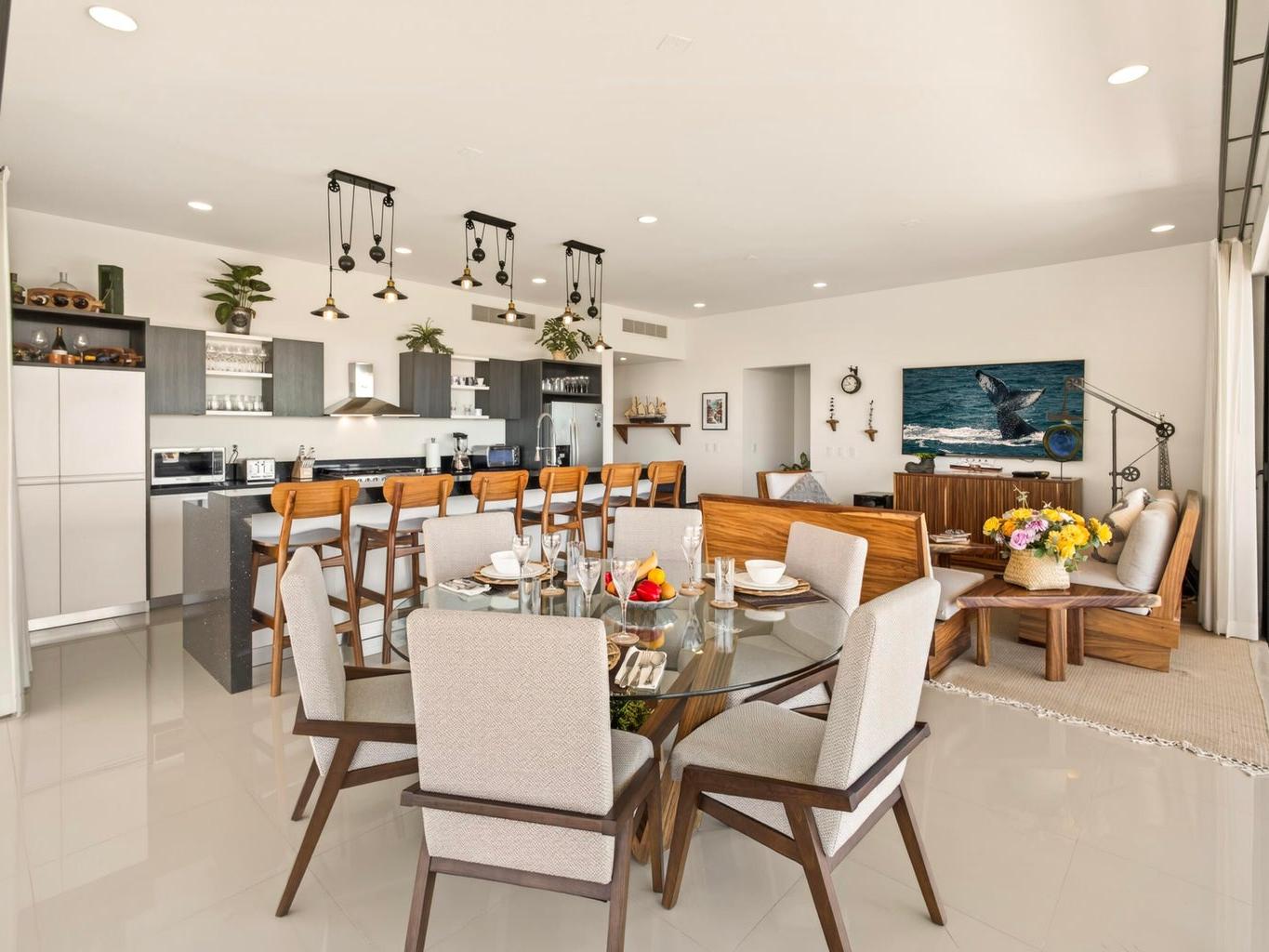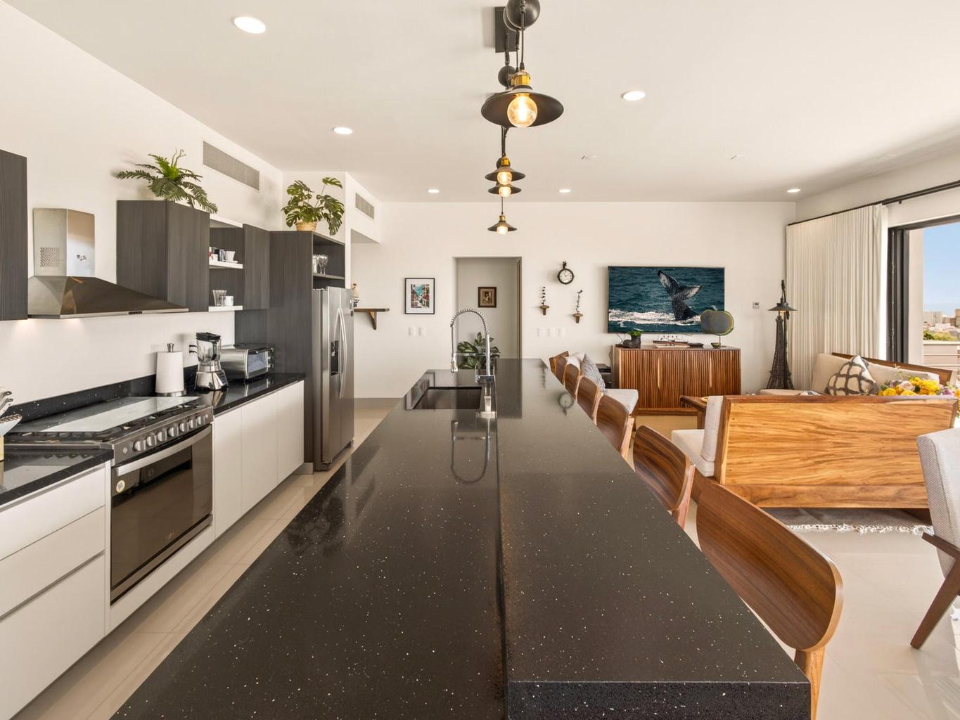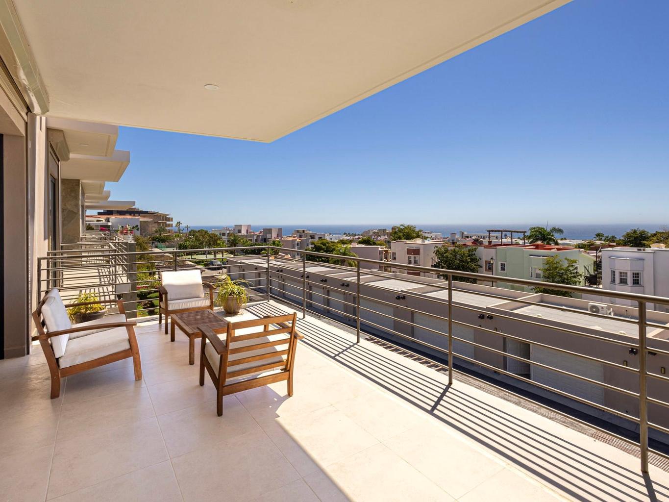 Perched atop Tramonti, this exceptional 3BR | 4BA penthouse showcases the best floorplan in the community, designed for seamless luxury living. A rare 270° open-concept layout floods the residence with natural light, highlighting panoramic ocean views and iconic vistas of Land's End from both the living area and primary suite. Expansive terraces blur indoor-outdoor living, perfect for elevated entertaining. Enjoy direct interior access to your private rooftop oasis with jacuzzi, lounge, and BBQ. Owners also enjoy exclusive access to Quivira's world-class amenities, including golf, beach club, and resort privileges--elevating this residence into a true Cabo lifestyle investment.