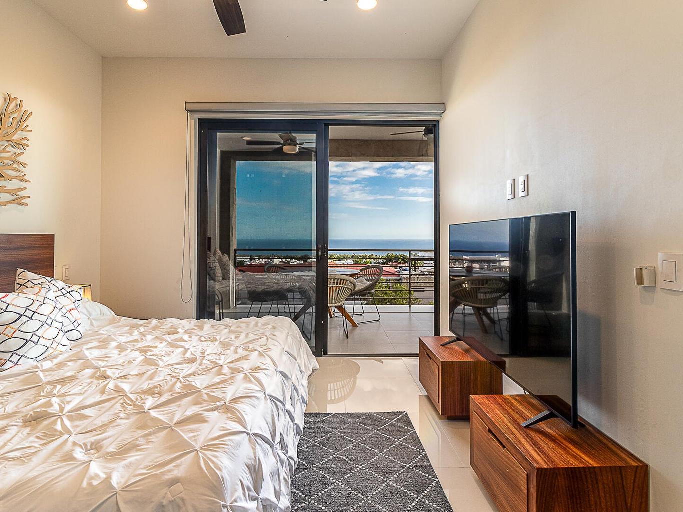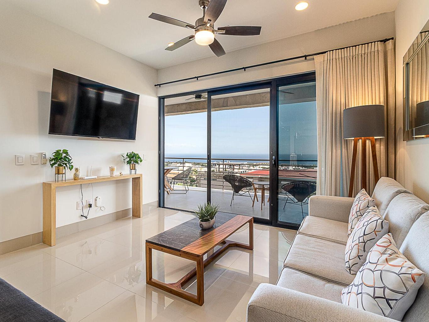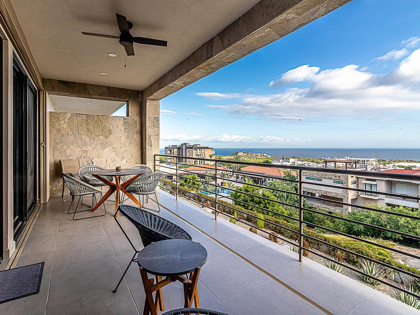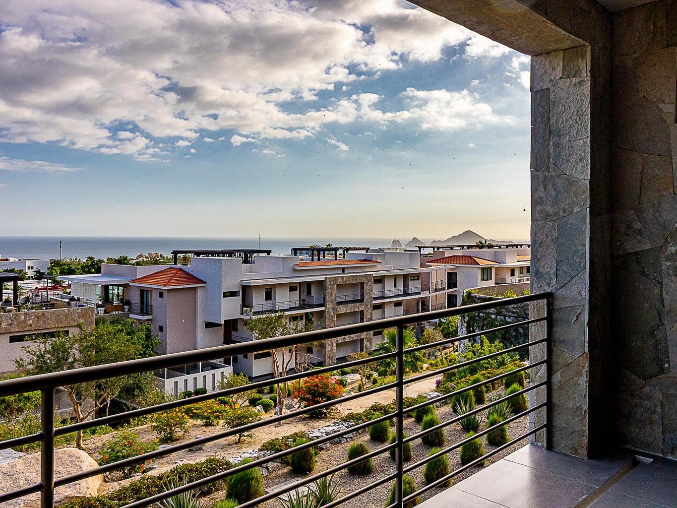 Panoramic beauty at Tramonti Los Cabos, one of the most desirable residential communities along the Cabo Corridor. This furnished two-bedroom, two-bathroom condo offers stunning ocean views that stretch across the Sea of Cortez, with a direct sightline to Land's End. A true highlight of this property is the community's peaceful and established environment there's no ongoing construction, allowing residents to enjoy the quiet surroundings and beautifully landscaped grounds. The development features resort-style amenities, including clubhouse with pool and gym, 24/7 gated security, lush gardens, and access to the exclusive Quivira Golf Club and Beach Club.