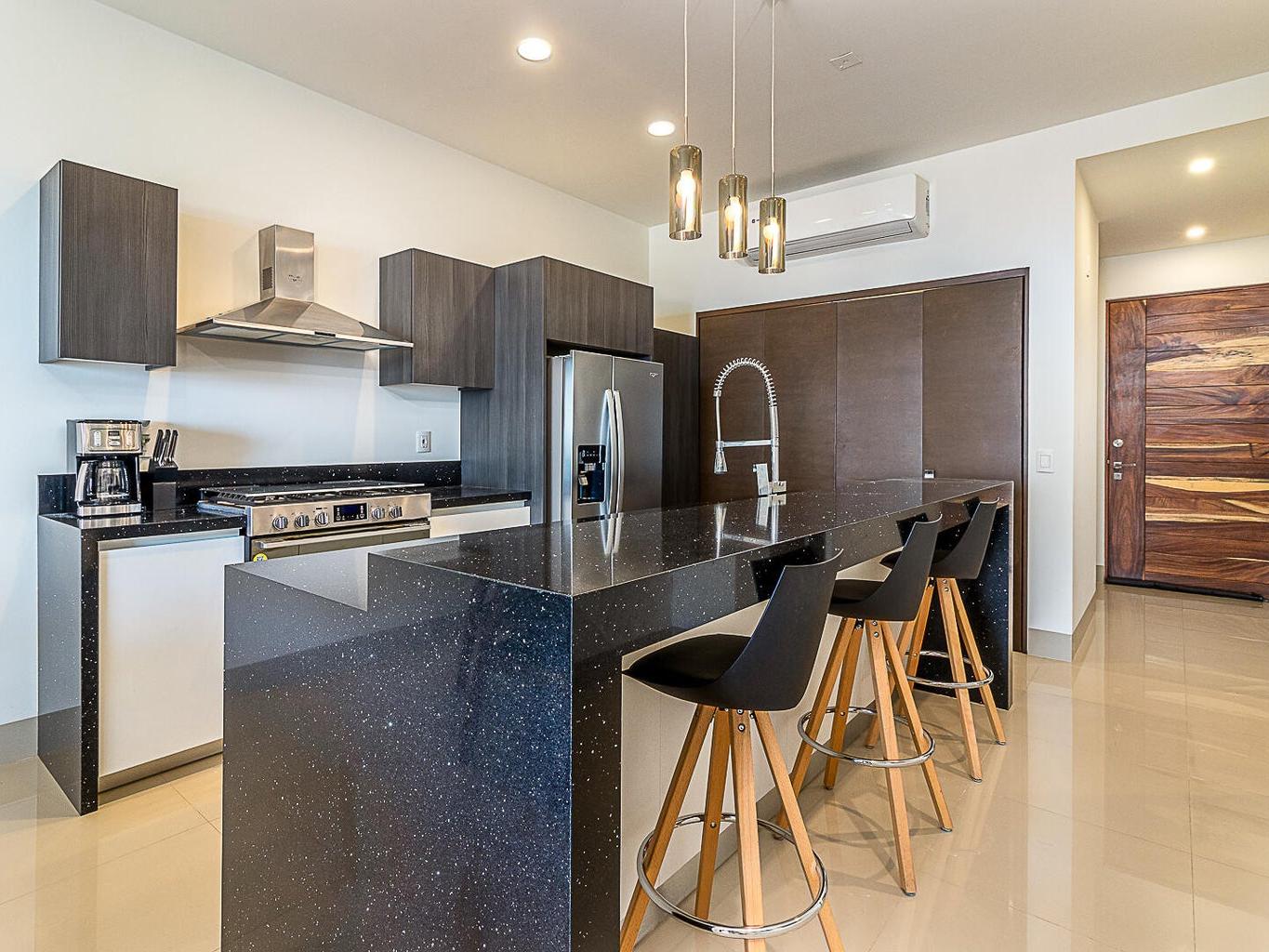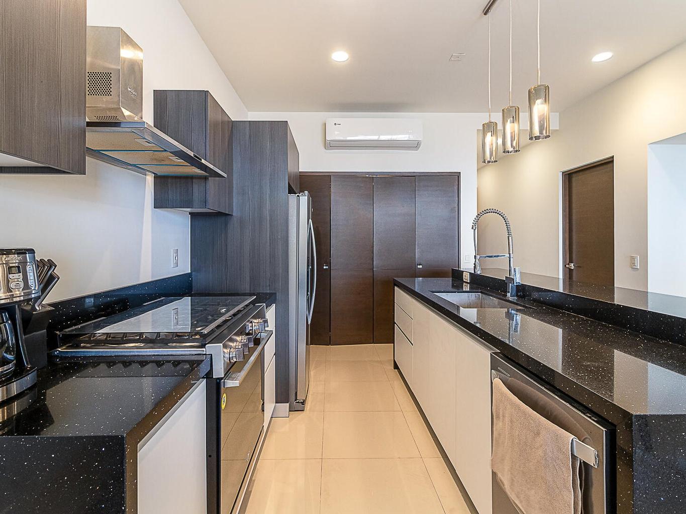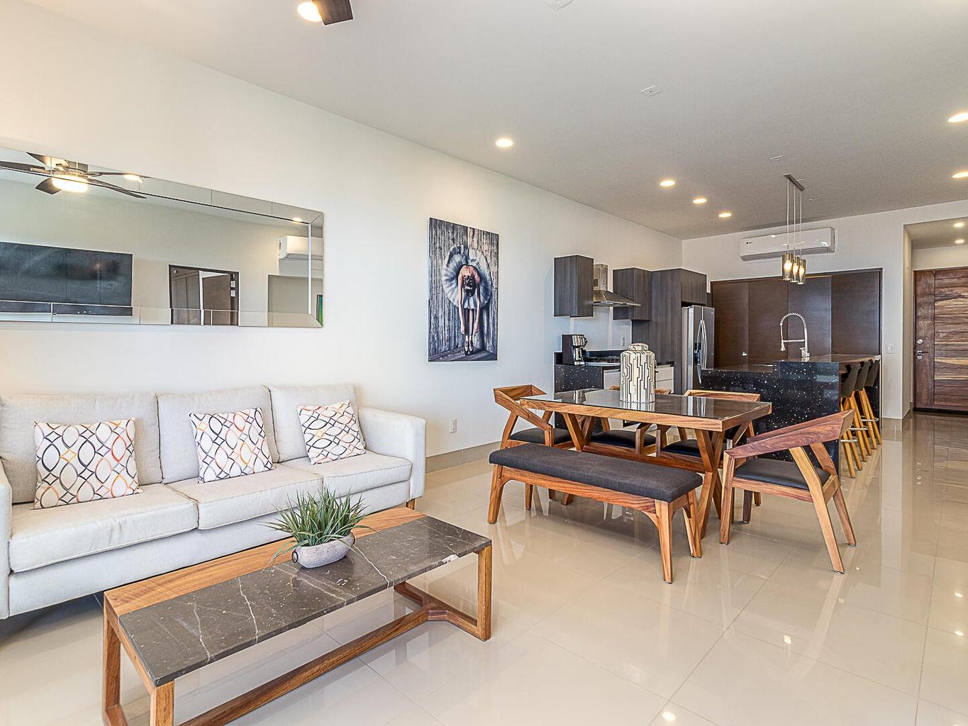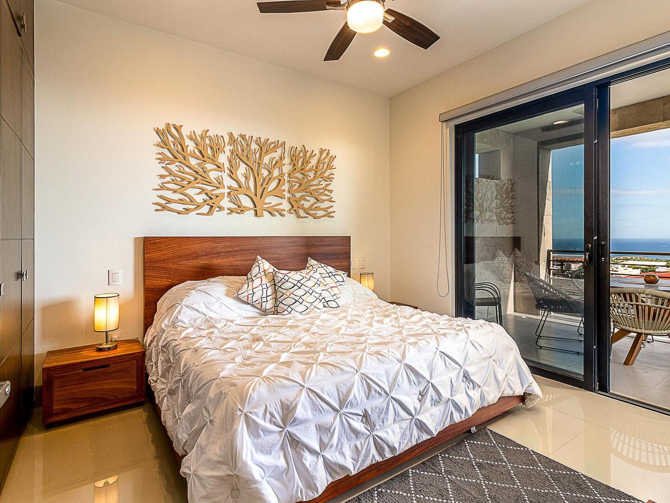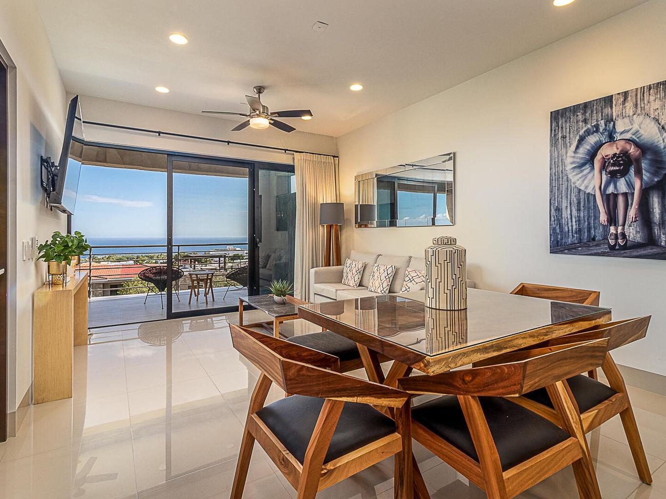 Panoramic beauty at Tramonti Los Cabos, one of the most desirable residential communities along the Cabo Corridor. This furnished two-bedroom, two-bathroom condo offers stunning ocean views that stretch across the Sea of Cortez, with a direct sightline to Land's End. A true highlight of this property is the community's peaceful and established environment there's no ongoing construction, allowing residents to enjoy the quiet surroundings and beautifully landscaped grounds. The development features resort-style amenities, including clubhouse with pool and gym, 24/7 gated security, lush gardens, and access to the exclusive Quivira Golf Club and Beach Club.