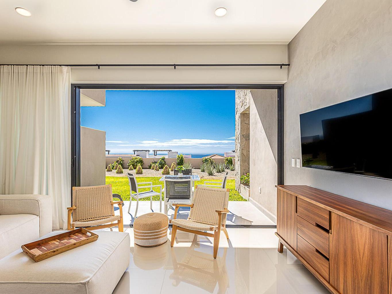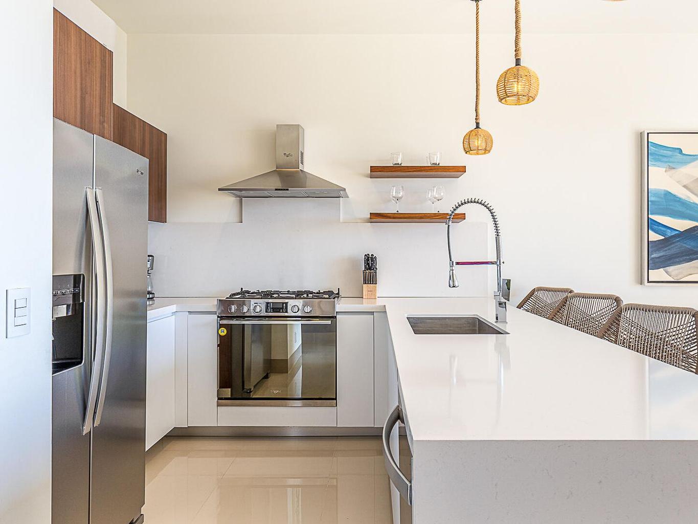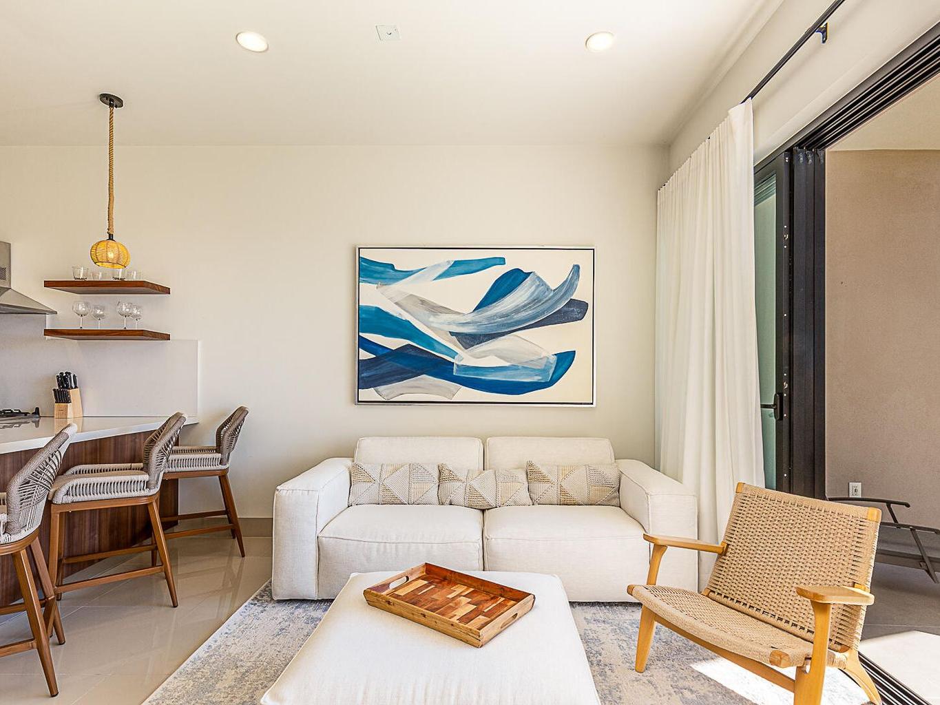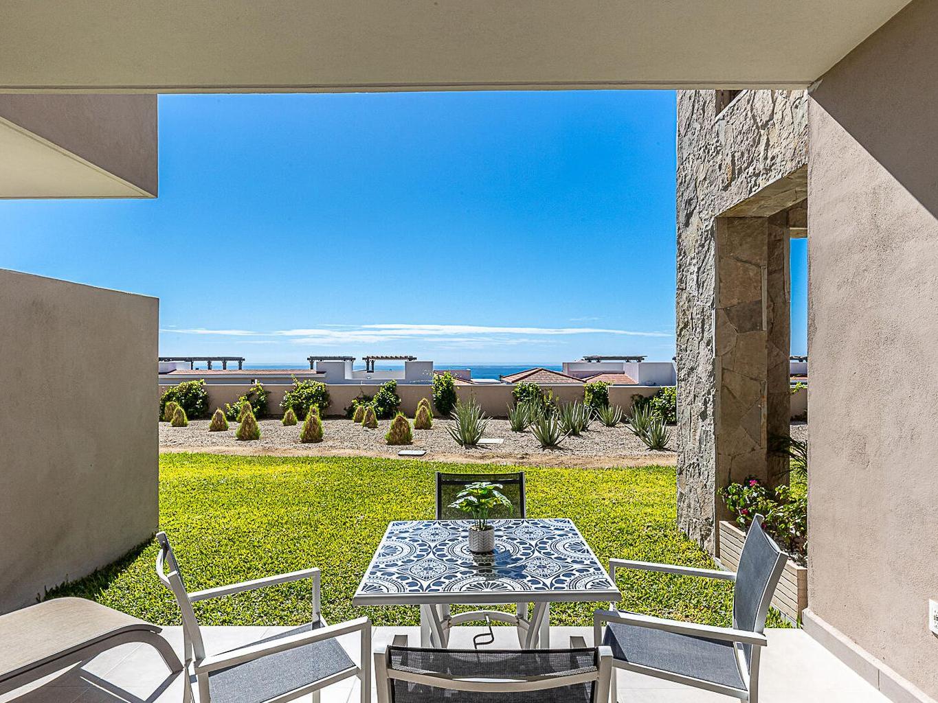 This pentgarden condo offers ocean views and the comfort of a private terrace with privacy walls on both sides, with direct access to the garden — perfect for kids or pets. The interior features modern décor with a spacious open‑concept living area, a fully equipped kitchen with granite breakfast bar, stainless‑steel appliances, and a convenient laundry closet. The bedroom includes a generous closet, and the full bathroom has separate access from the bedroom, making it convenient for guests. The shower features an upgraded system with high‑pressure jets, creating a spa‑like experience. The condo is delivered fully furnished in a contemporary and elegant style.