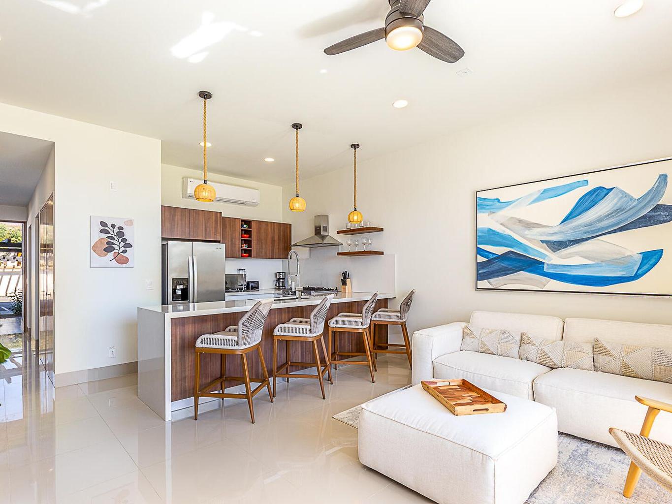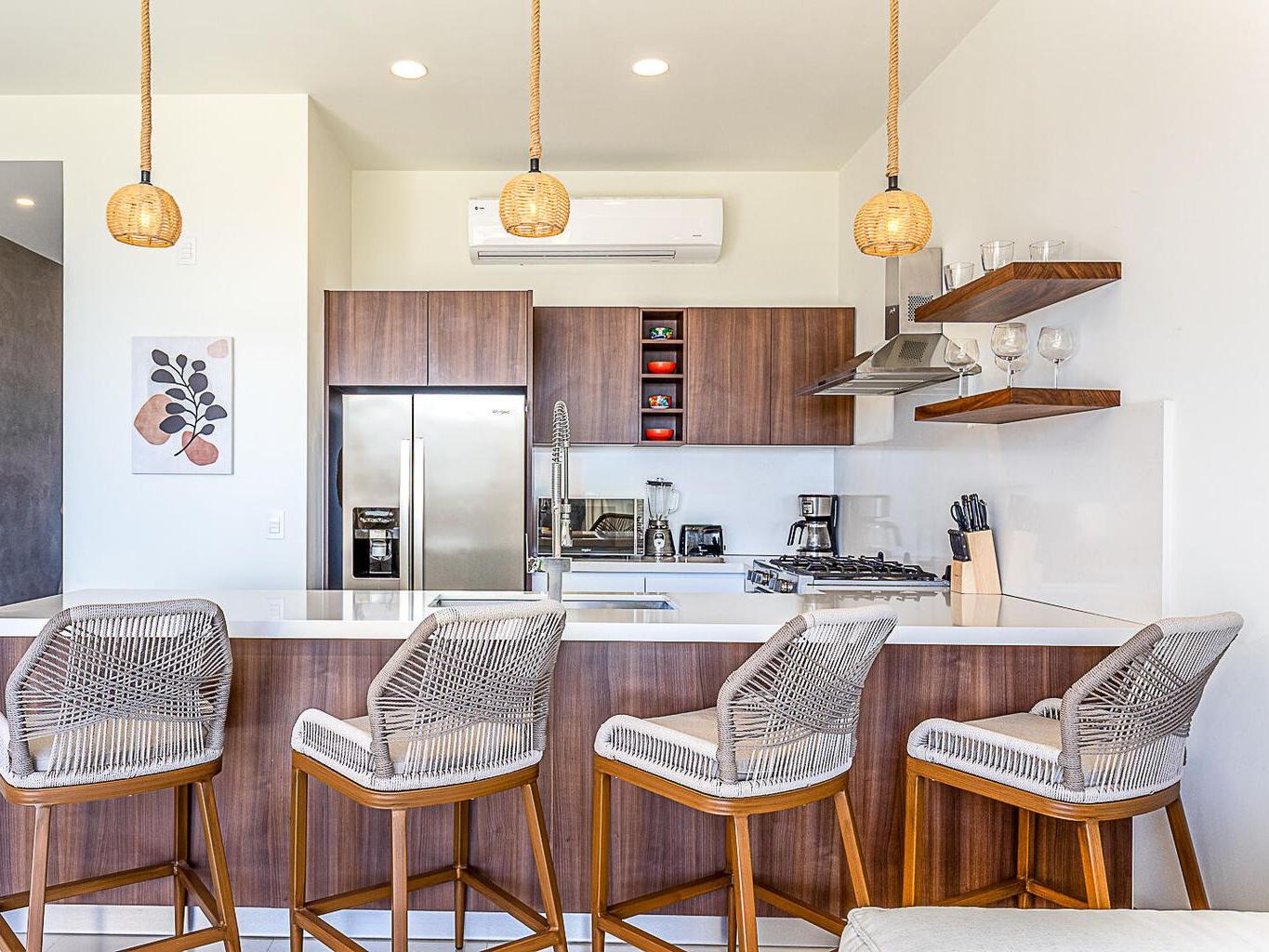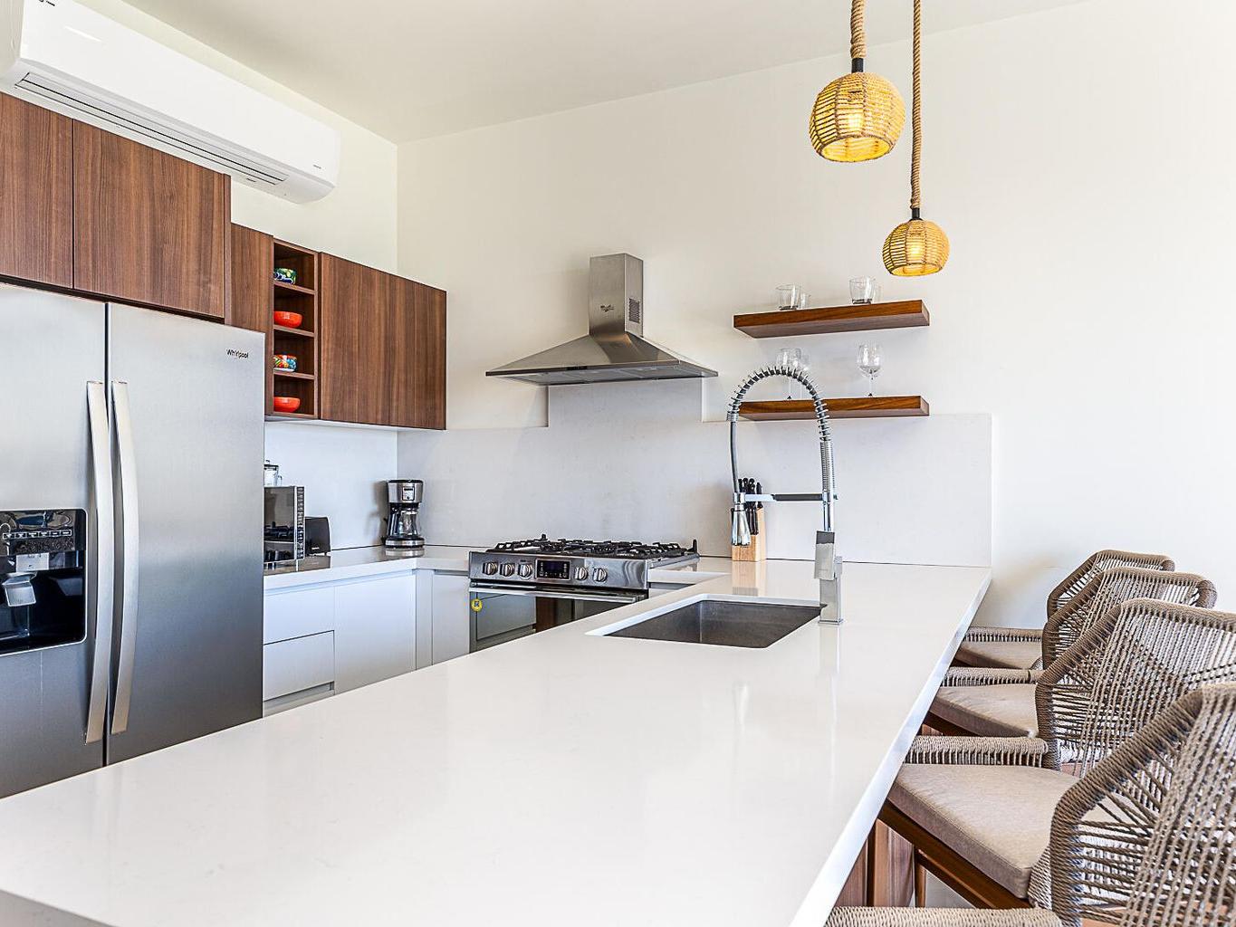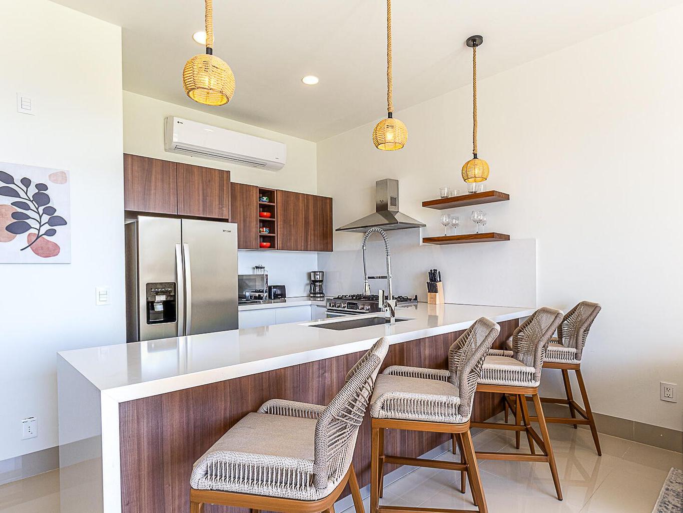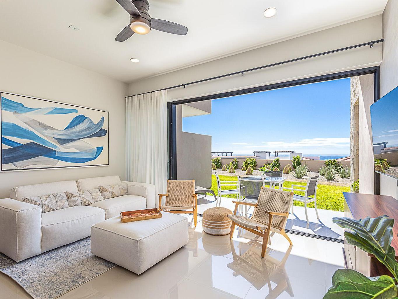 This pentgarden condo offers ocean views and the comfort of a private terrace with privacy walls on both sides, with direct access to the garden — perfect for kids or pets. The interior features modern décor with a spacious open‑concept living area, a fully equipped kitchen with granite breakfast bar, stainless‑steel appliances, and a convenient laundry closet. The bedroom includes a generous closet, and the full bathroom has separate access from the bedroom, making it convenient for guests. The shower features an upgraded system with high‑pressure jets, creating a spa‑like experience. The condo is delivered fully furnished in a contemporary and elegant style.
