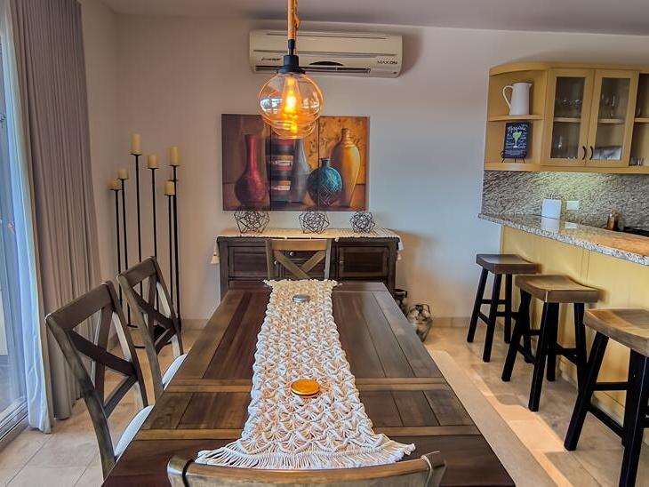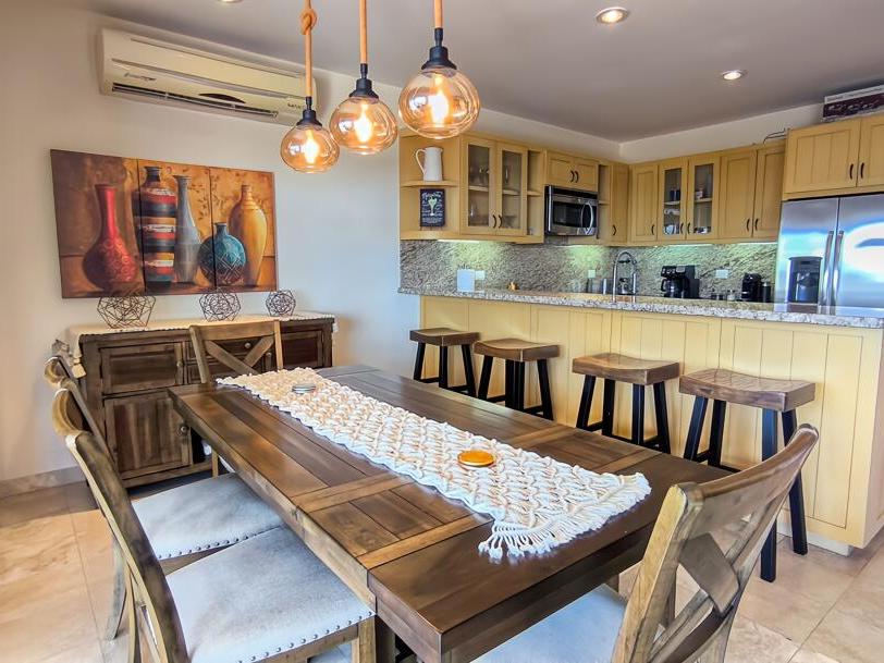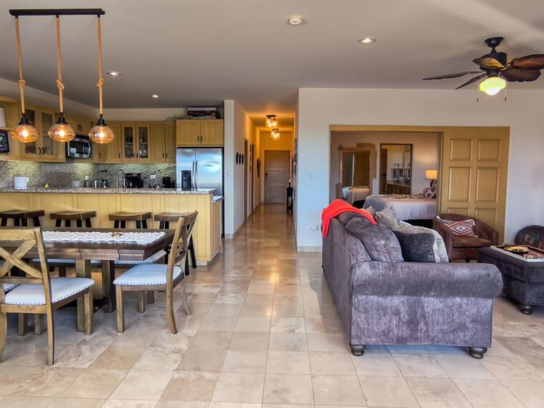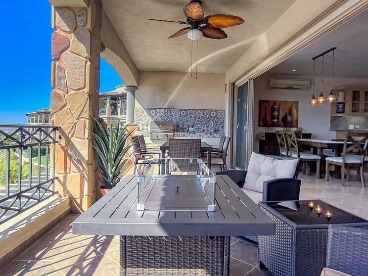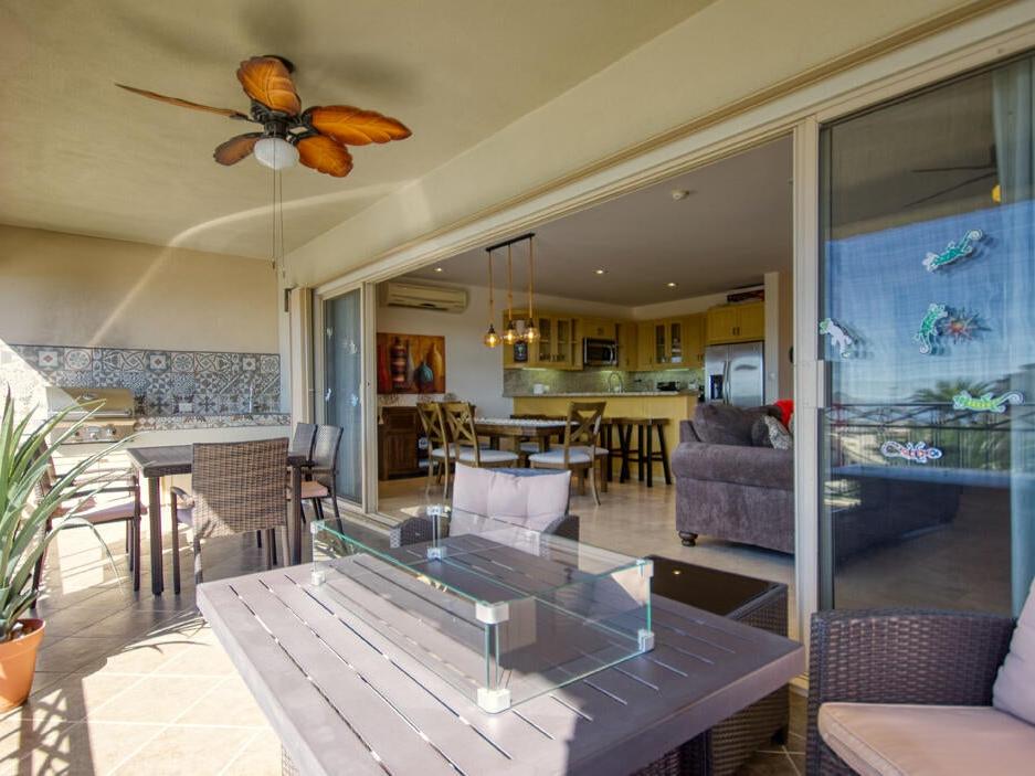 PRICED TO SELL!!! Beautiful TURN KEY Condo, Ocean Views of the Sea of Cortez with Spectacular Sunrises & Sunsets! Situated in Ventanas Phase 2, this 2-bed, 2-bath condo comes tastefully decorated with a smart layout. The building with elevator for added convenience allows easy access to all. Features elegant travertine marble floors, granite countertops & backsplash in the kitchen, custom alder wood cabinetry, stainless steel appliances, and an outdoor BBQ area. Steps away from luxurious community amenities, include gym, 2 pools, and hot tub, fire pit, and stunning views of the Sea of Cortez. Don't miss this opportunity for Cabo Living, Vaction or Long Term rentals. HOA - $3500 Pesos,