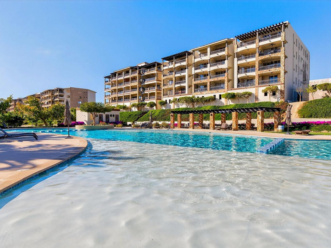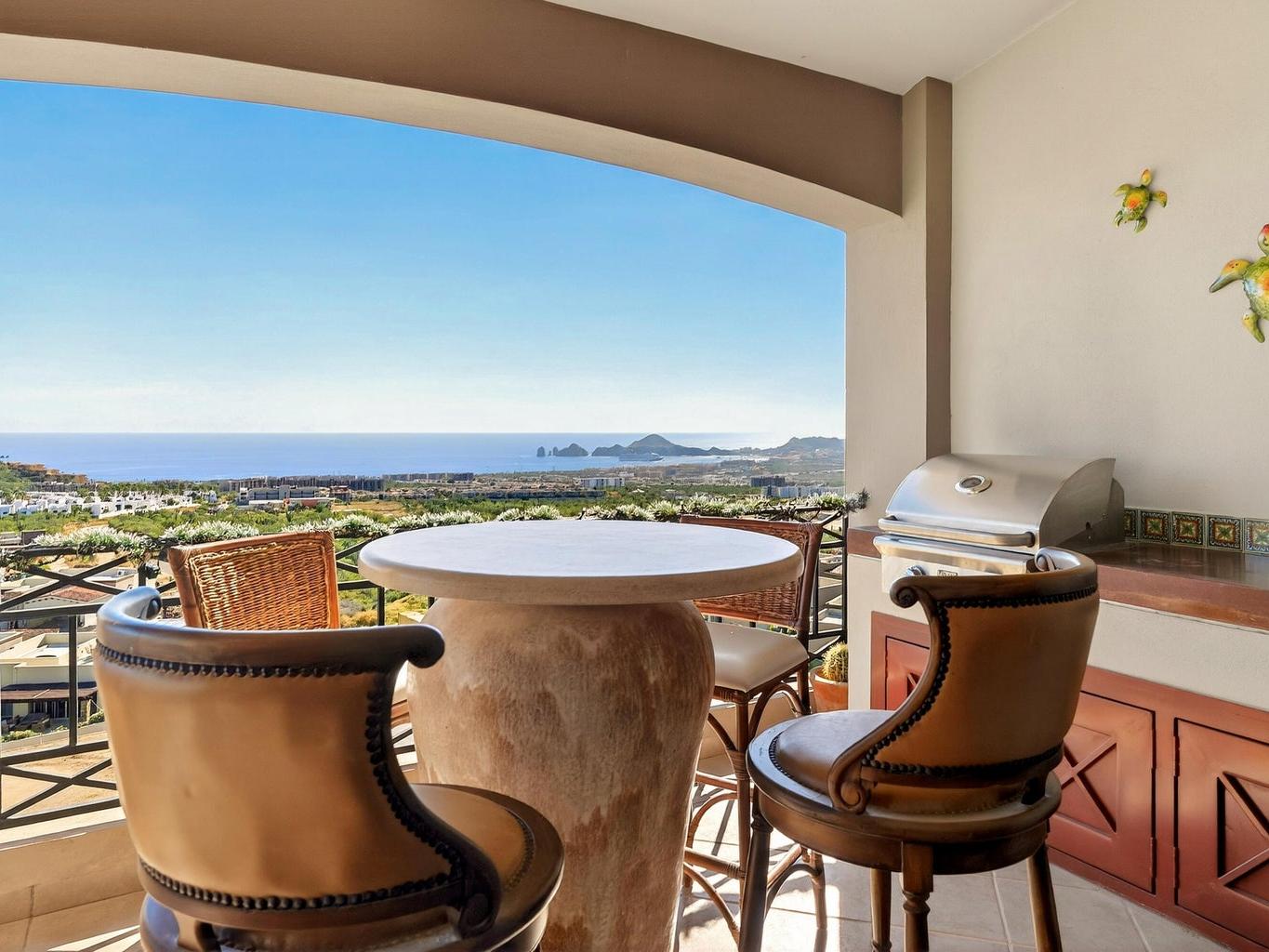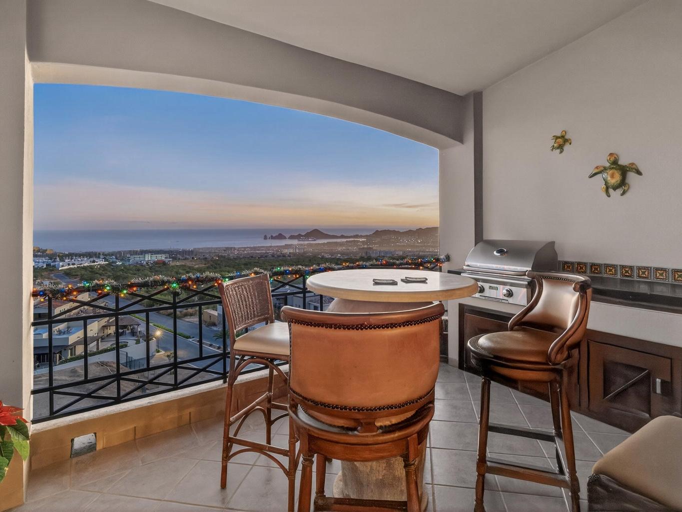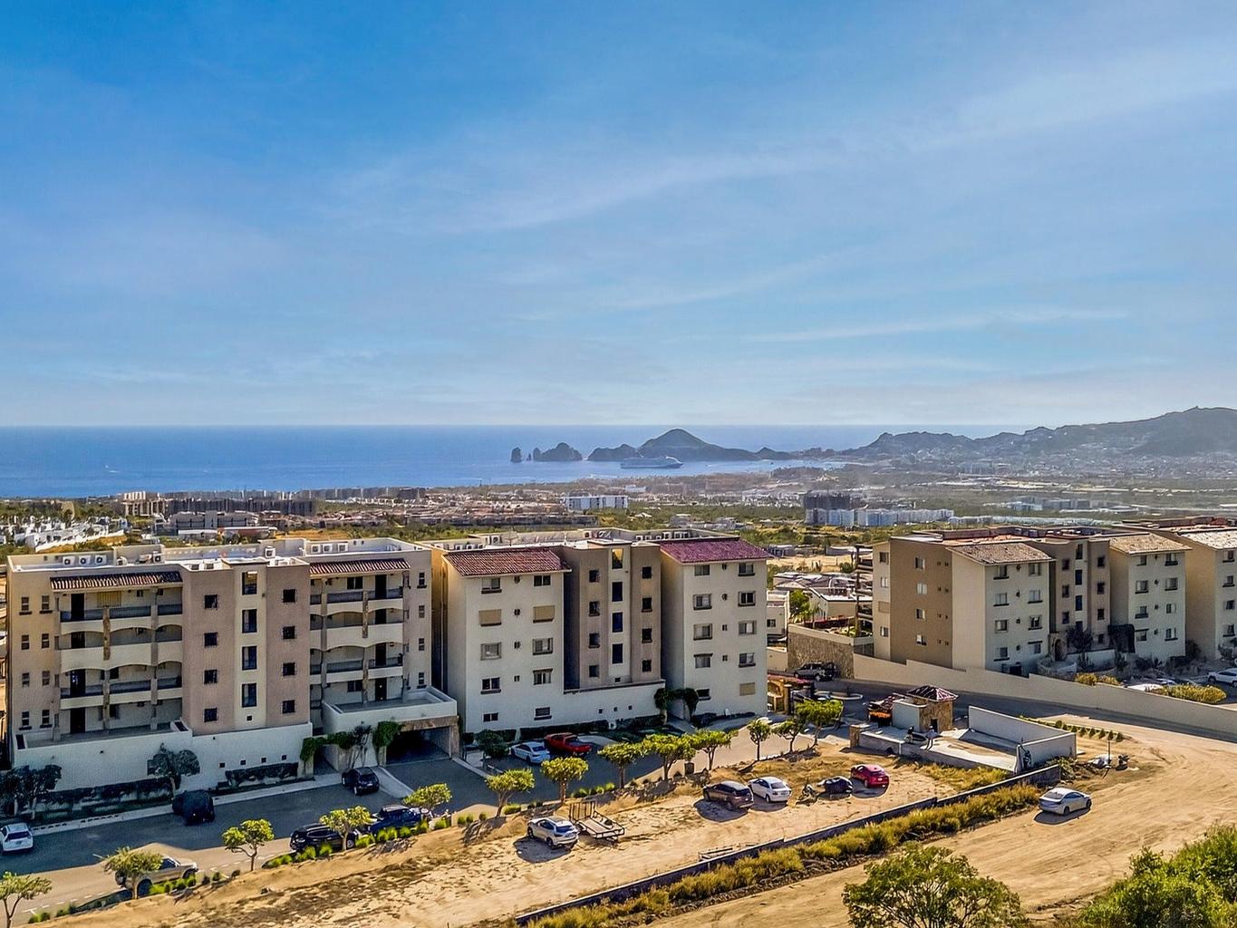 Amazing Turn Key Penthouse with Breathtaking Ocean Views! This 2 bedroom, 2 bathroom, 1,450 sqft condo in Ventanas Phase 3B faces the Cabo San Lucas Bay straight on, allowing for the most incredible city and sunset views. Offered with a huge 2 car underground parking area that can easily be converted into a garage, it comes with a custom made metal storage. Other amazing features included are: outdoor BBQ setup with sink and antirust light metal cabinets, automated hurricane shutters, water purification-filtration system, travertine marble flooring sinks and showers, double thick cabinets in kitchen, quartz counter tops and backsplash, queen and single hide a bed sofas and more. The community amenities include a pool, poolside social area, tennis court, walking trail, kid´s playground....