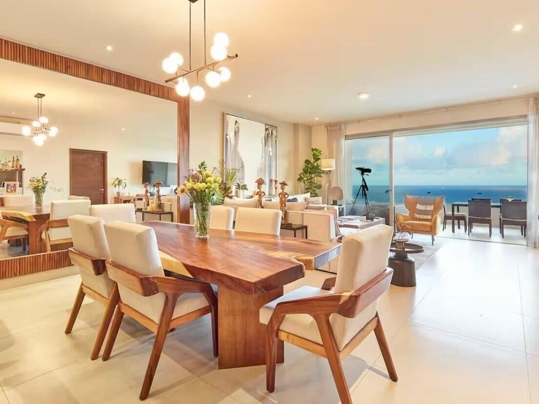 The rooftop space features built-in couches for ultimate relaxation, an eight-person round table for dining and entertaining, and a top-of-the-line porcelain bar for enjoying every sunset with a cocktail in hand.