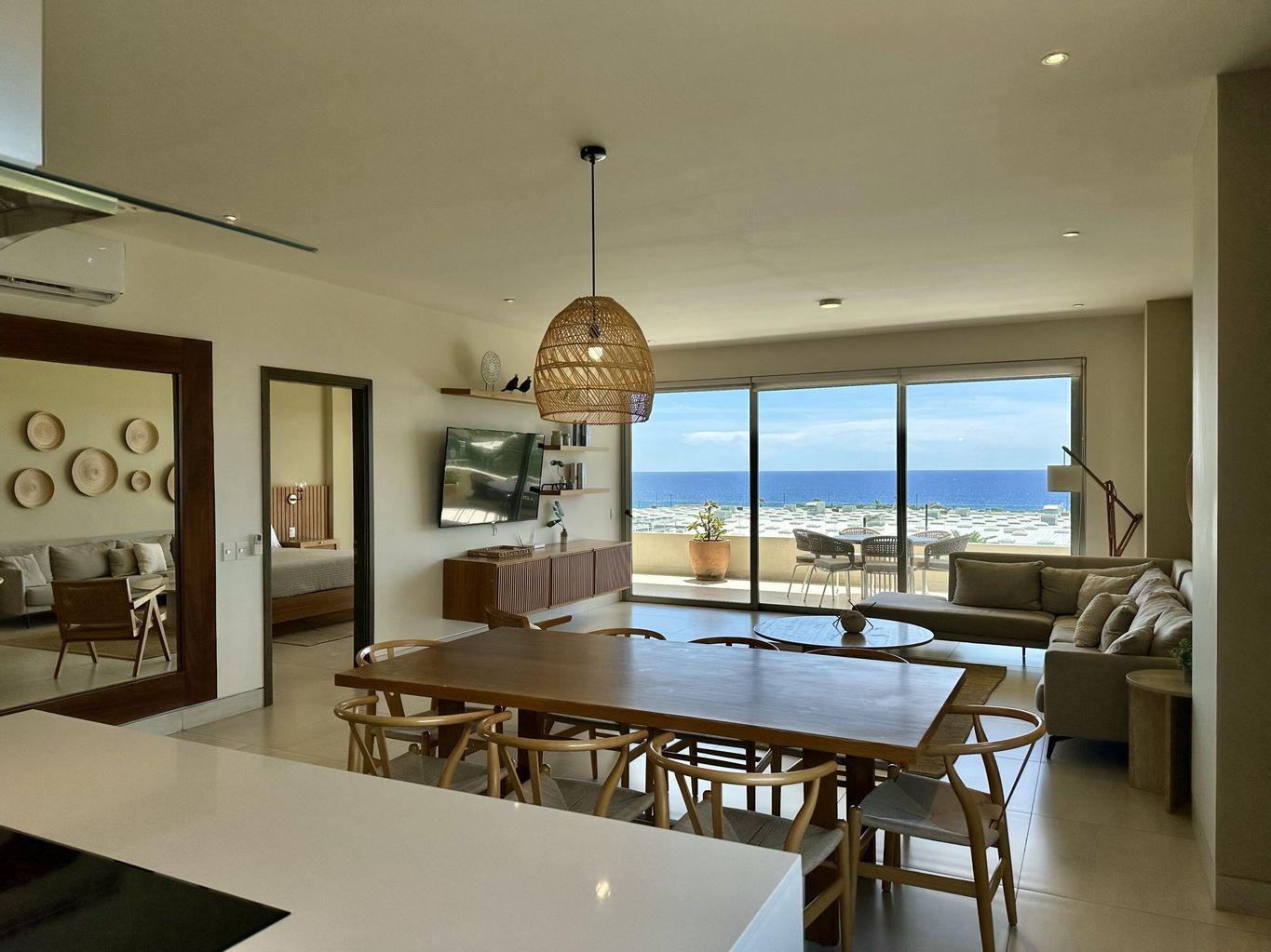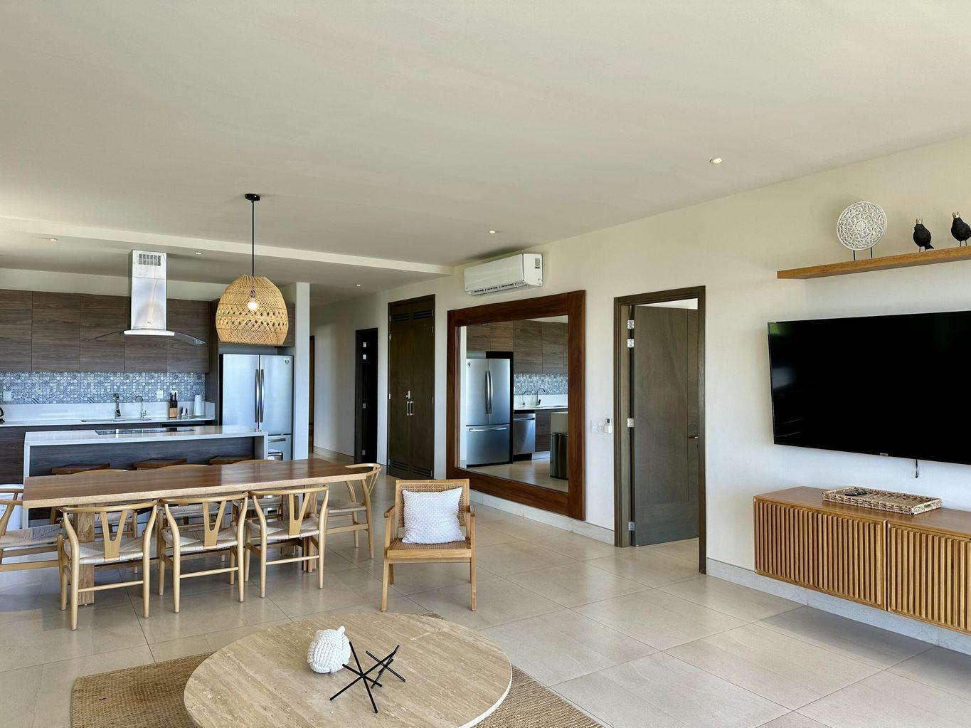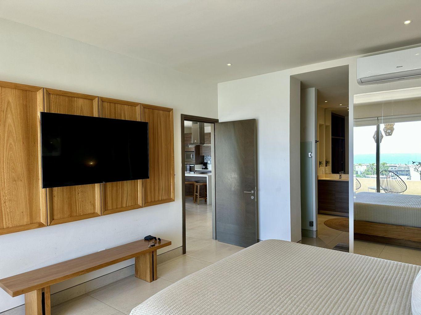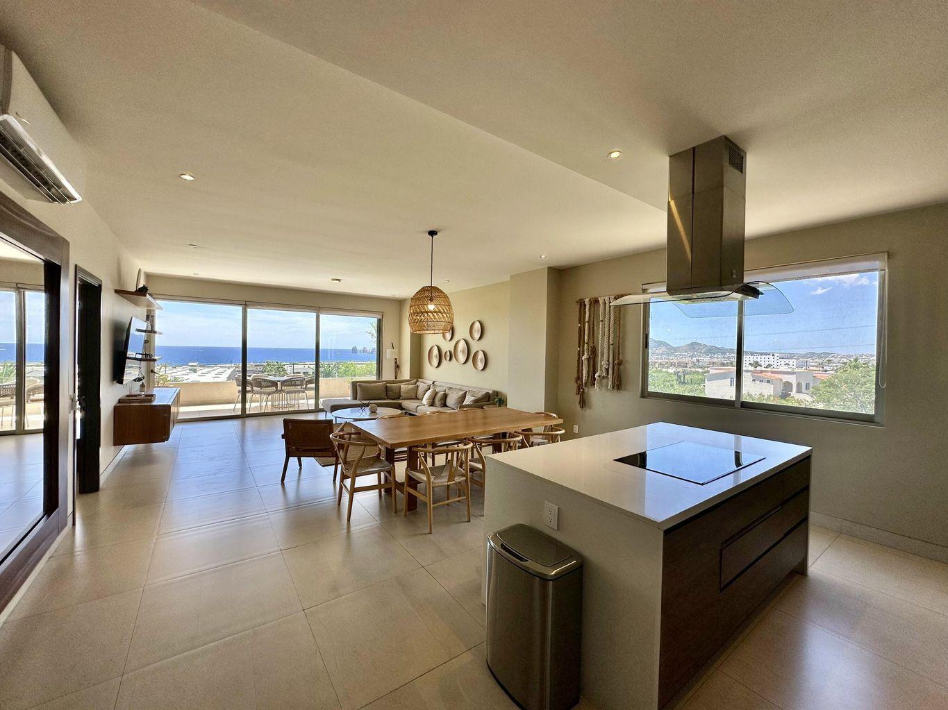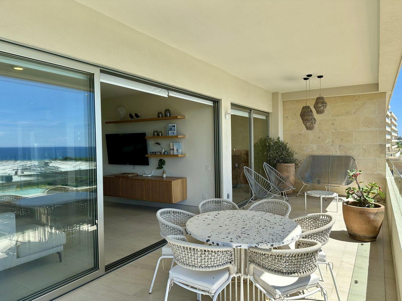 Turn-key ocean and city views corner unit in Vista Vela Phase II, fully furnished and equipped, ready to move in. This 3-bedroom, 3.5-bath condo offers an open layout, great natural light and a spacious terrace. Located on the 2nd floor, it provides privacy and comfort in one of the most desired gated communities in El Tezal. Enjoy heated pools, clubhouse, gym, padel & tennis courts and a games room. Perfect for full-time living or rental income. Priced at $12,000,000 MXN.
