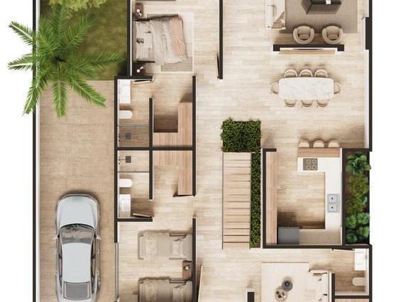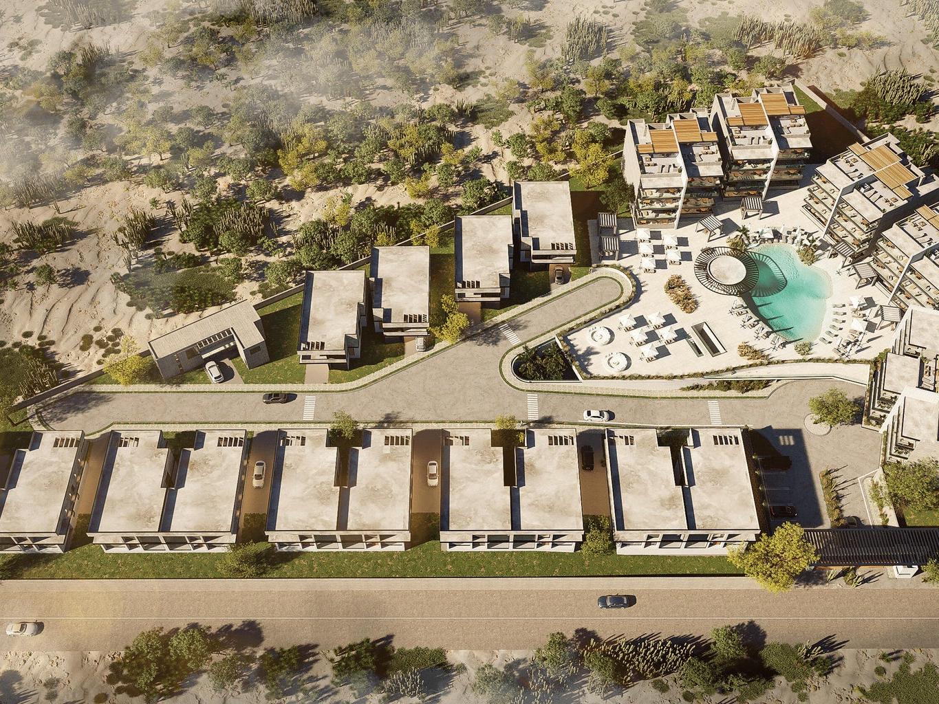Discover Aromi's 15 private homes in El Tezal's premium zone, Cabo San Lucas: design fused with Baja's beauty. 10 min from Medano Beach, spacious 4-bed homes on large lots with sunlit interiors, private gardens & patios for serene luxury. Amenities: resort-style beach pool, jacuzzi, gym, fire pit, pickleball, gardens, lounges, kids' area, 24/7 security. Elevate privacy & comfort. Descubre las 15 residencias privadas de Aromi en la zona premium de El Tezal, Cabo San Lucas: diseño fusionado con la belleza de Baja. A 10 min de Playa Medaño, amplias casas de 4 recámaras en lotes grandes con interiores luminosos, jardines & patios privados para lujo sereno. Amenidades: alberca estilo playa resort, jacuzzi, gym, fogata, pickleball, jardines, lounges, zona infantil, seguridad 24/7.