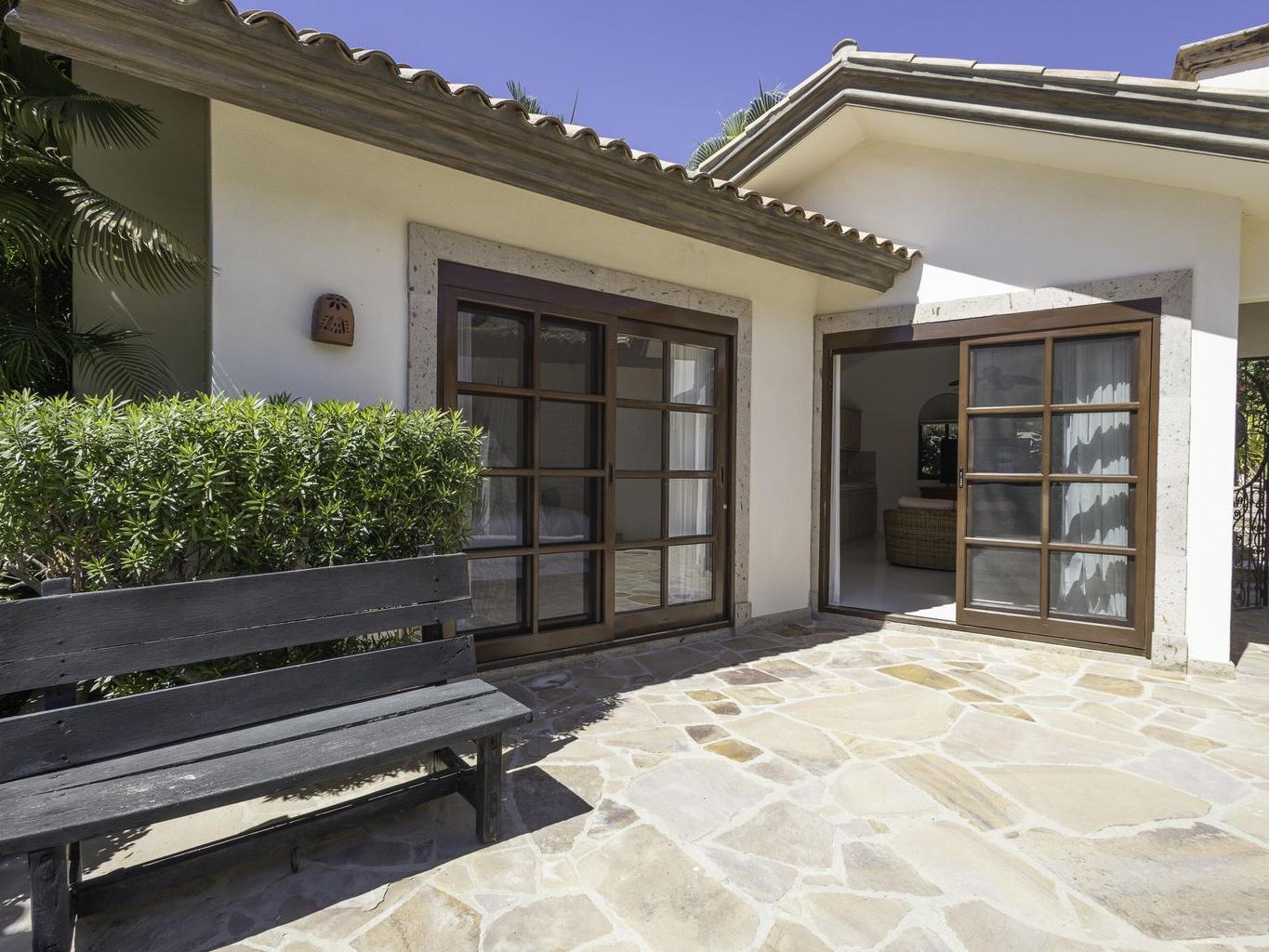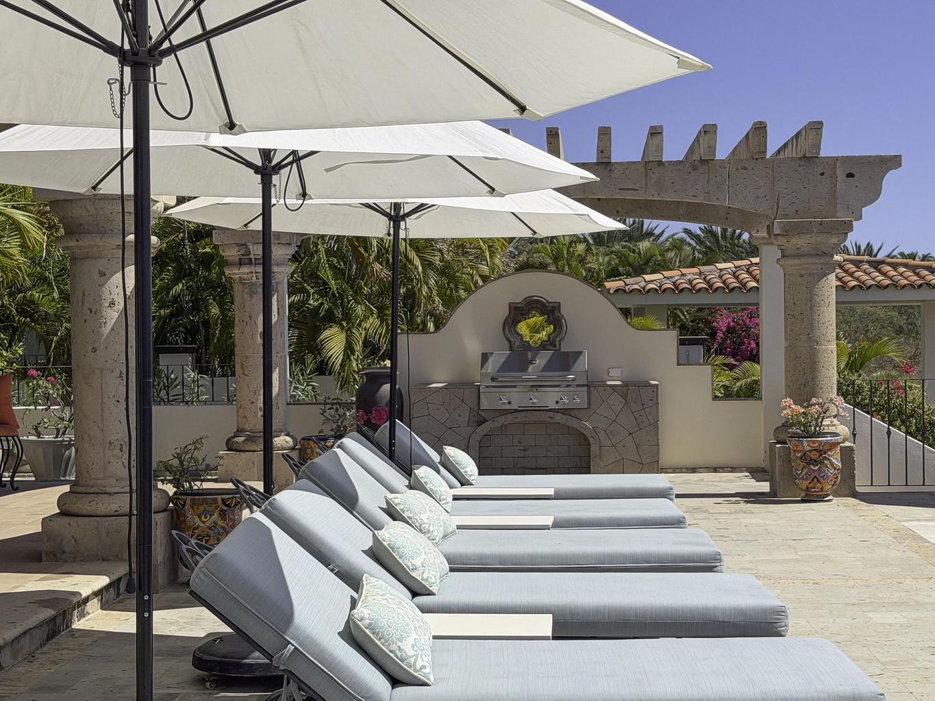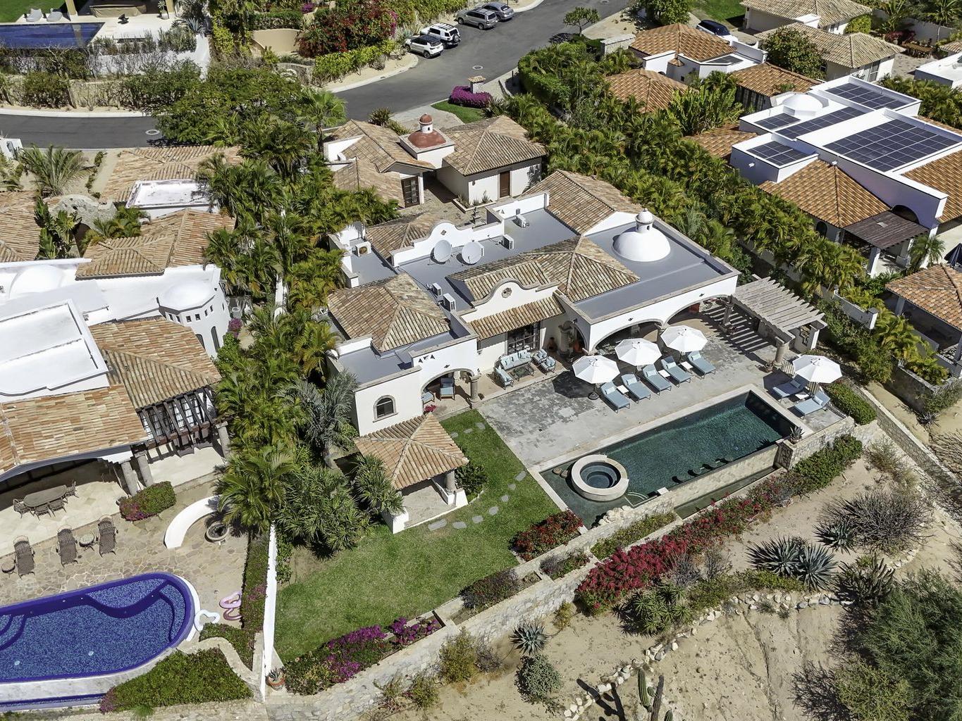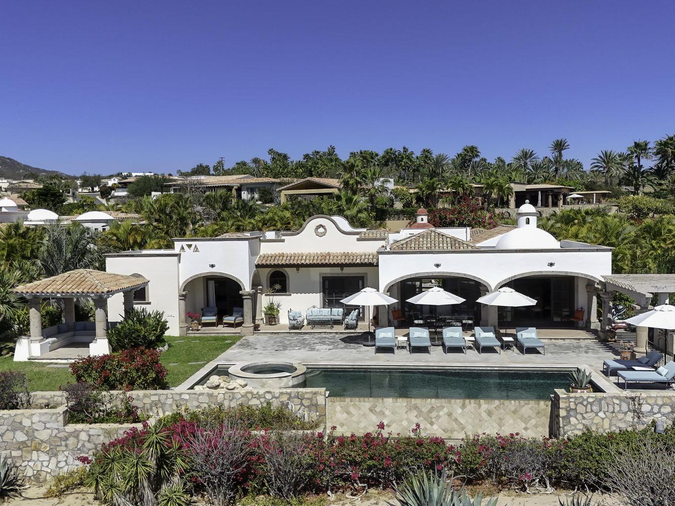 Be prepared to be wowed by the sweeping ocean views and peaceful living within the master-planned community of Cabo del Sol. Casa Brisas features a large backyard with stunning pool, swim-up seating, min-waterfall, and hot tub. The covered terrace, outdoor dining table, barbeque area, grassy lawn, and gazebo make for the perfect family retreat or five-star vacation rental. The expansive main house features a impressive great room with stone arches, wood beams and ceiling domes. Additional features include a beautiful inner courtyard with fountain, a detached 1-bedroom casita with kitchenette and living room, and a two-car garage for two large vehicles. 2023/2024 renovations include updated bathrooms with contemporary tile, countertops, and free-standing soaker-tub in the primary ensuite.
