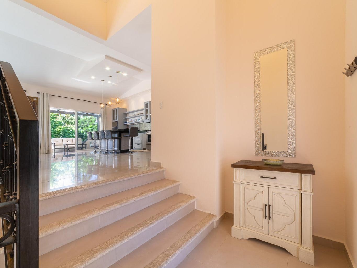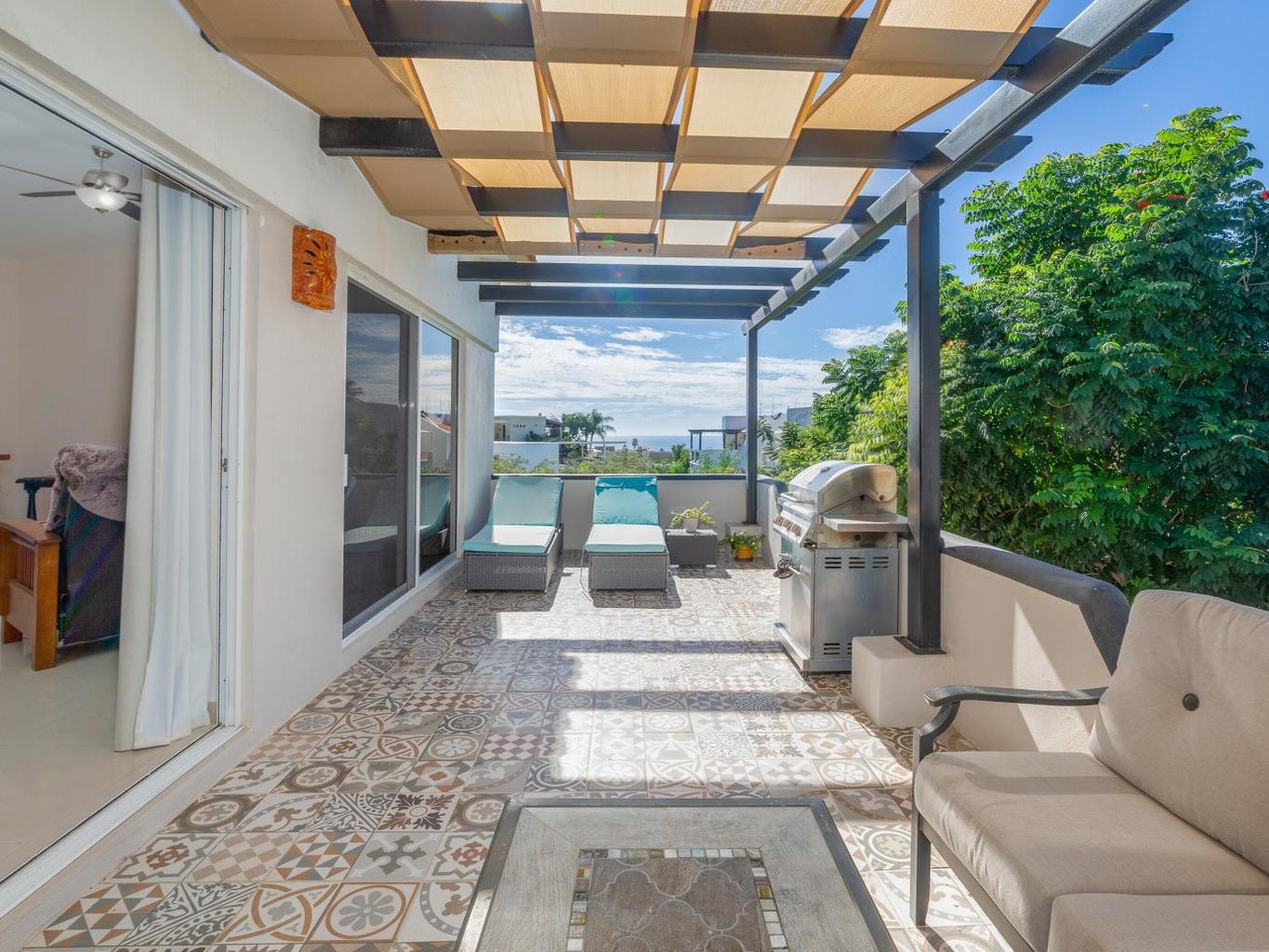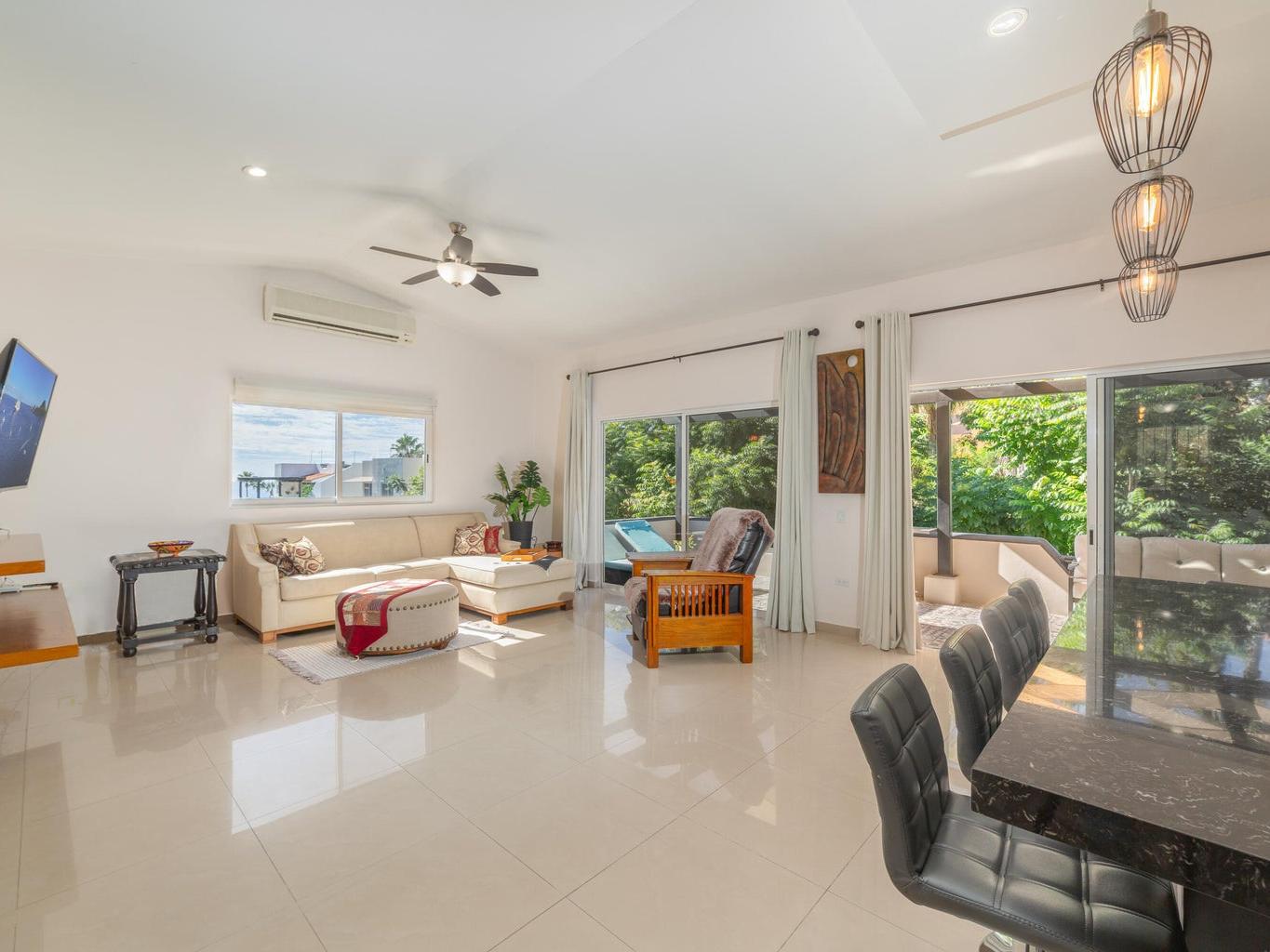 Located in the oceanside gated community of Cabo Bello, this home offers privacy, comfort, ocean views from the living room, and is the lowest priced home in the community. Surrounded by mature trees, the property features a bright open-concept floor plan with high ceilings, a new kitchen, and spacious living and dining areas. A large terrace provides the perfect space for outdoor dining and entertaining. Just a 7-minute walk to a swimmable beach and within walking distance to Fresco supermarket. Ideally located 10 minutes from downtown Cabo San Lucas . The backyard offers ample space to add a private pool or garden, making this an excellent full-time residence or vacation home.