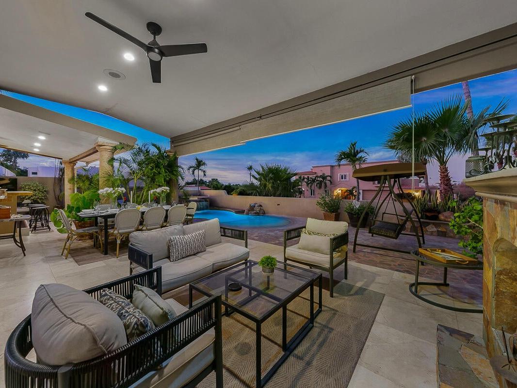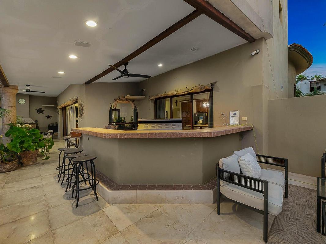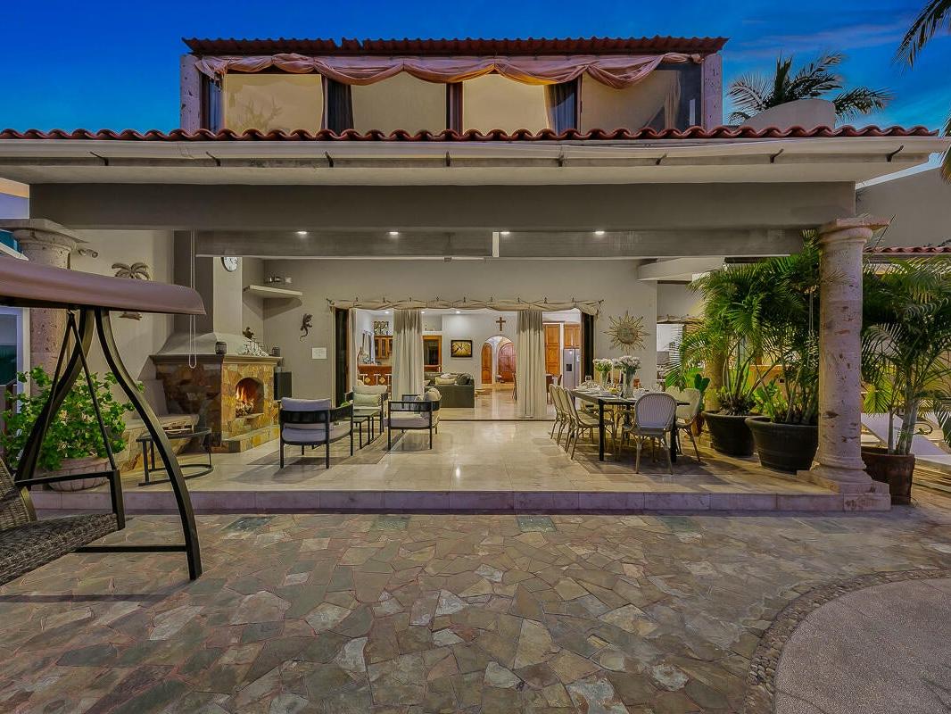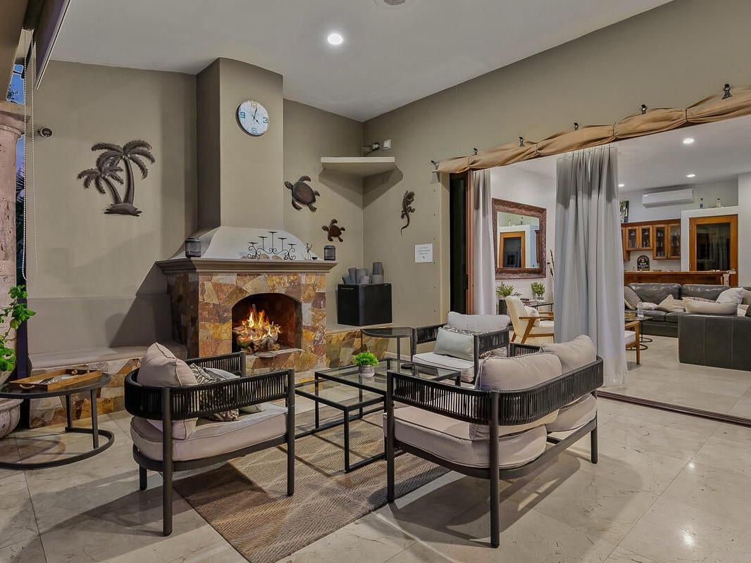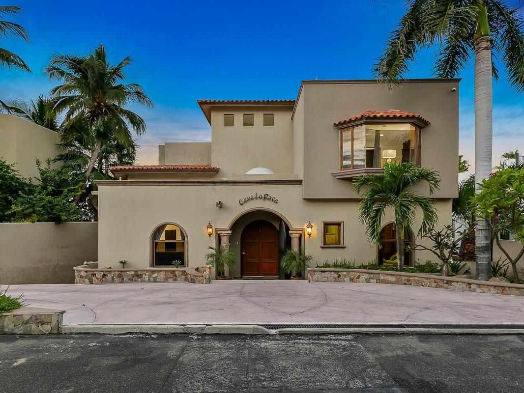 Welcome to Casa La Roca, a mini estate located in the secure, gated community of Cabo Bello, one of the few neighborhoods in Los Cabos with direct access to a swimmable beach. This spacious villa features open-concept living with abundant natural light and panoramic views of the Sea of Cortez and Land's End. Outdoor amenities include a private pool, hot tub, outdoor fireplace, bar with TV and sound system, built-in BBQ, and outdoor dining area. The rooftop deck offers stunning ocean and sunset views with lounge furnishings. Interior highlights include a large open floor plan, a private sunroom/office off the primary suite, and a dedicated office ideal for remote work. The home offers six bedrooms and is well suited for full-time living, vacation use, or rental income.