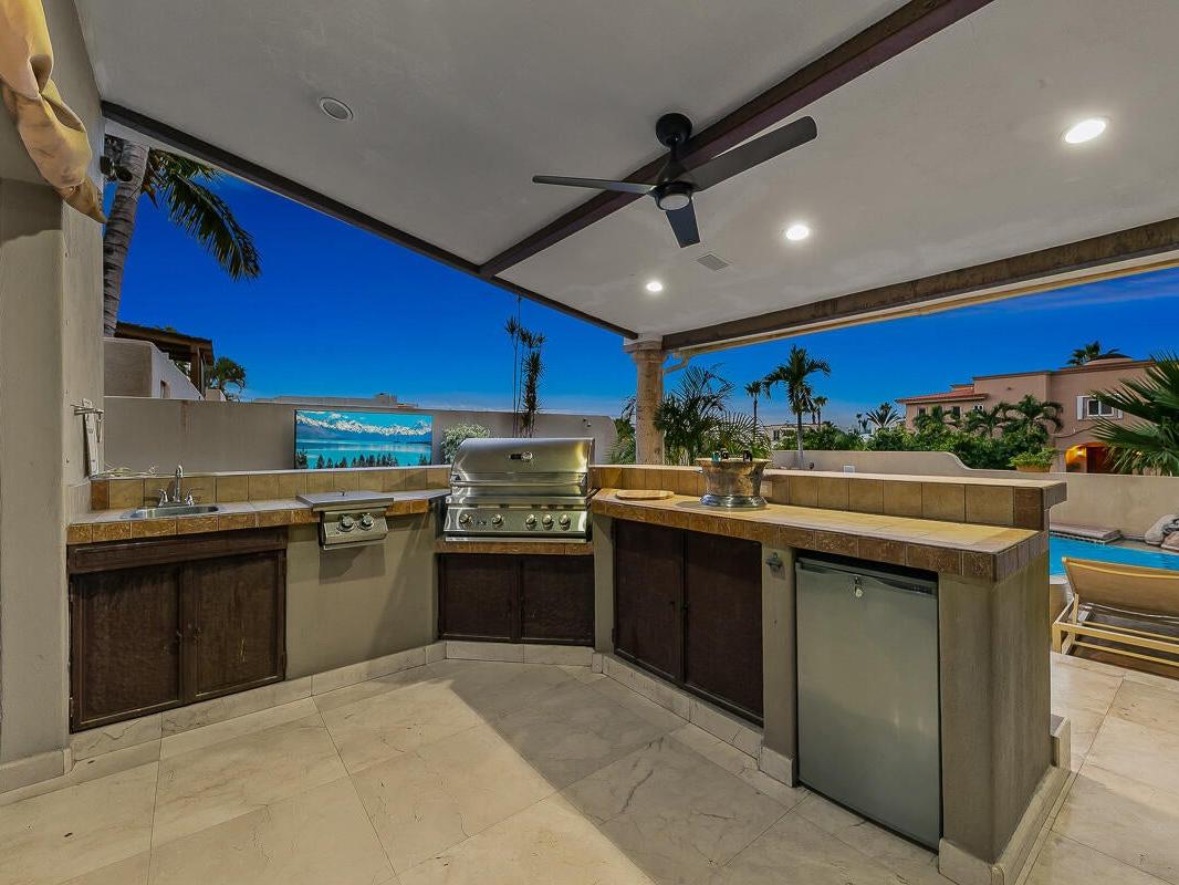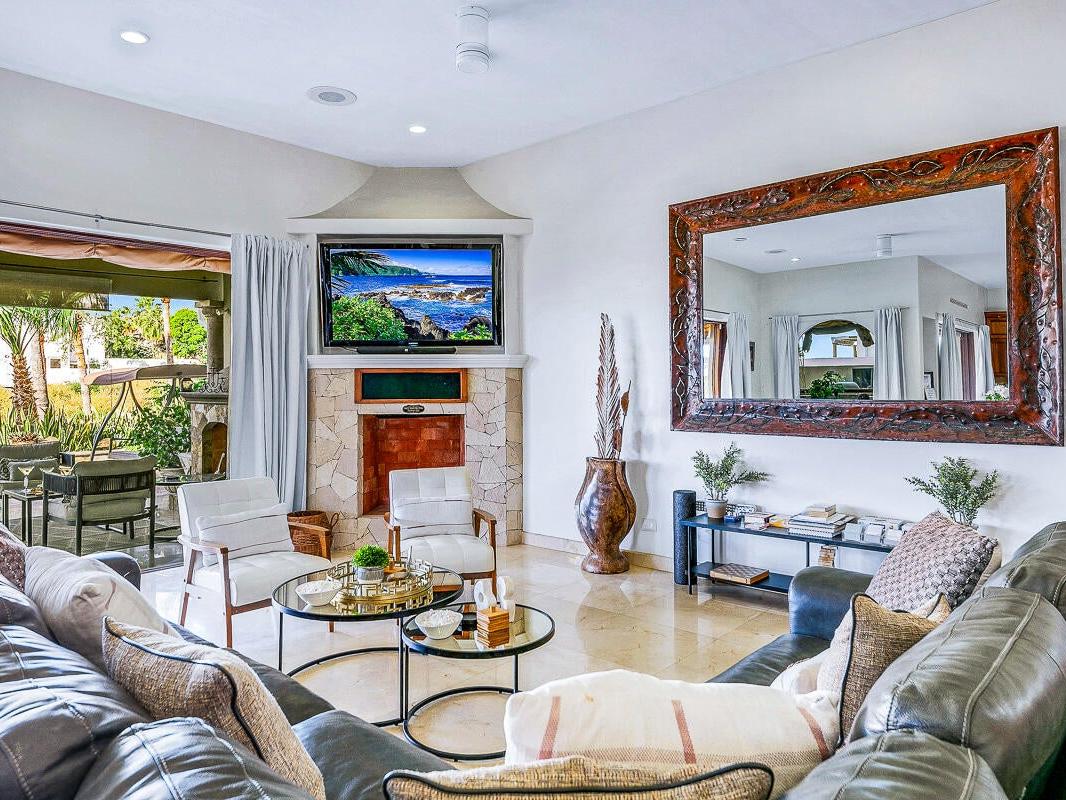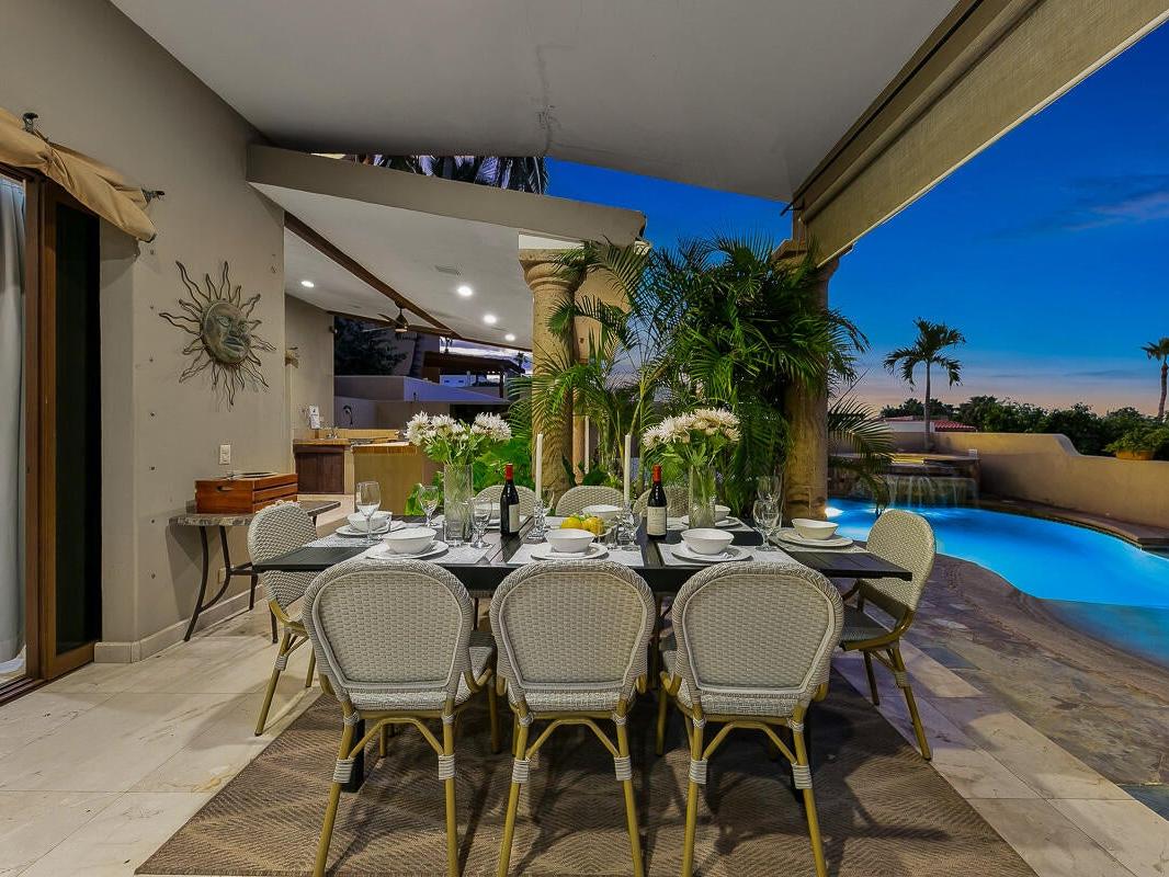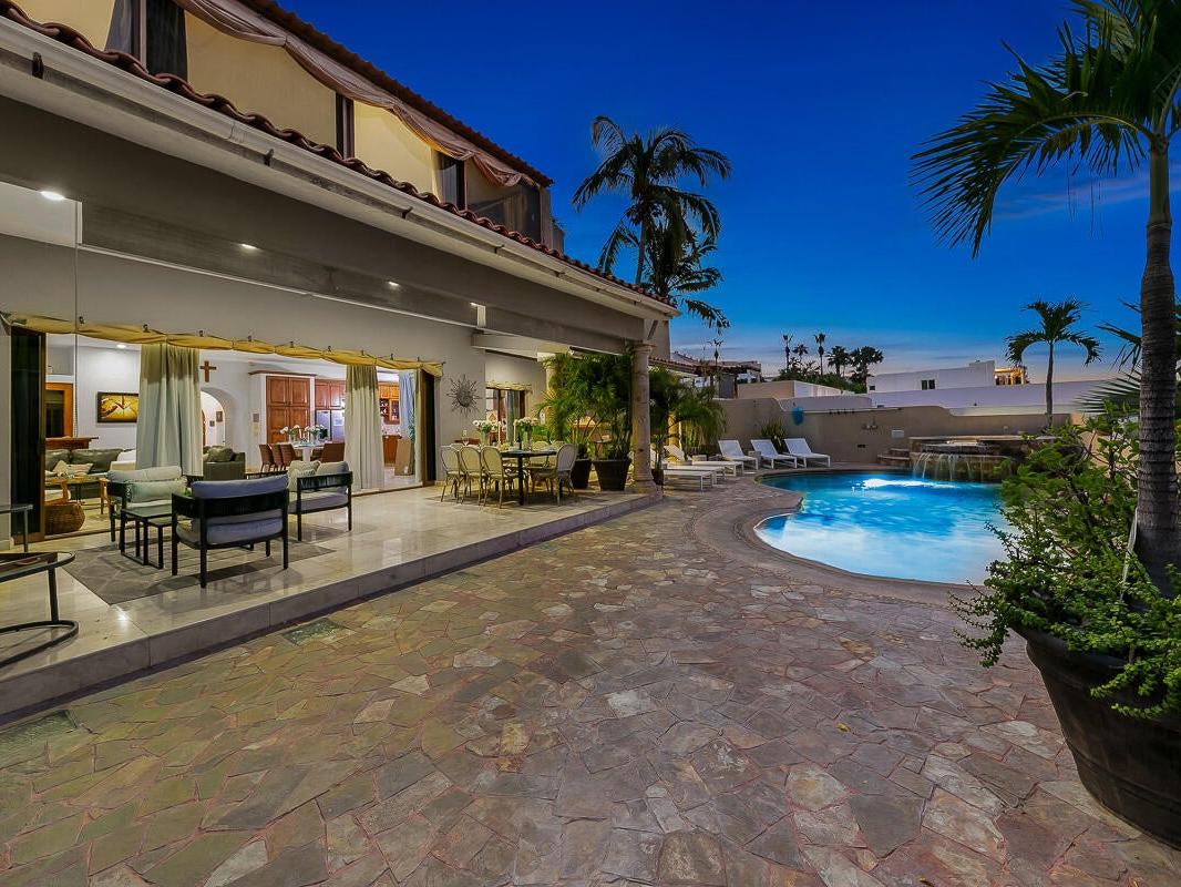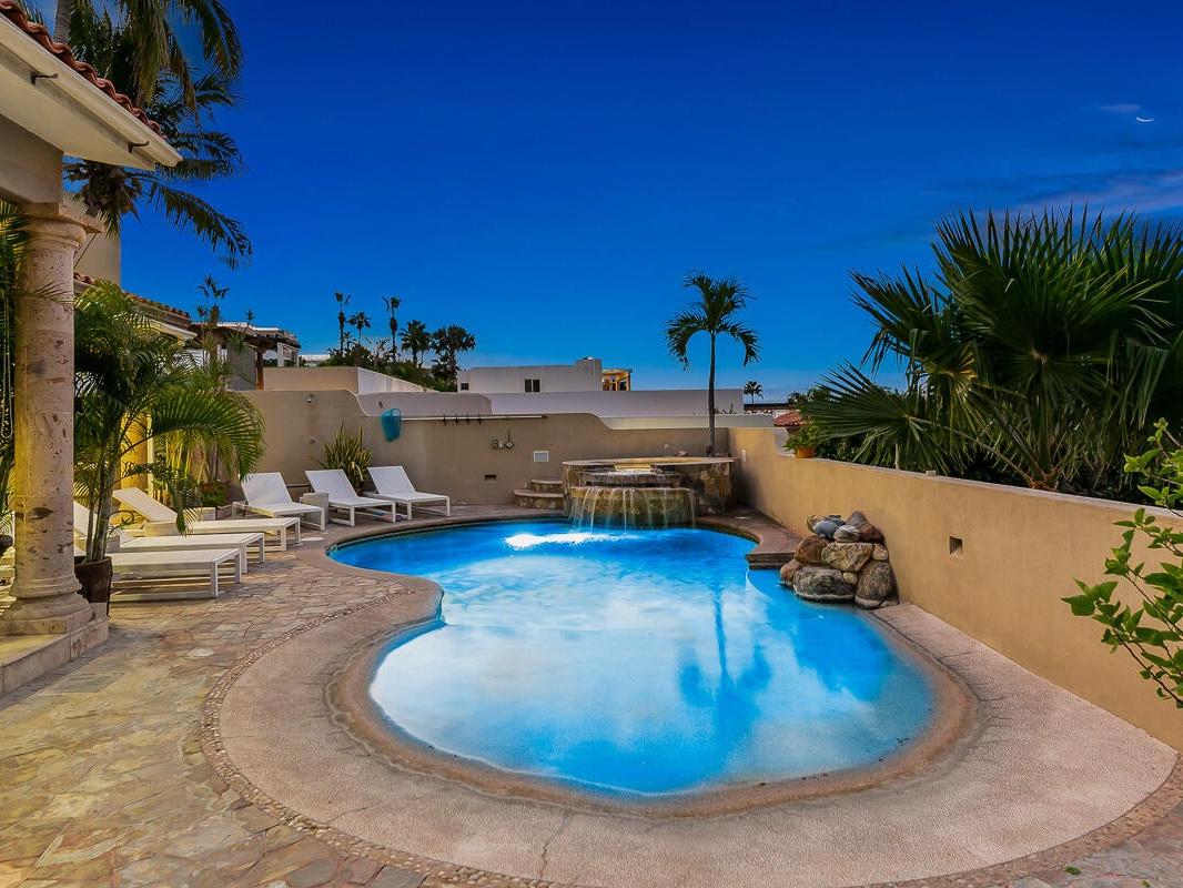 Welcome to Casa La Roca, a mini estate located in the secure, gated community of Cabo Bello, one of the few neighborhoods in Los Cabos with direct access to a swimmable beach. This spacious villa features open-concept living with abundant natural light and panoramic views of the Sea of Cortez and Land's End. Outdoor amenities include a private pool, hot tub, outdoor fireplace, bar with TV and sound system, built-in BBQ, and outdoor dining area. The rooftop deck offers stunning ocean and sunset views with lounge furnishings. Interior highlights include a large open floor plan, a private sunroom/office off the primary suite, and a dedicated office ideal for remote work. The home offers six bedrooms and is well suited for full-time living, vacation use, or rental income.