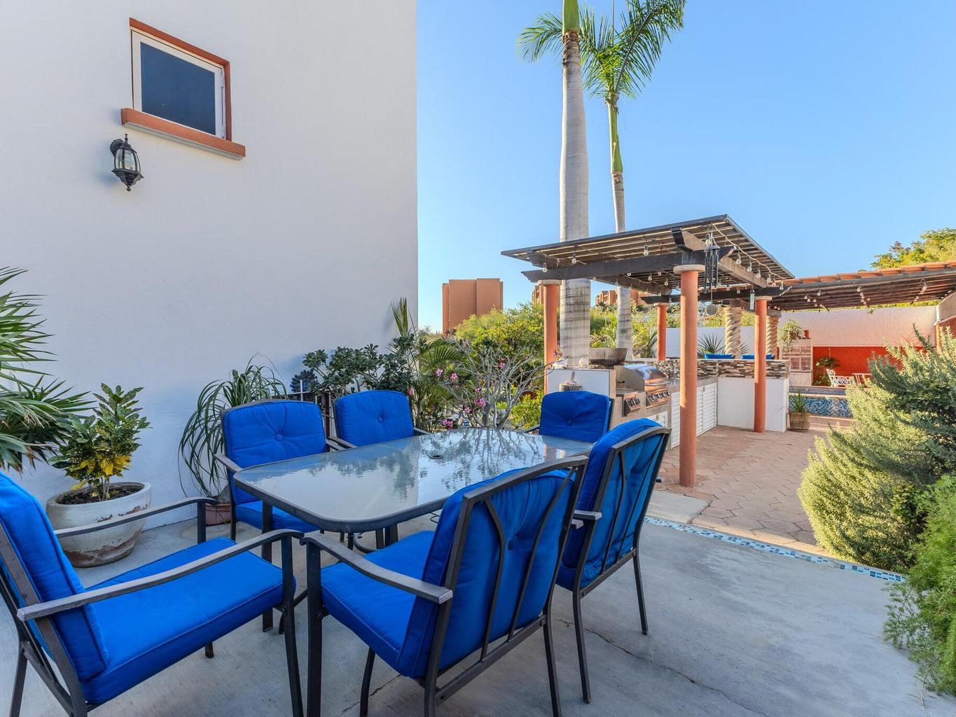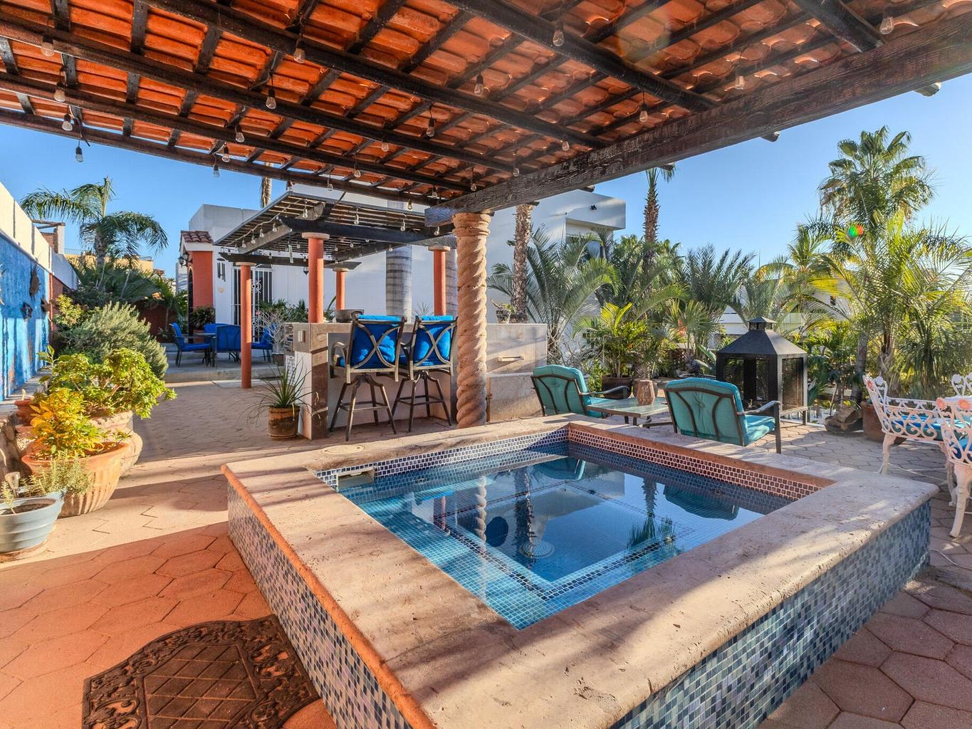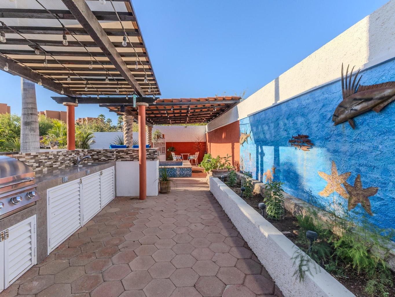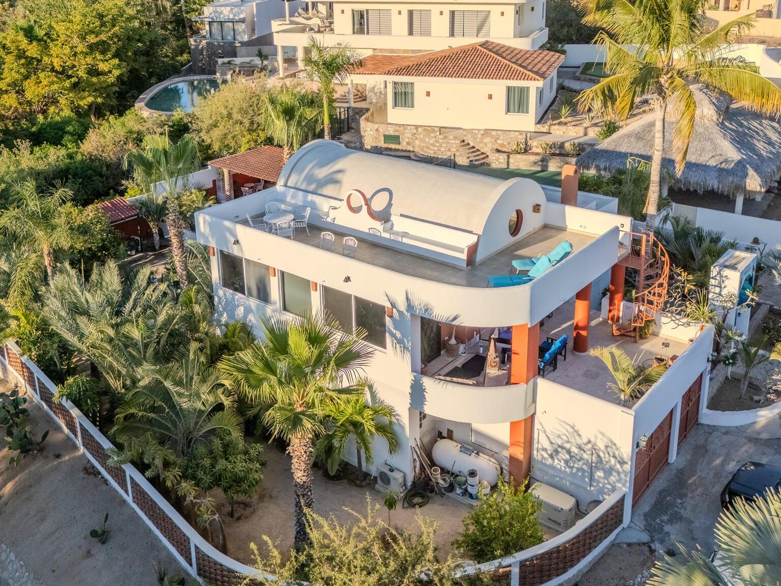 View View View, Arch view home from living room and 2 upper balconies. with mature palms. Large 2 master suites, 3 bath home with many upgrades. Granite counters, Jacuzzi, outdoor kitchen and plenty of outdoor living area. Beautiful brick bovida ceiling. Very large bedrooms, not a cookie cutter home by far. Nested on a corner lot with only one immediate neighbor. Sucure Iron, decorative doors. One of the most fantastic beaches in the area, right inside the delepment, just a short walk away.