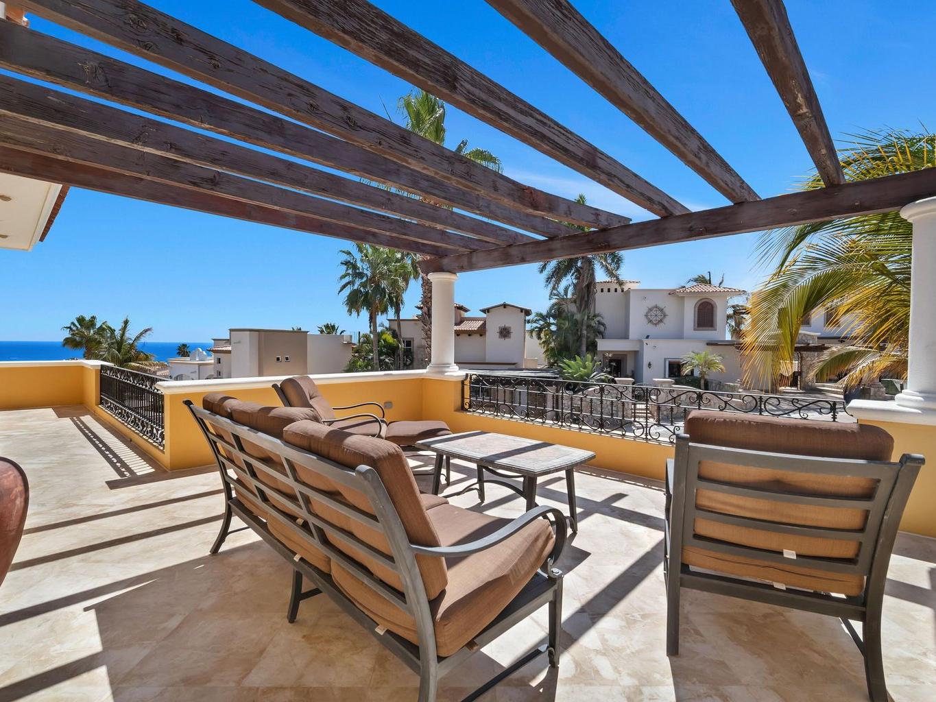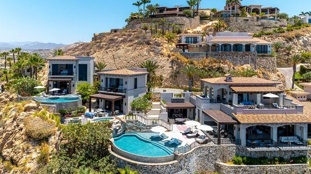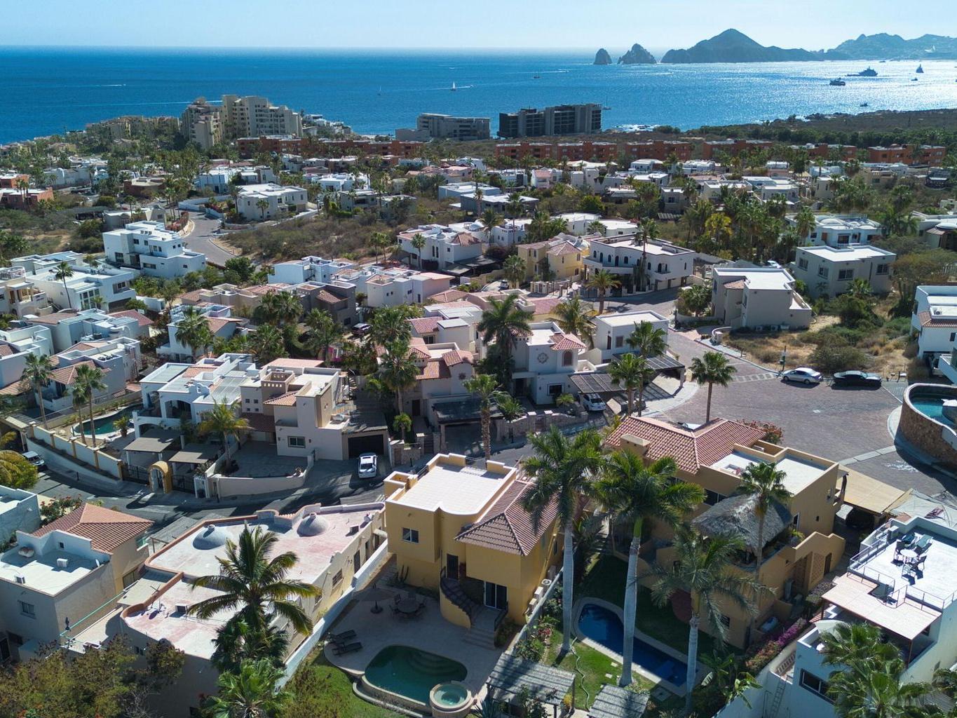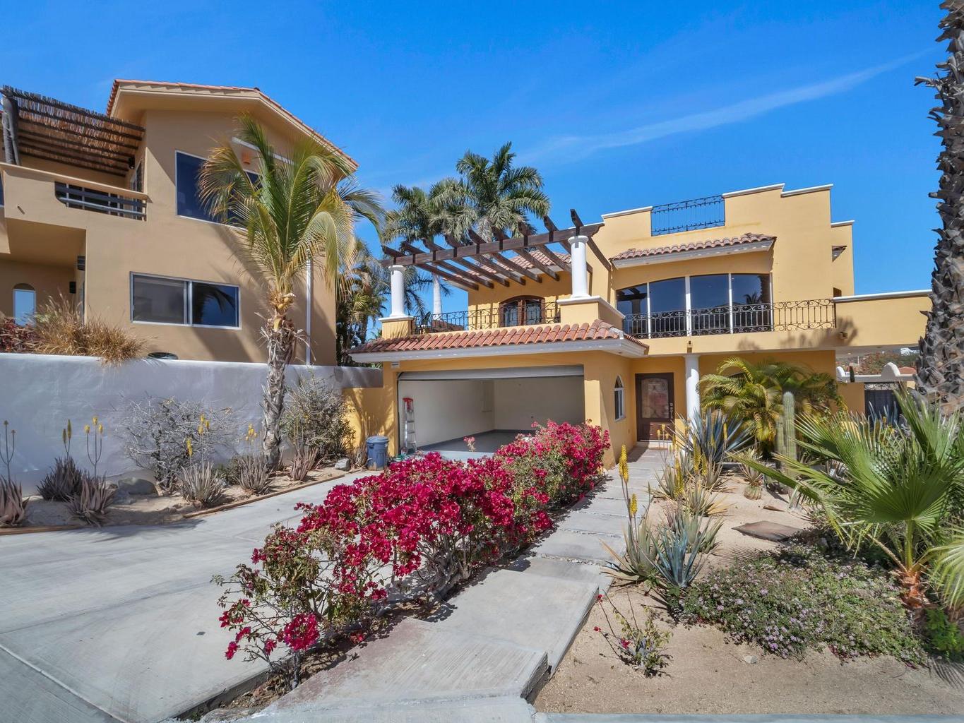 Vista del Mar is a 3-bedroom, 3.5-bathroom single-family home located in the gated community of Cabo Bello in Cabo San Lucas. The property offers panoramic views of the Sea of Cortez and convenient walking access to a swimmable and snorkeling beach within the community.