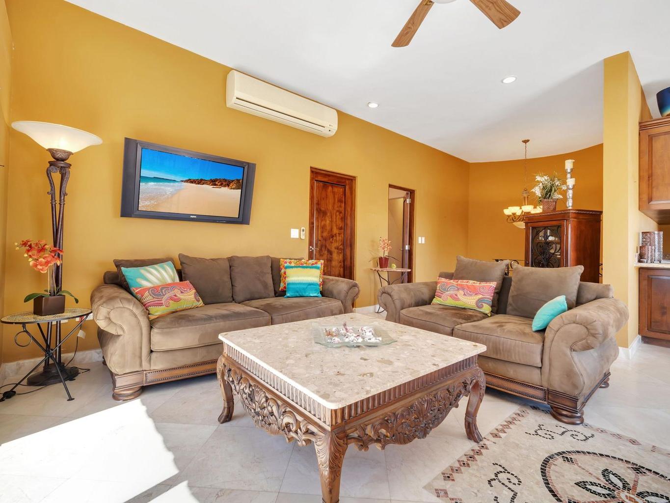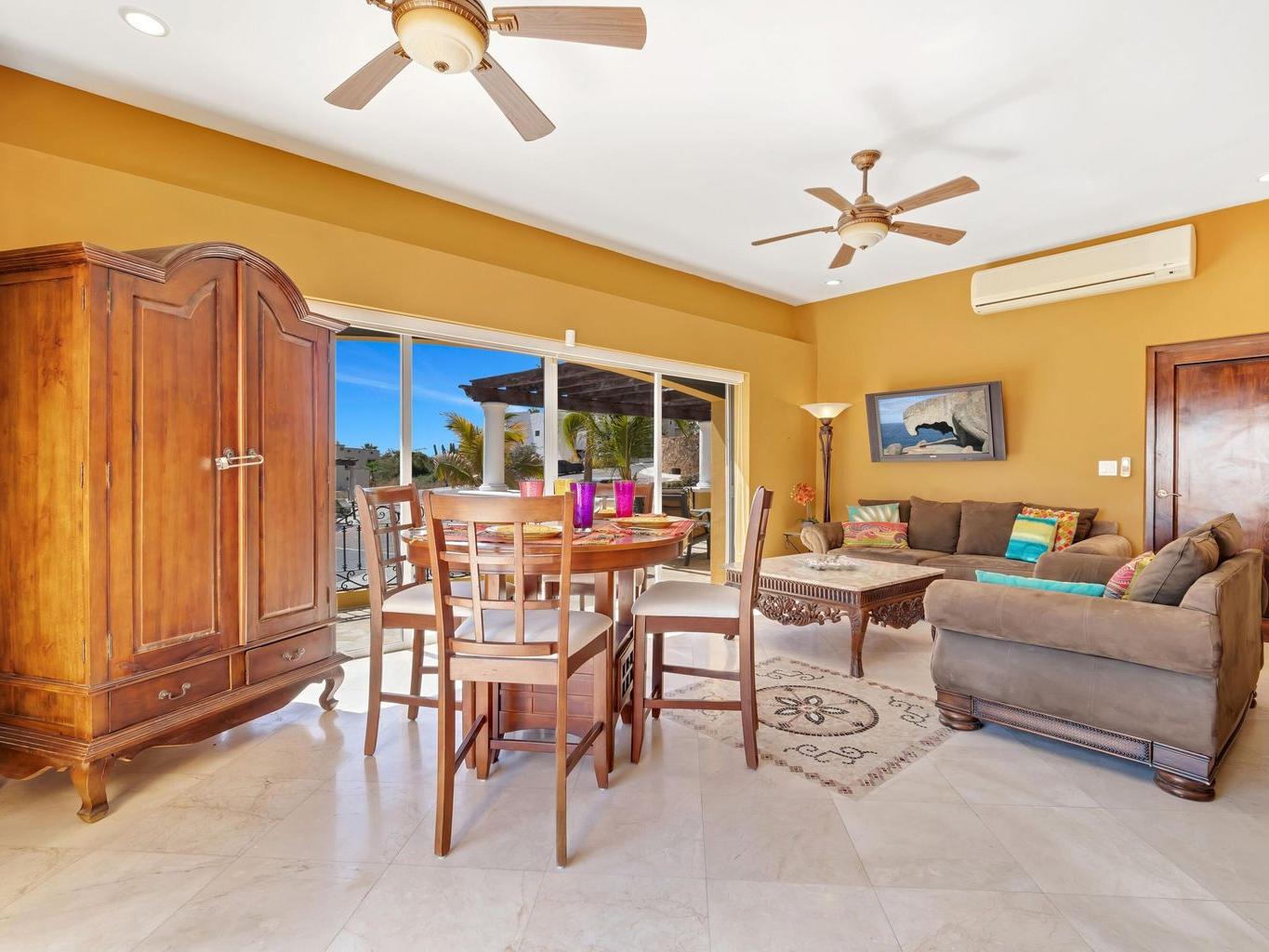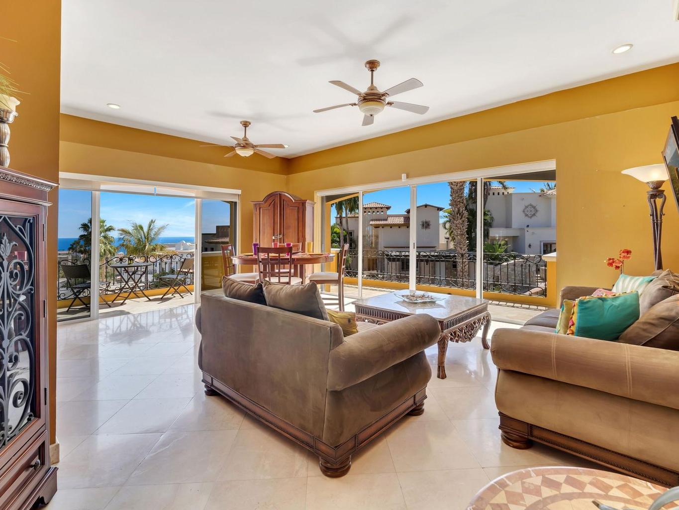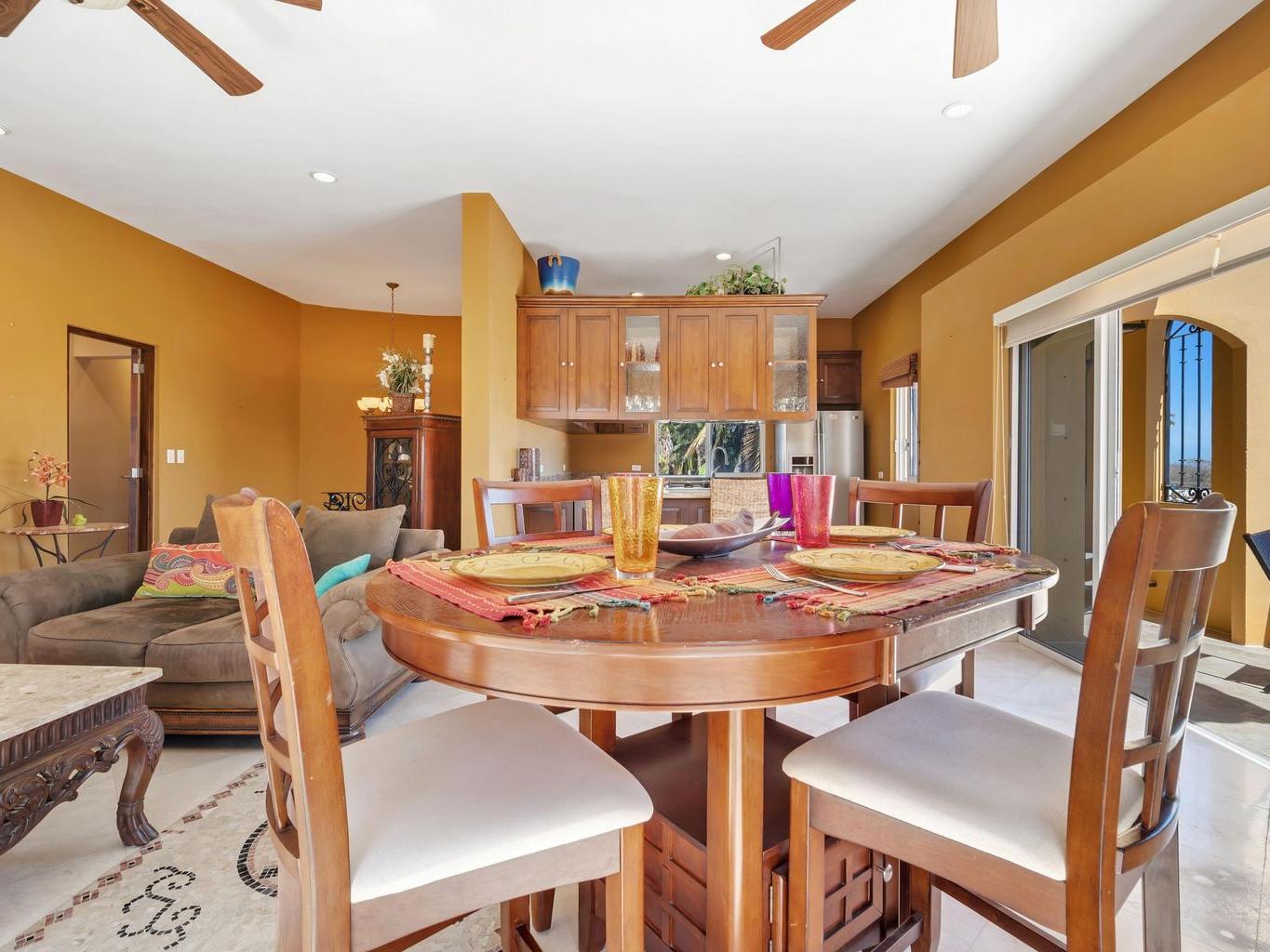 Vista del Mar is a 3-bedroom, 3.5-bathroom single-family home located in the gated community of Cabo Bello in Cabo San Lucas. The property offers panoramic views of the Sea of Cortez and convenient walking access to a swimmable and snorkeling beach within the community.