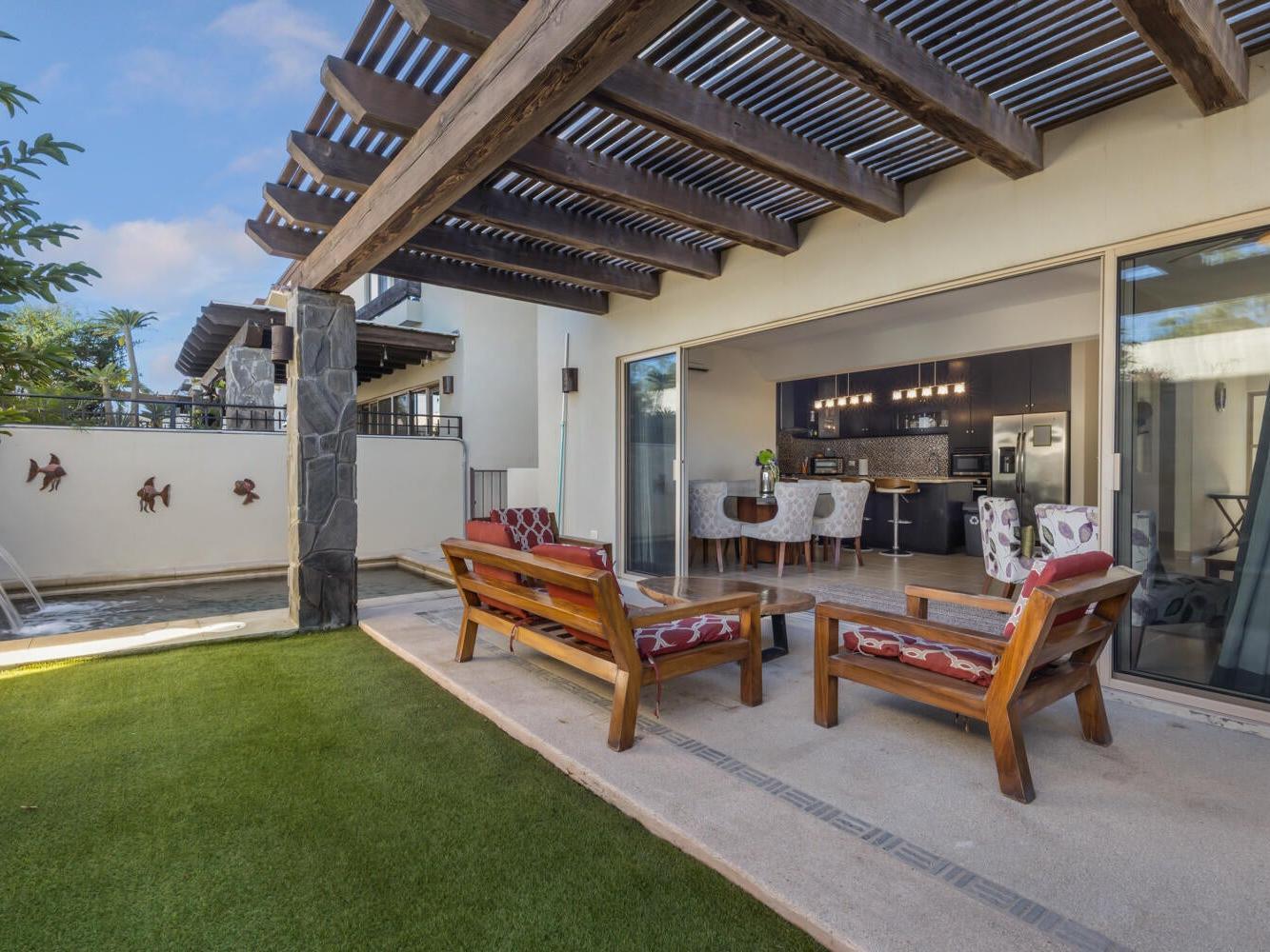 Spacious and well-maintained two-story home featuring 3 bedrooms, 2.5 bathrooms, and one of the largest floor plans in the Cabo del Mar development. This property offers rare amenities including a private pool, garden terrace, and built-in BBQ area. The home enjoys ocean views from the main entrance and the master bedroom balcony.