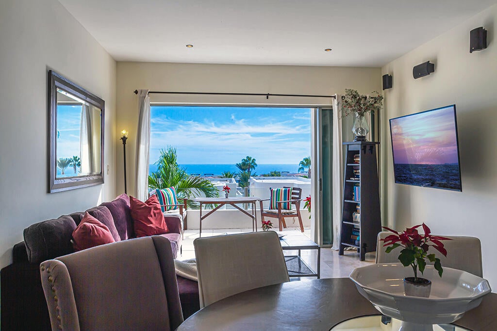 Incredible blue water and the iconic Arch and Land's views can be enjoyed from this spacious and comfortable home. A large yard is ideal for families and for pets. Each of the 4 large bedrooms has a full bathroom, 2 located on the first floor and 2 bedrooms upstairs. A small enclave of just 18 homes, is quiet and private and close to schools, shopping, restaurants, golf, and downtown Cabo. The home was designed for comfort and ideal for families with ample space, room for storage and the location is close to everything! Upgrades include a backup Generac generator, Water filtration system, 2 car garage, and the interior is recently painted. From bed in the primary suite you can enjoy morning views of the ocean, and then just a few steps out to the private terrace to 180 degree Ocean views!