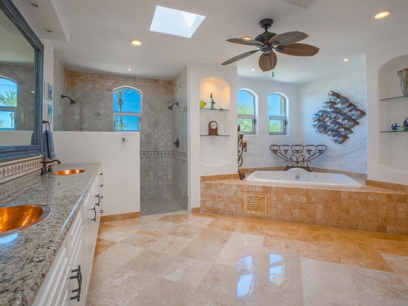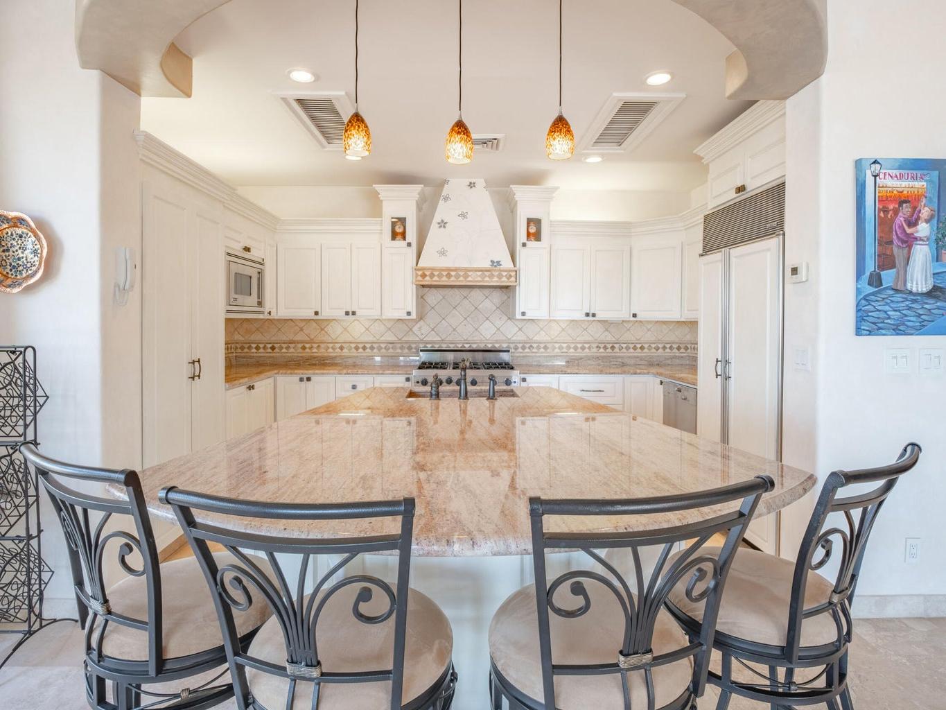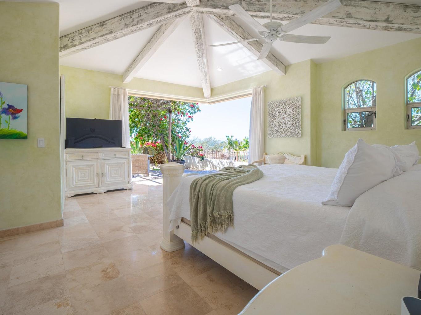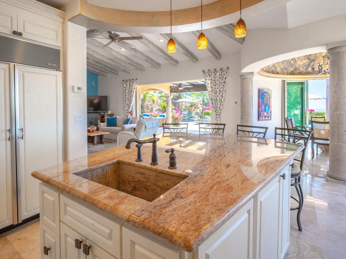 Perched on an elevated lot within the exclusive Cresta del Mar community, this single-level sanctuary captures the soul of Los Cabos. Ocean views stretch to the horizon, framing a home where artistry meets effortless living. The hacienda style walls, hand finished by local master Victor Hugo Nafarrate, tell a story of texture and warmth. Each room feels like its own canvas of aged elegance. A chef's kitchen anchors the space, while outdoor living unfolds around a sculptural pool with curved cantera stone shaped by hand. A private casita offers a peaceful retreat for guests, and the location is just moments from premier shops and the Corridor. This is more than a residence. It is a curated retreat for the discerning.