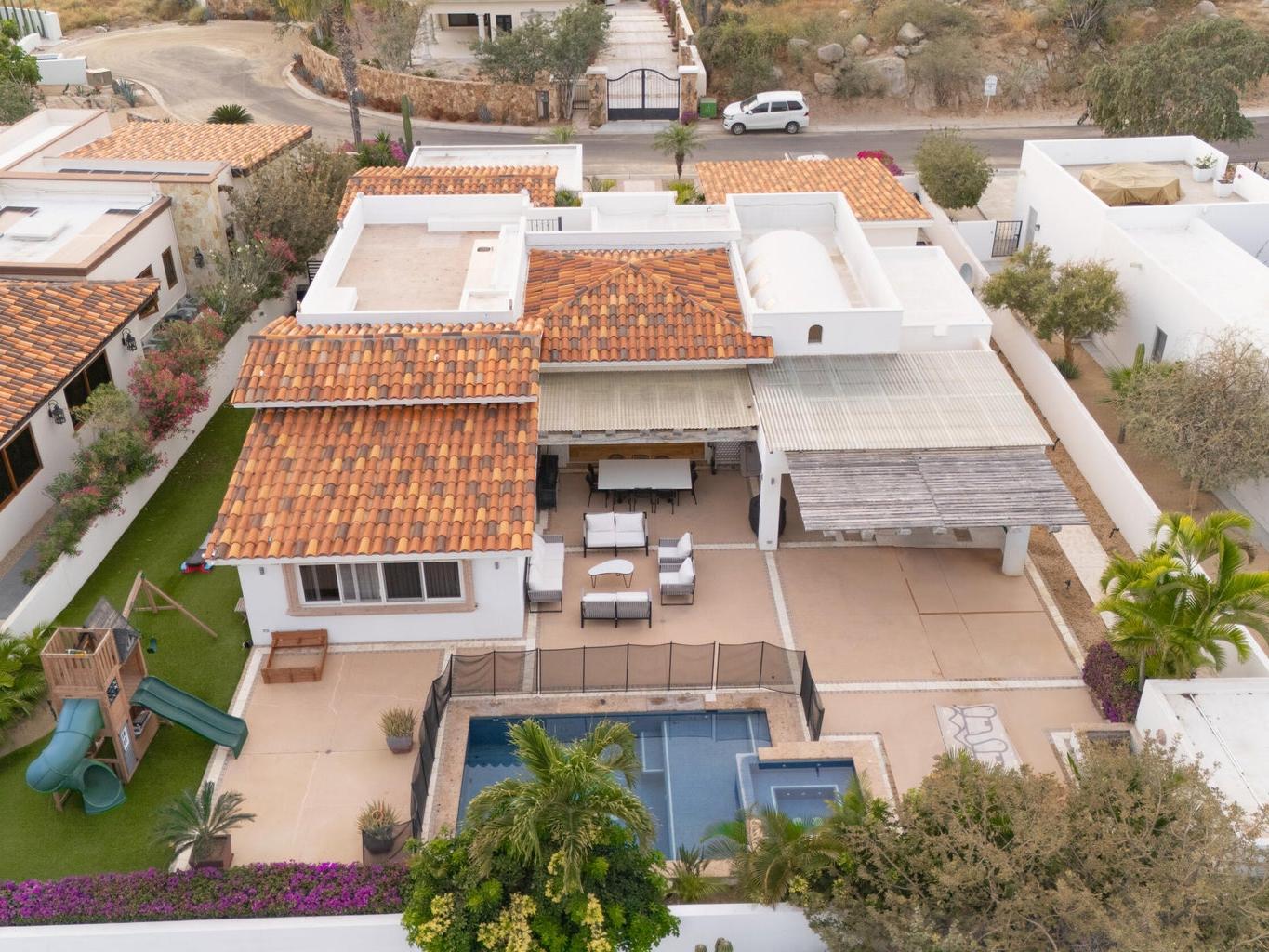 Mediterranean-style Home with a poolside bar and generously proportioned patio with its water features, putting green, pool and spa create a playful inviting atmosphere where friends and family will want to gather. Sunset cocktails atop the rooftop deck with its arch views will surely impress. Located in gated and guarded Cresta del Mar just minutes from downtown Cabo San Lucas and the luxuriant sandy beaches that make Baja the best place in the world to live.