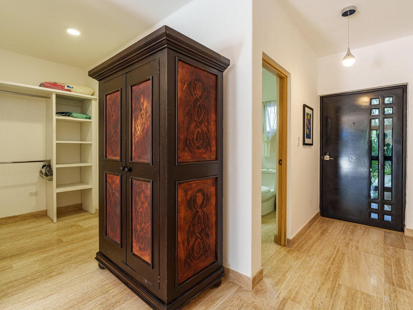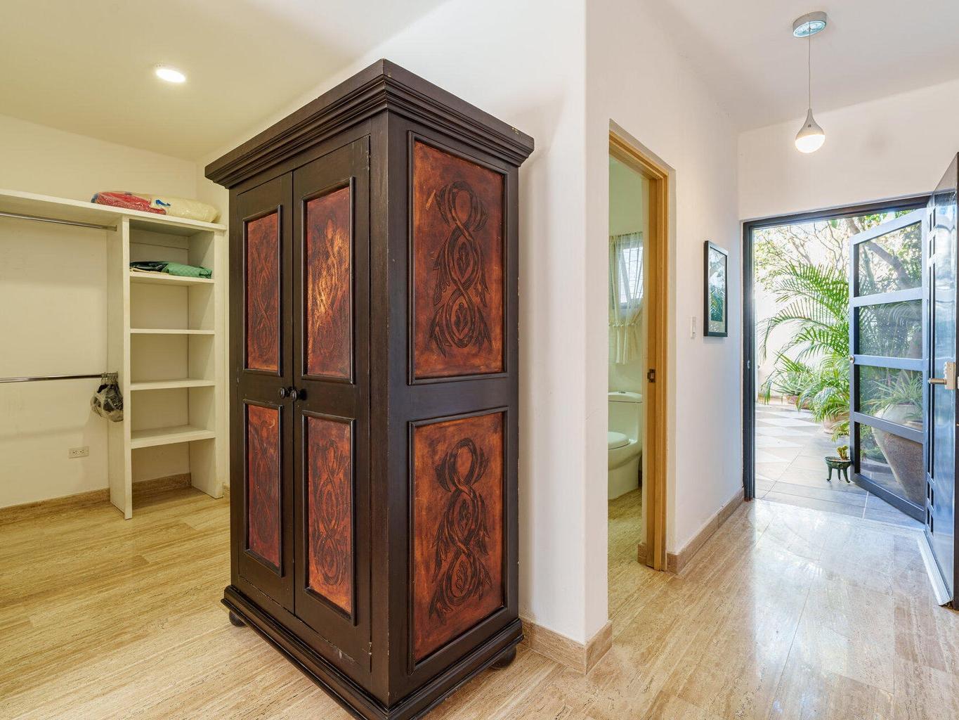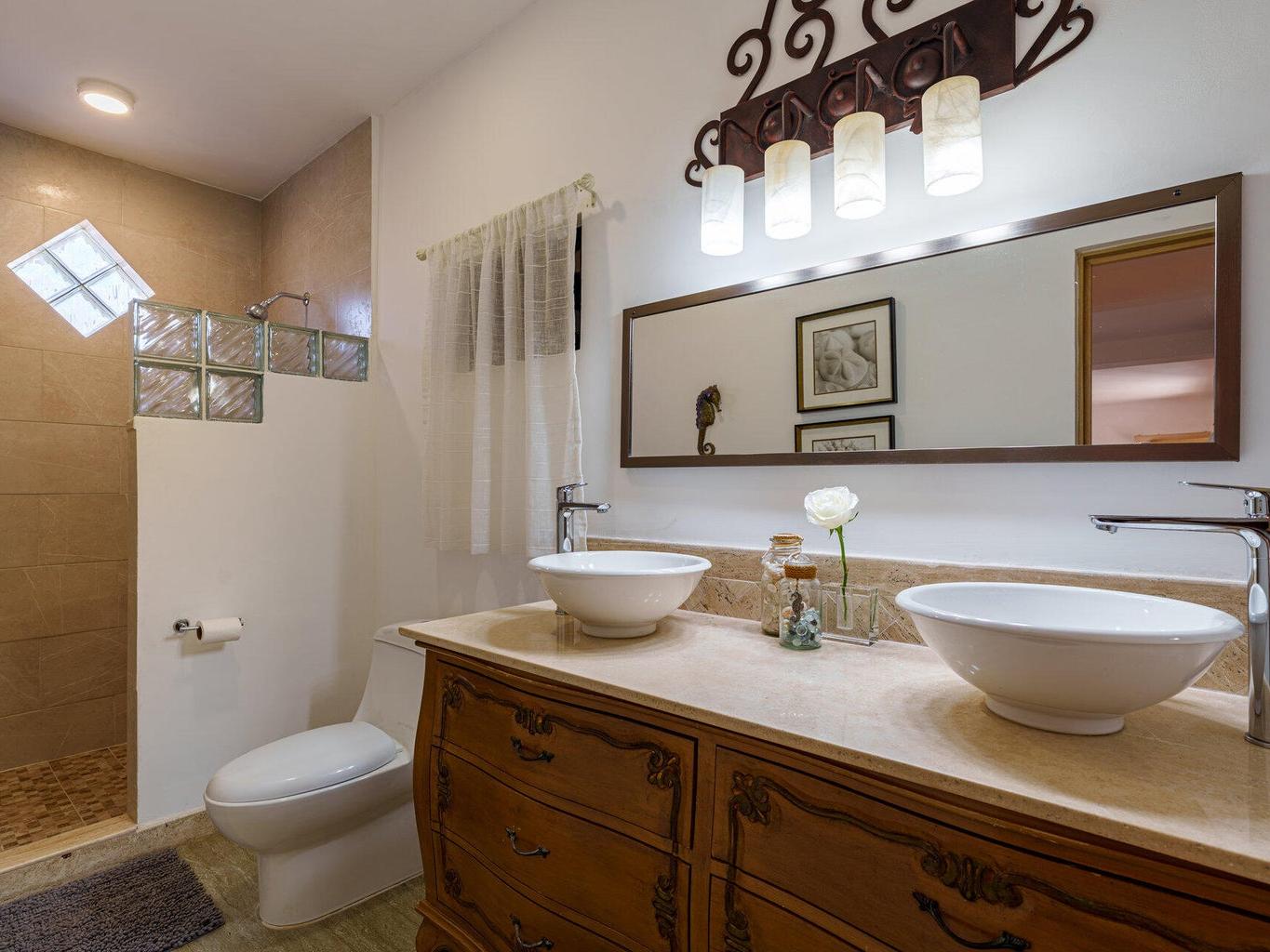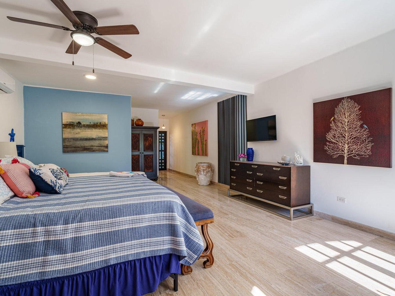 A grand entrance courtyard welcomes you into a refined interior featuring extra-tall ceilings, oversized room proportions, and travertine marble flooring throughout. The home offers three full-size bedrooms, each accommodating king-size beds and featuring private ensuite bathrooms with custom one-of-a-kind vanities.