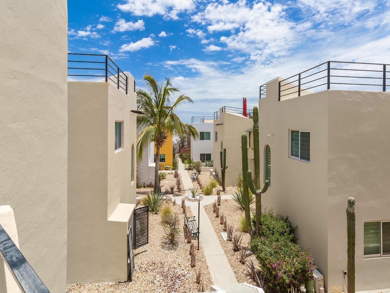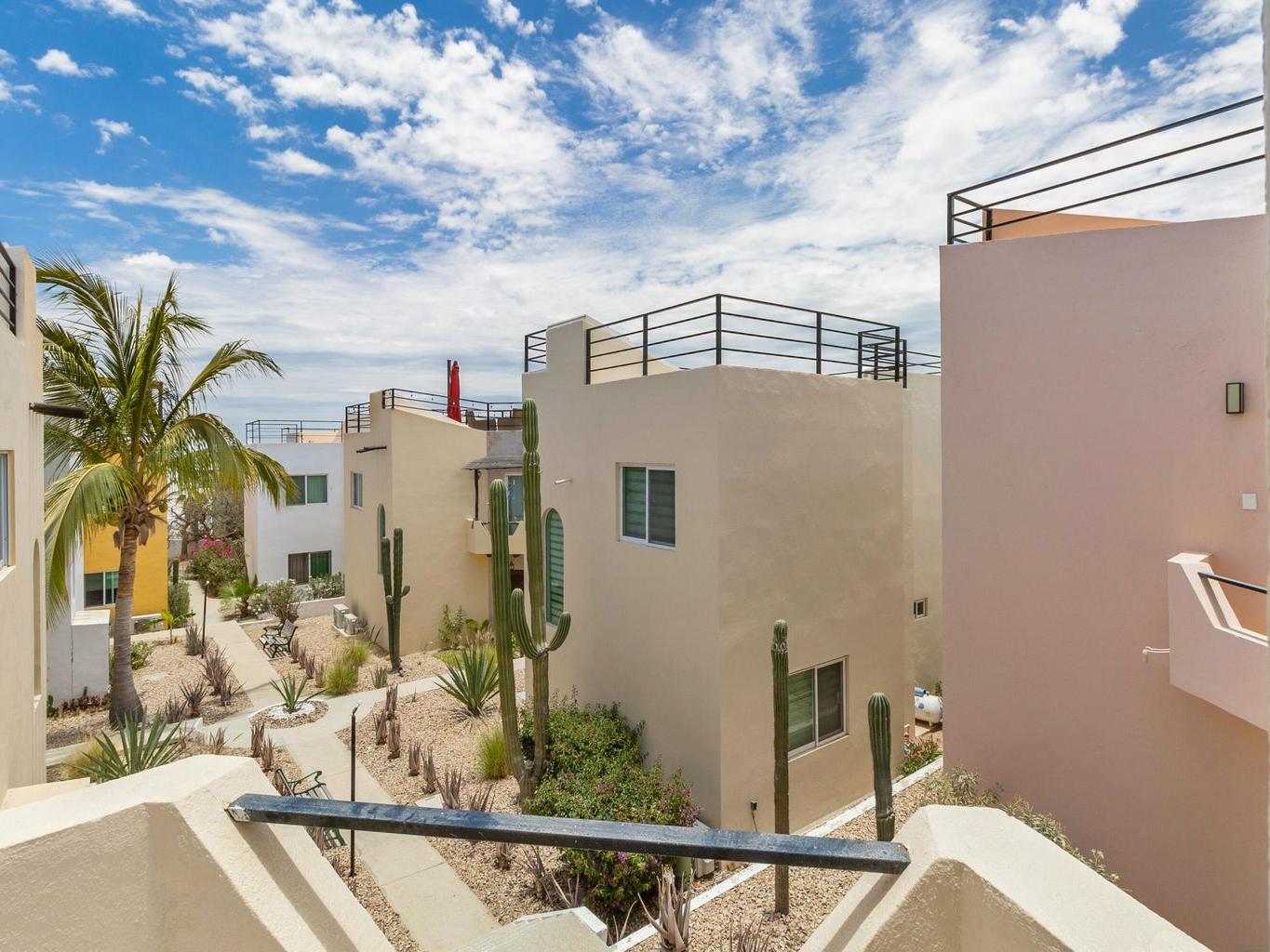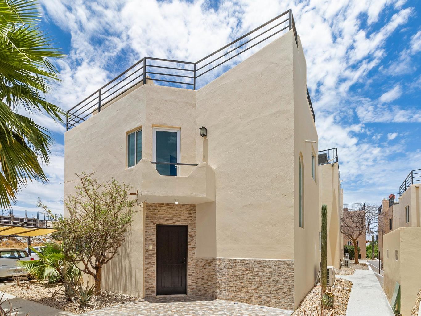 Incluye un rooftop privado con vista directa a la bahía de Cabo San Lucas, ideal para disfrutar atardeceres, reuniones y el clima de Los Cabos.