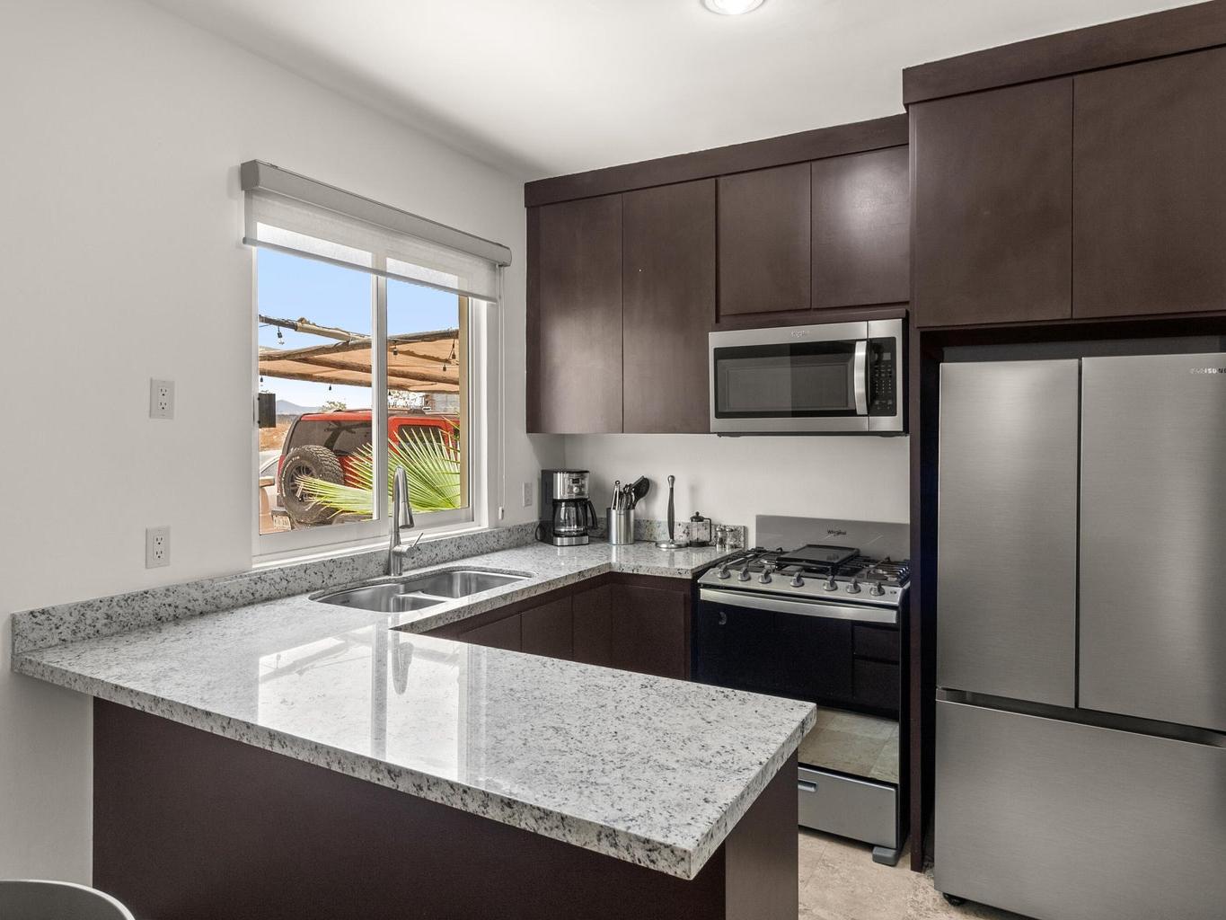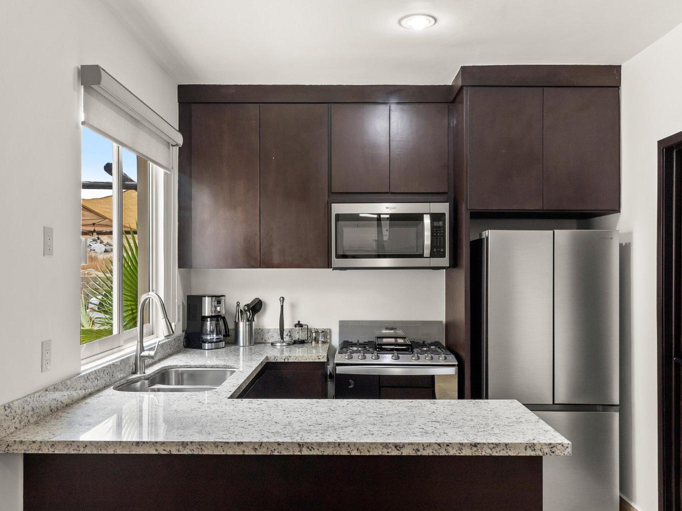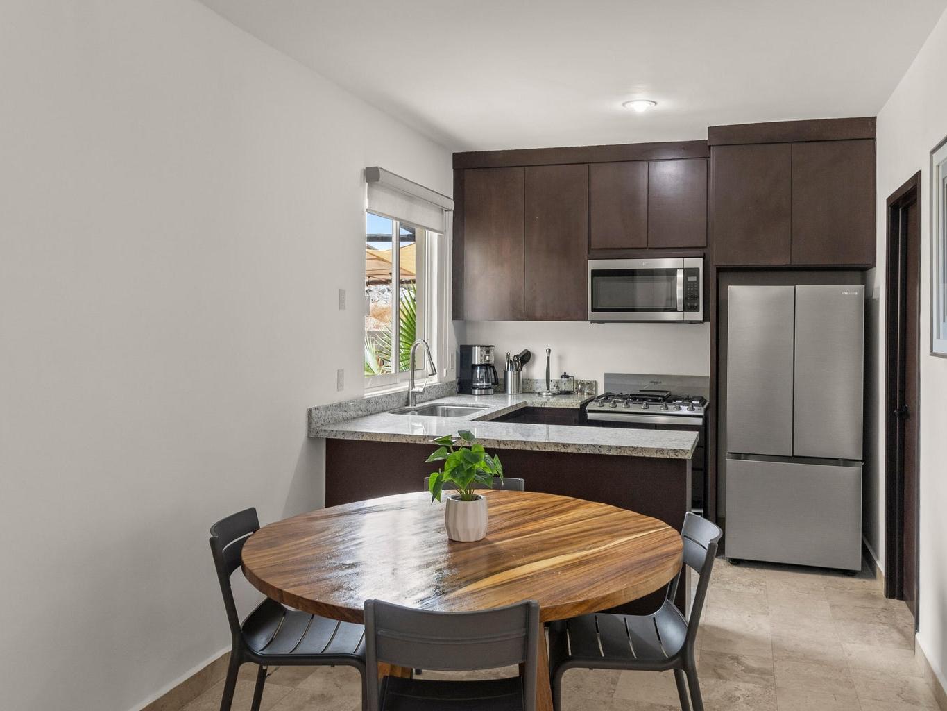 Incluye un rooftop privado con vista directa a la bahía de Cabo San Lucas, ideal para disfrutar atardeceres, reuniones y el clima de Los Cabos.