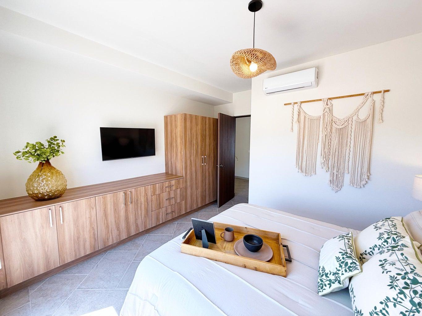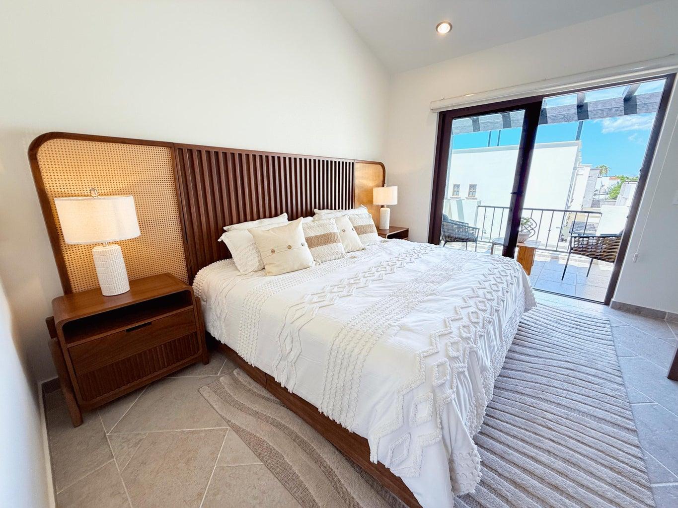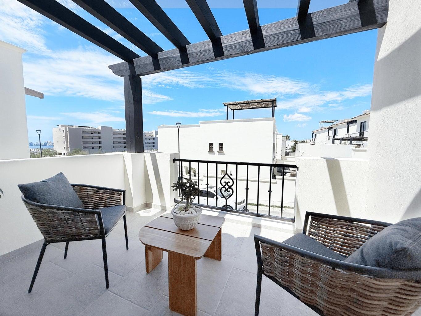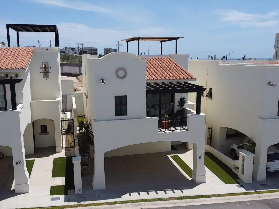 Exclusive community in El Tezal, just minutes from the beach, the Cabo Marina, and Cosco. Phase II offers only 39 homes and a clubhouse with pool, jacuzzi, gym, and social areas. The San Bernardino model features 2 levels plus a rooftop deck: open living/dining, quartz kitchen with appliances, half bath, and spacious patio. Upstairs: 3 bedrooms, 2 baths, laundry. The primary suite includes a front terrace overlooking the community. Rooftop deck is ideal for sunsets and gatherings. Covered parking for 2, high-end finishes, closets, marble vanities, and AC mini splits included. Select homes ready for immediate delivery.