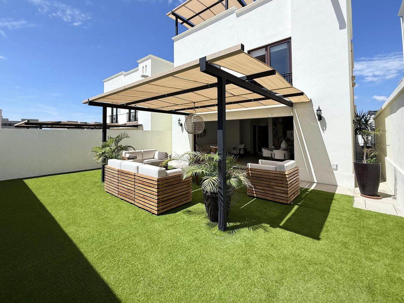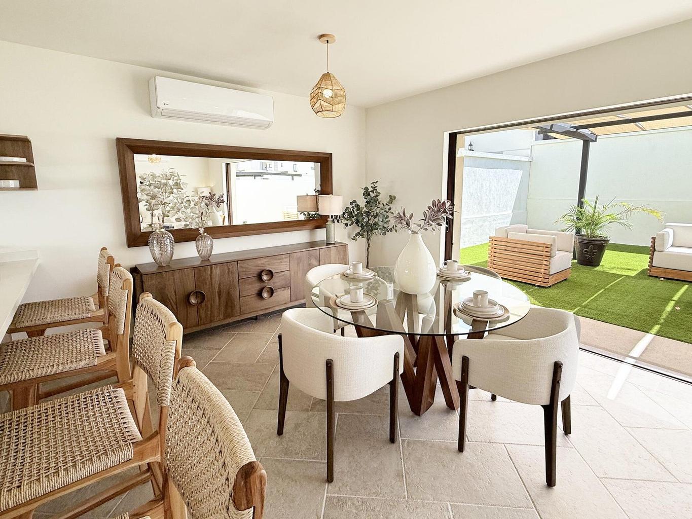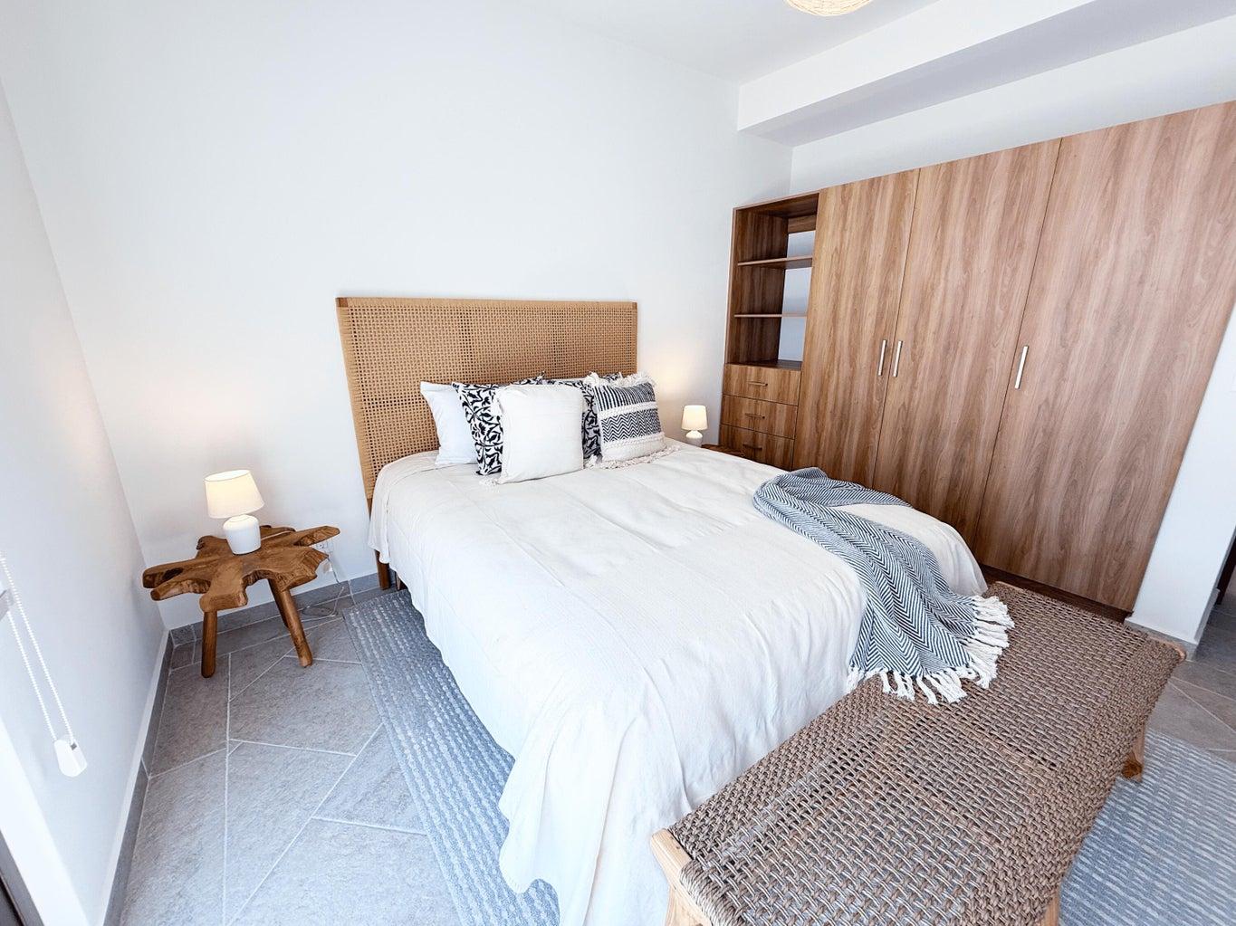 Exclusive community in El Tezal, just minutes from the beach, the Cabo Marina, and Cosco. Phase II offers only 39 homes and a clubhouse with pool, jacuzzi, gym, and social areas. The San Bernardino model features 2 levels plus a rooftop deck: open living/dining, quartz kitchen with appliances, half bath, and spacious patio. Upstairs: 3 bedrooms, 2 baths, laundry. The primary suite includes a front terrace overlooking the community. Rooftop deck is ideal for sunsets and gatherings. Covered parking for 2, high-end finishes, closets, marble vanities, and AC mini splits included. Select homes ready for immediate delivery.